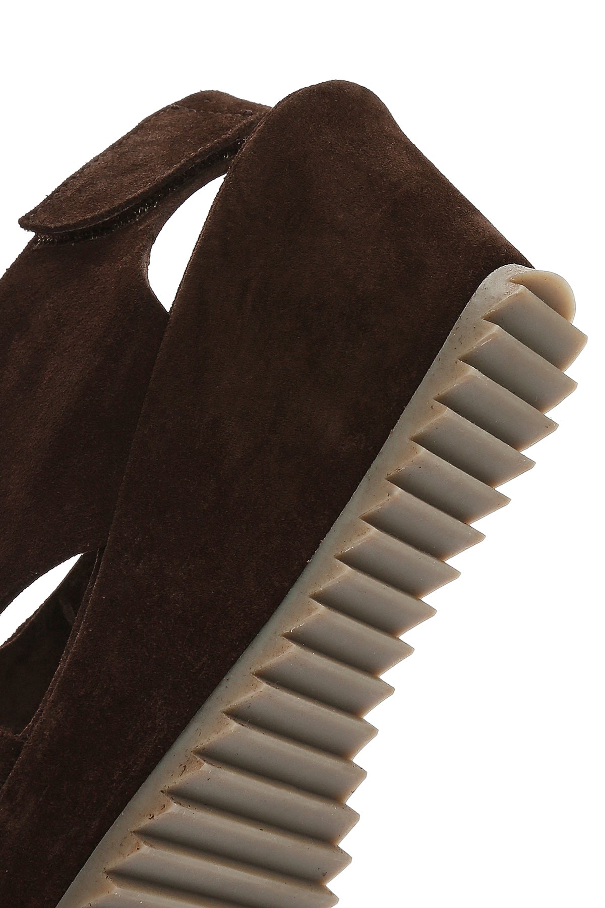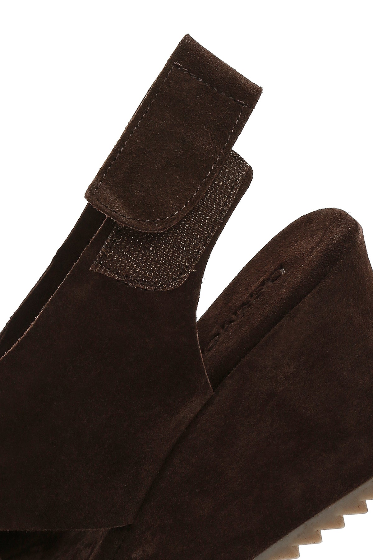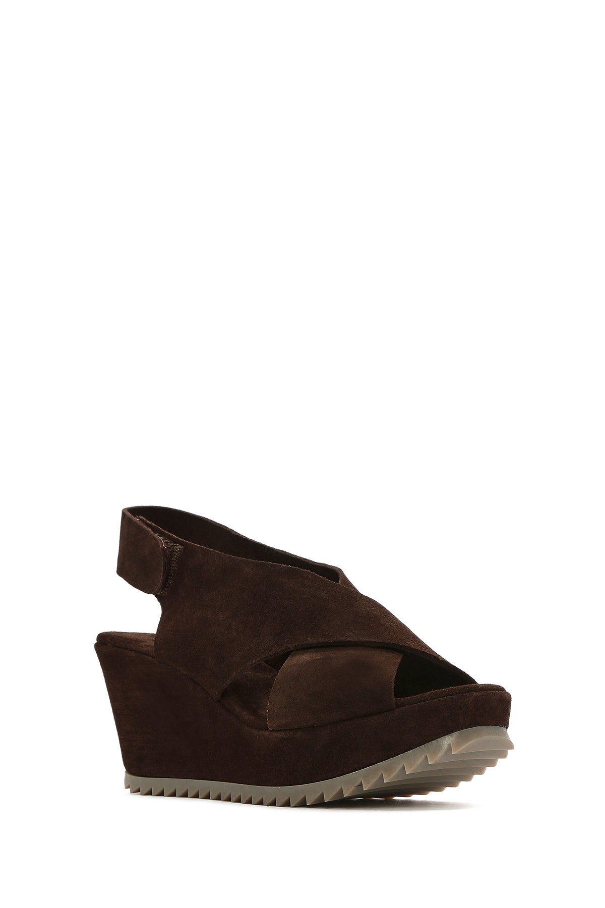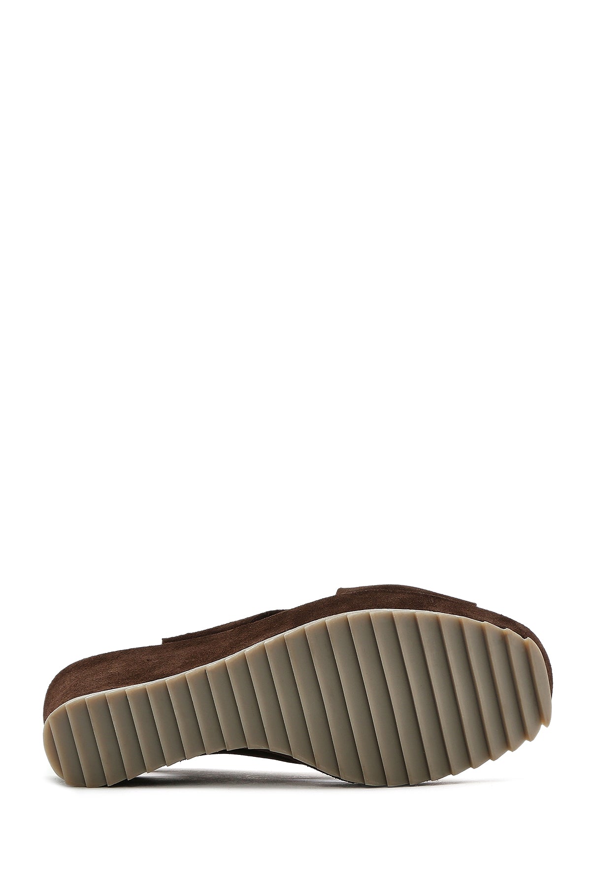 Kadın Kahverengi Arkadan Bantlı Dolgu Topuklu Süet Deri Sandalet