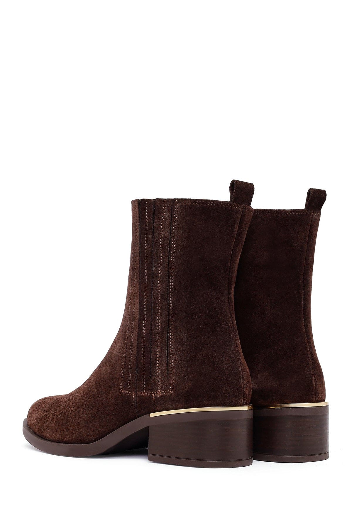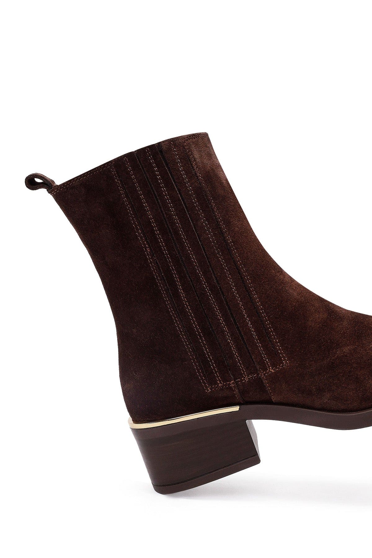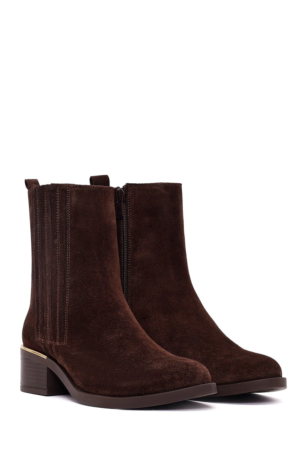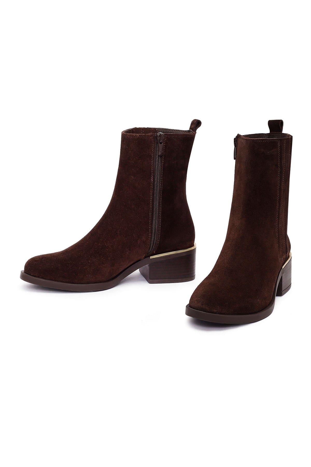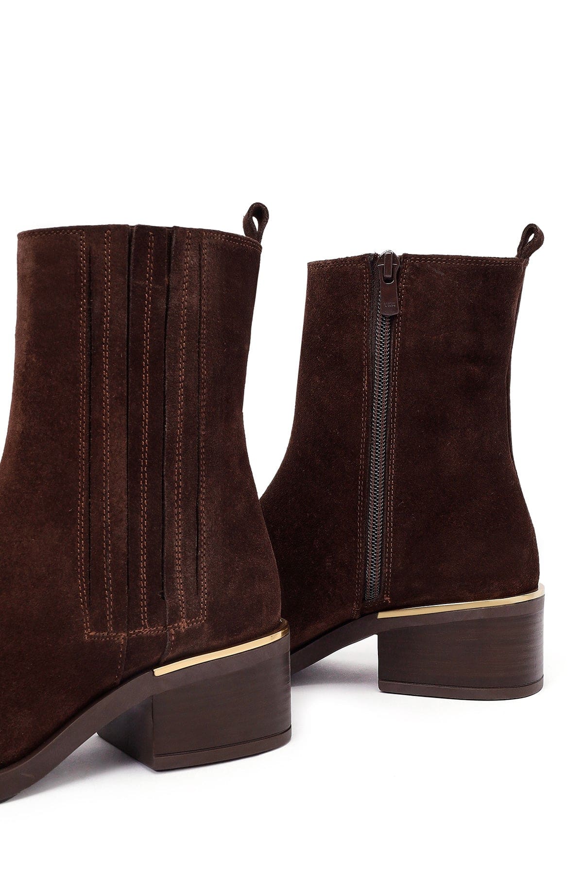 Kadın Kahverengi Fermuarlı Kısa Kalın Topuklu Süet Deri Bot