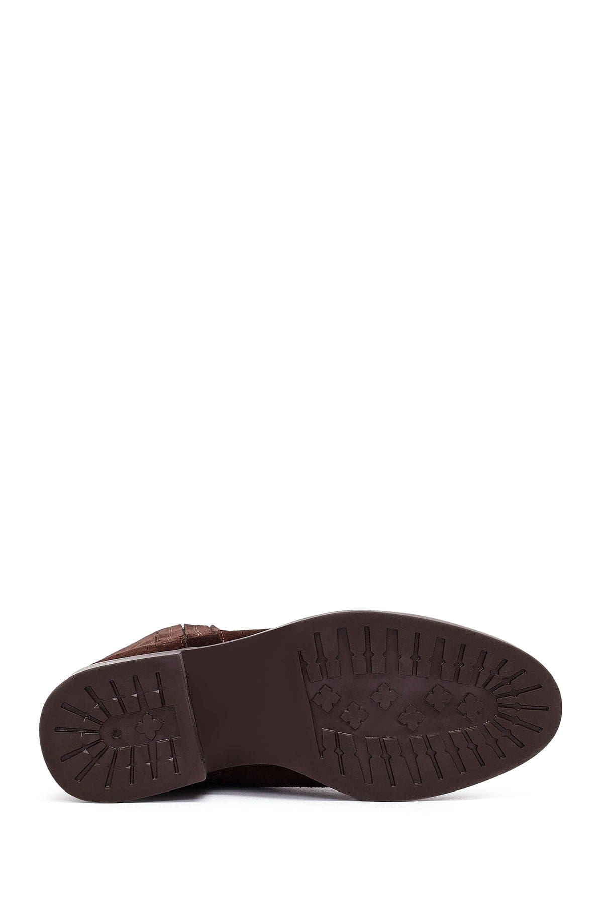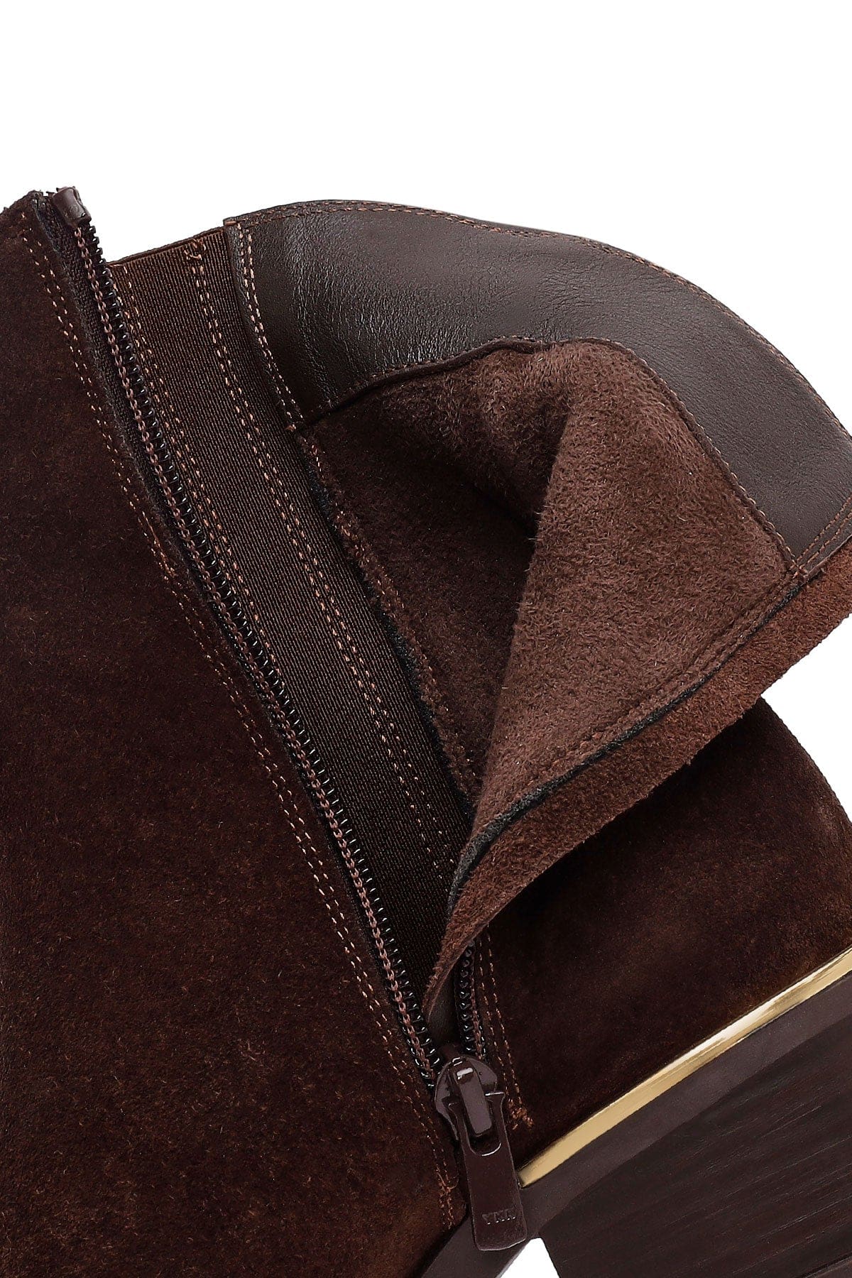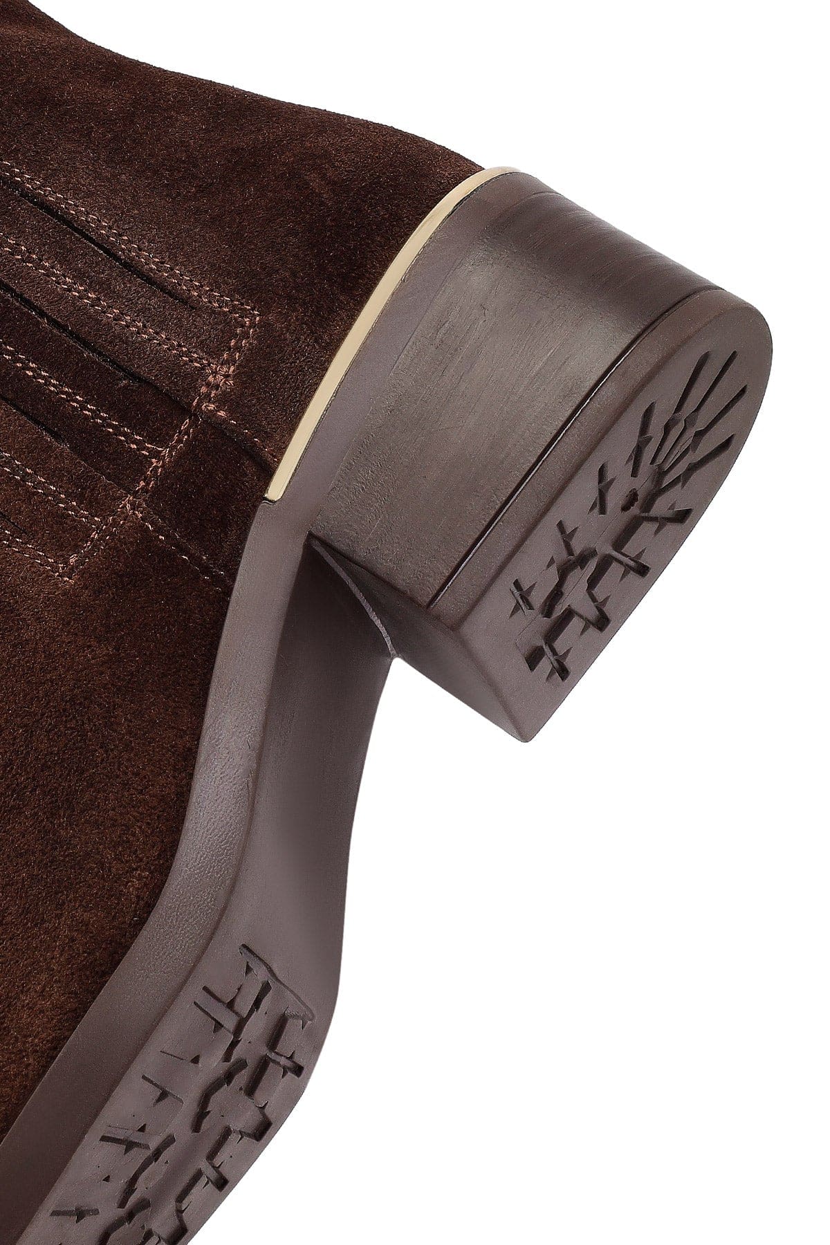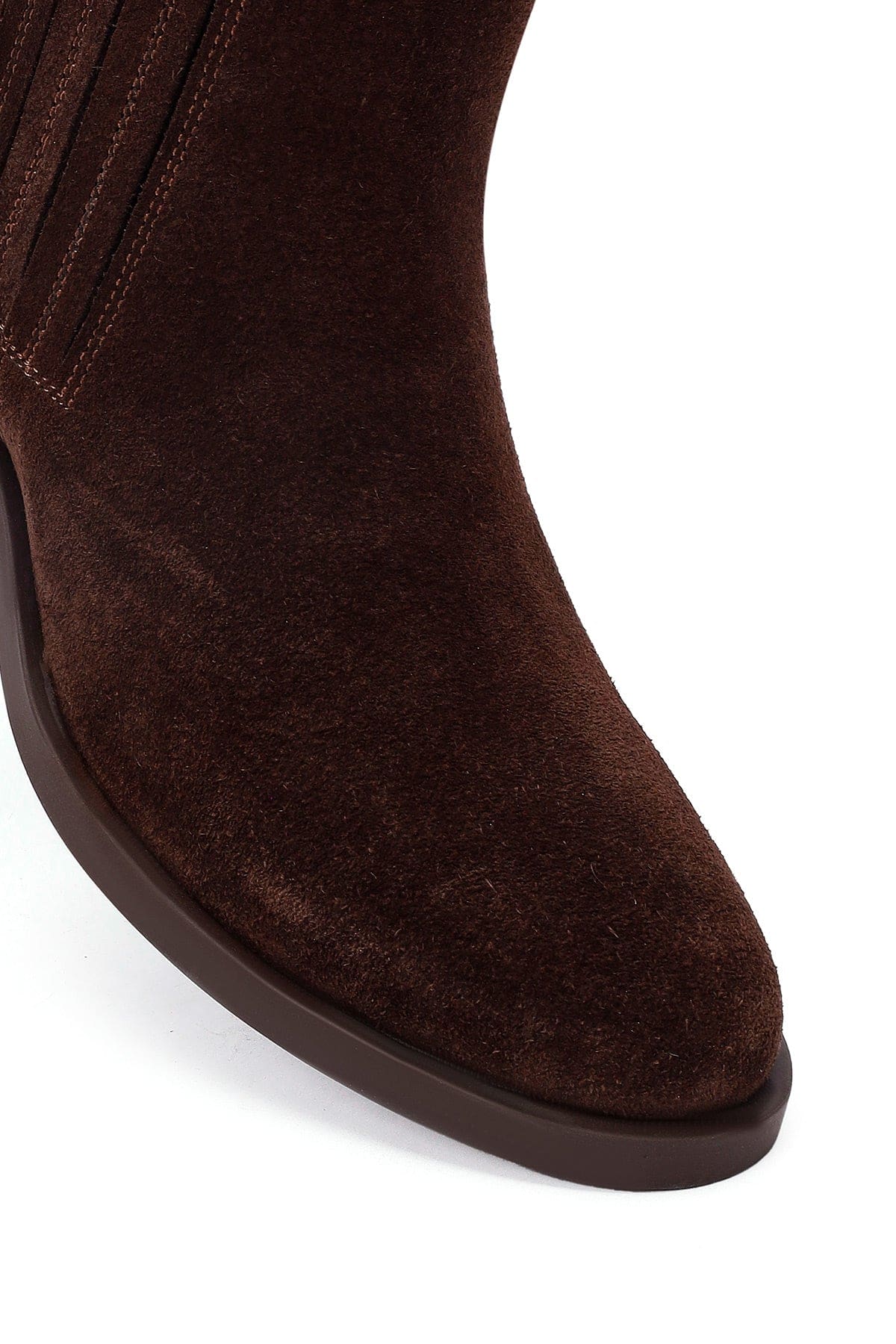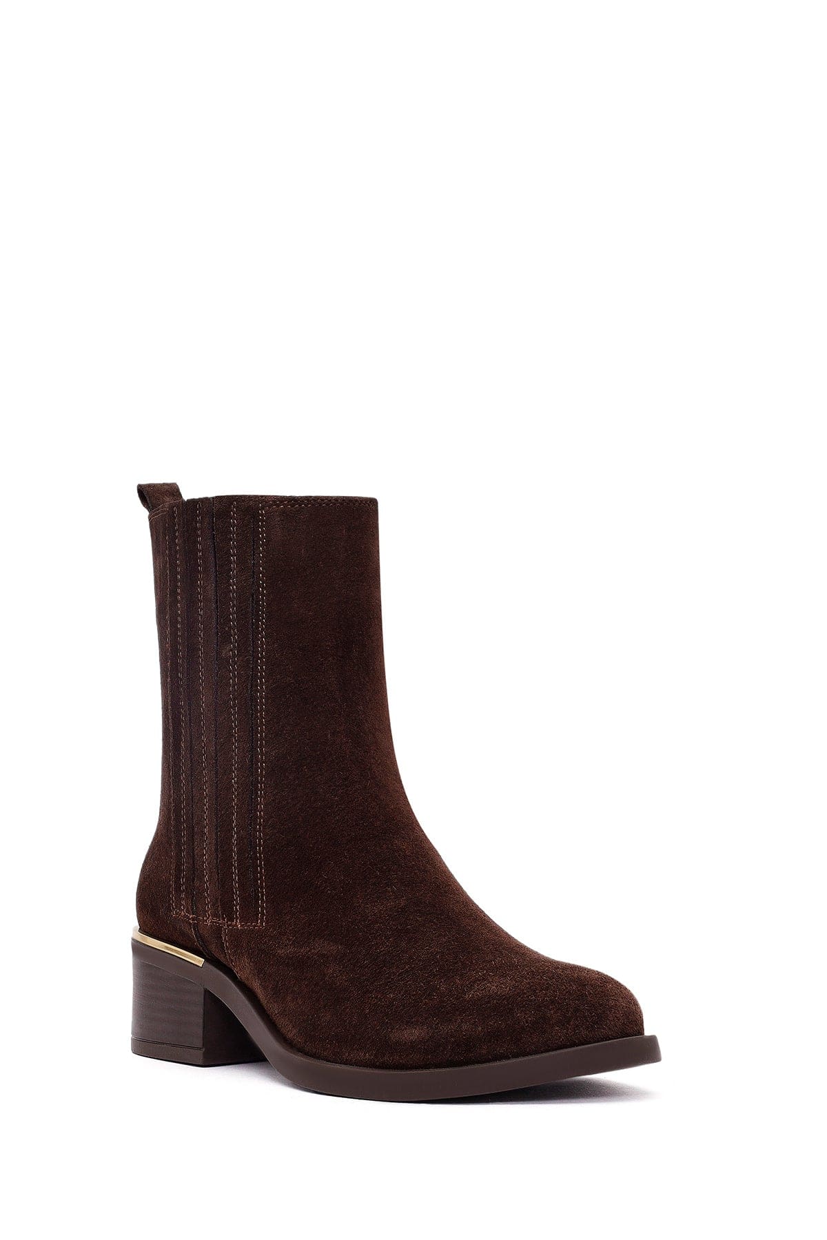 Kadın Kahverengi Fermuarlı Kısa Kalın Topuklu Süet Deri Bot