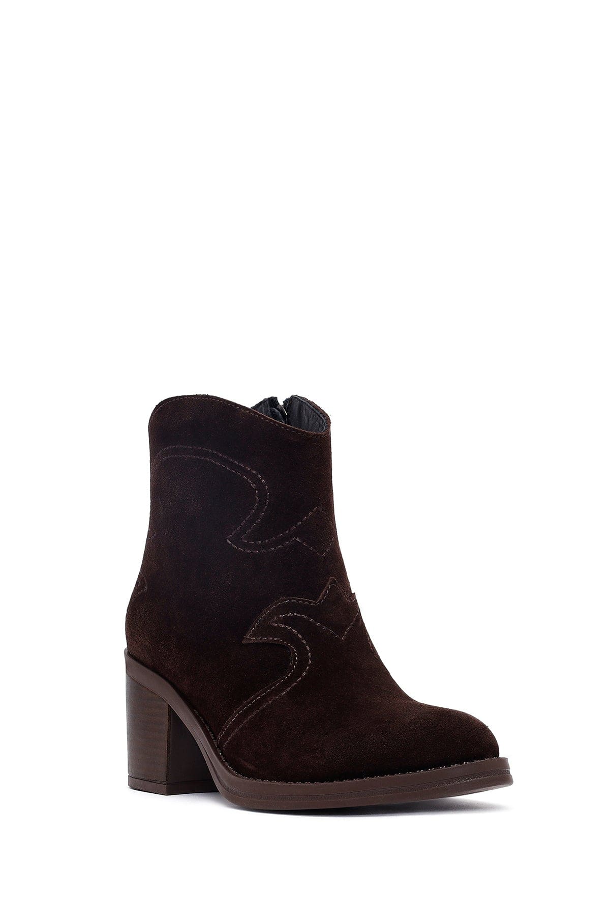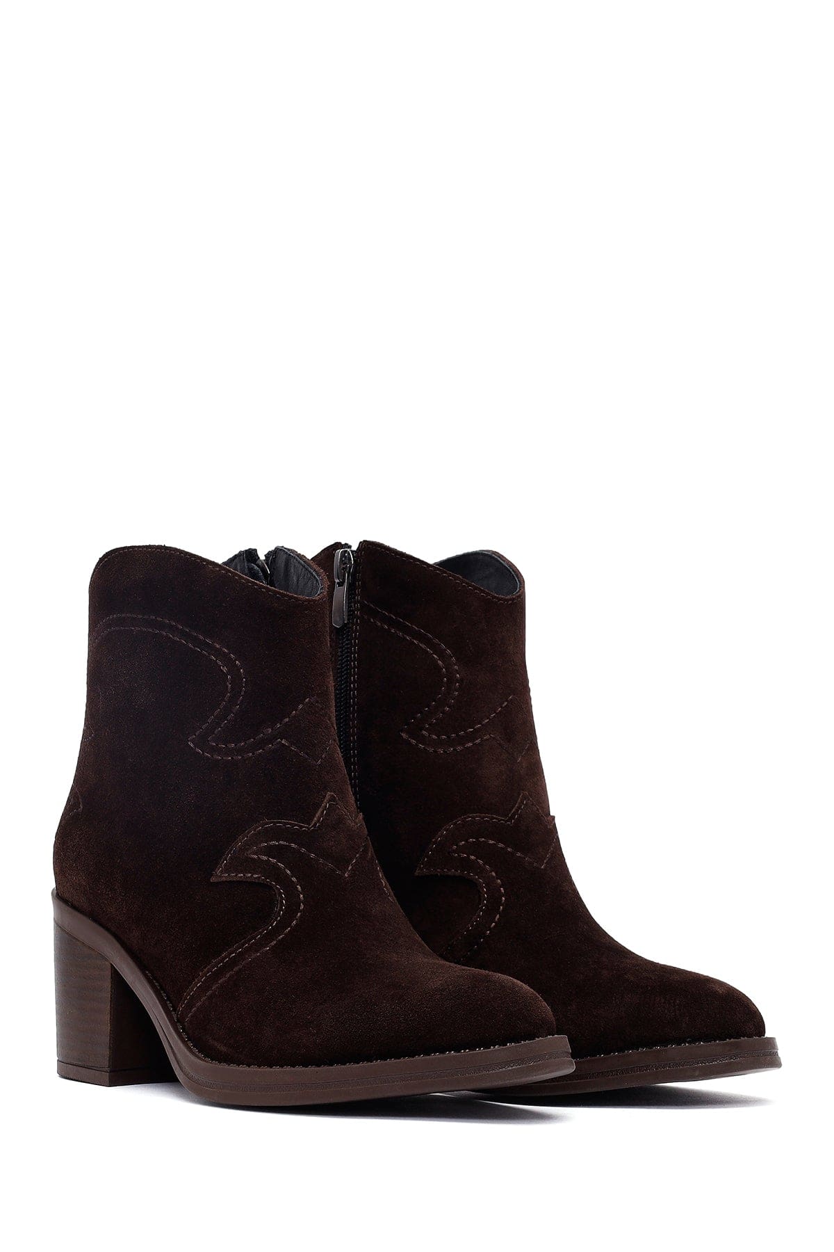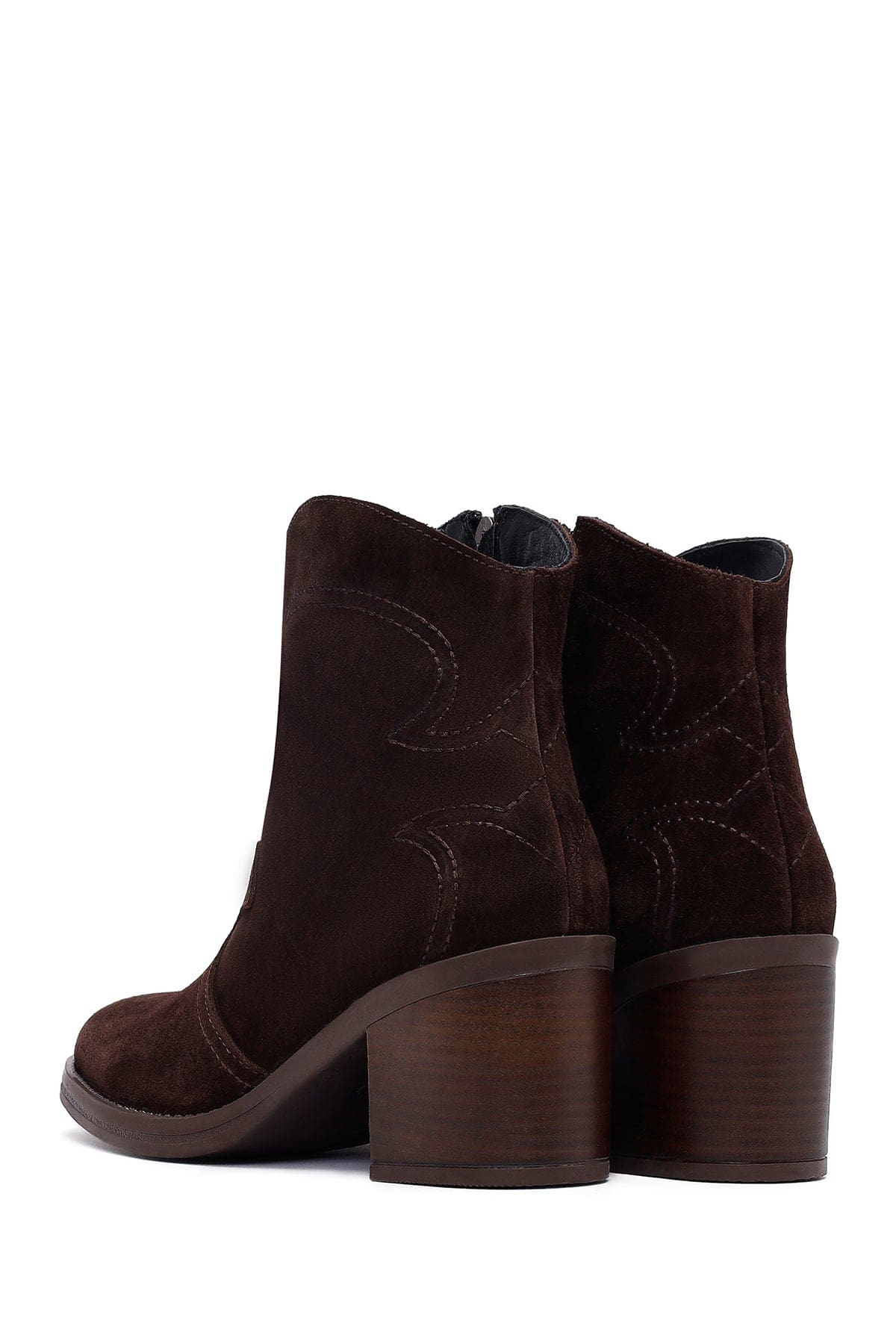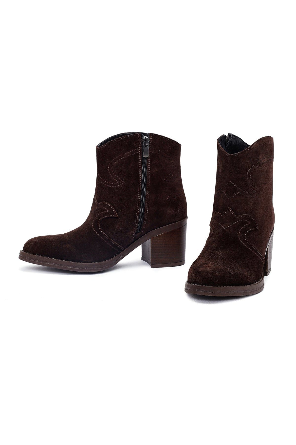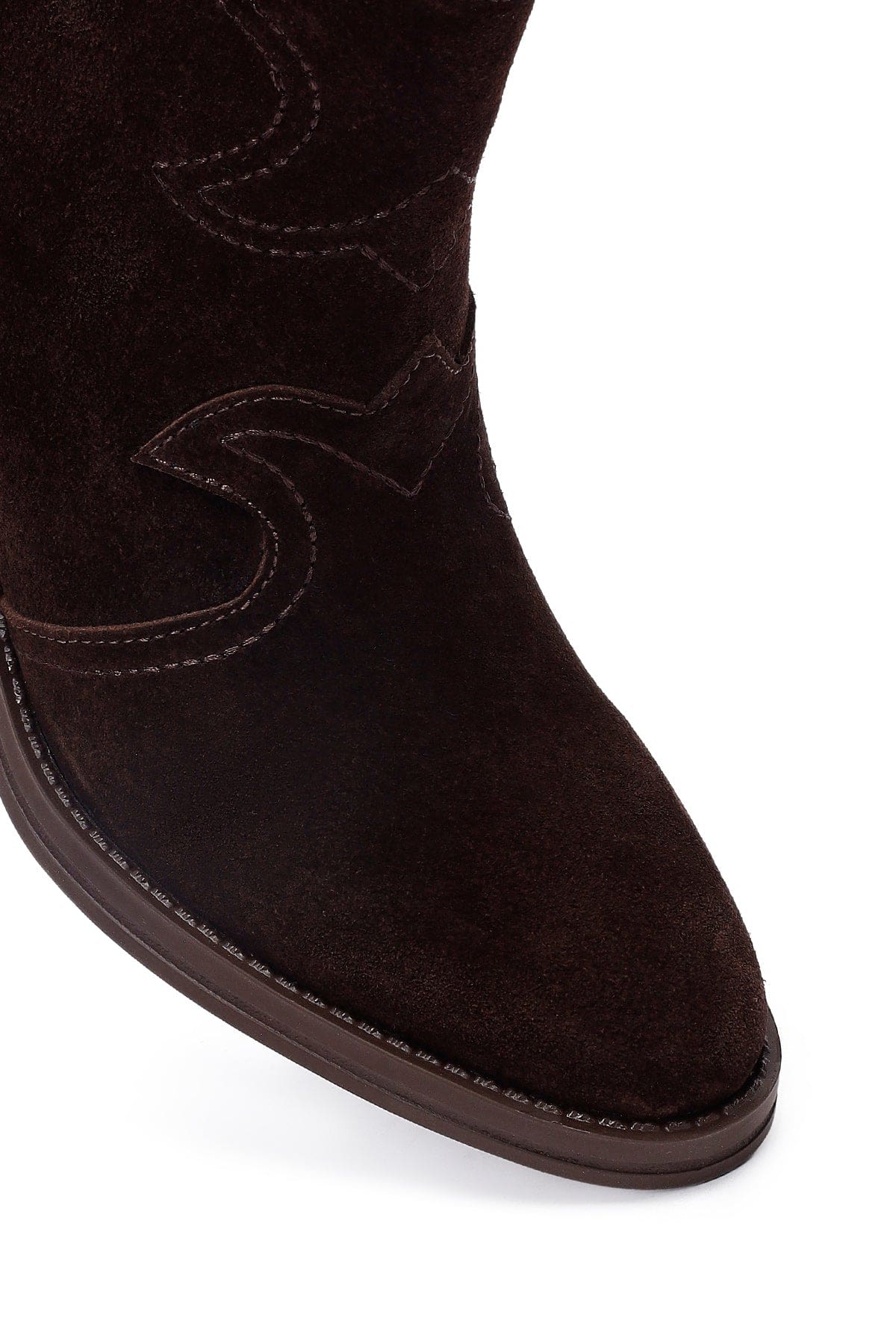 Kadın Kahverengi Kalın Topuklu Süet Deri Kovboy Bot