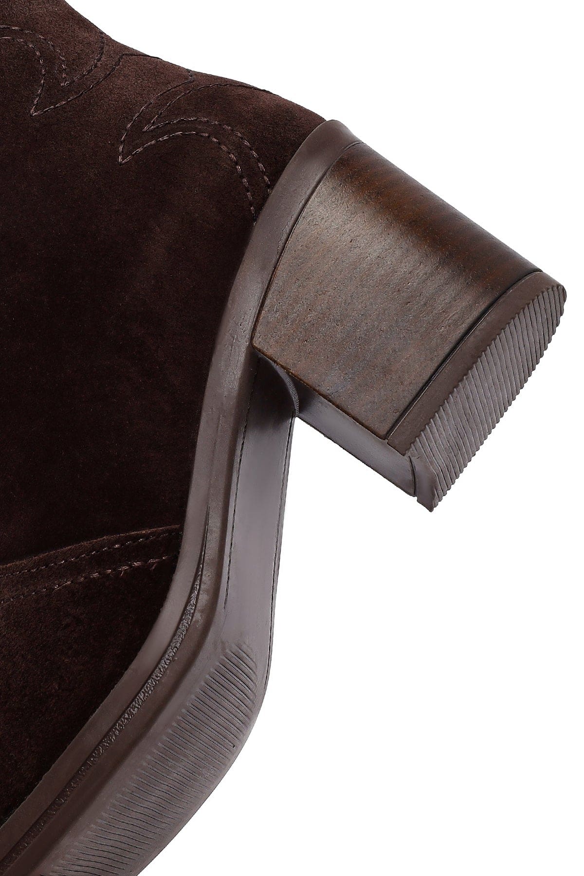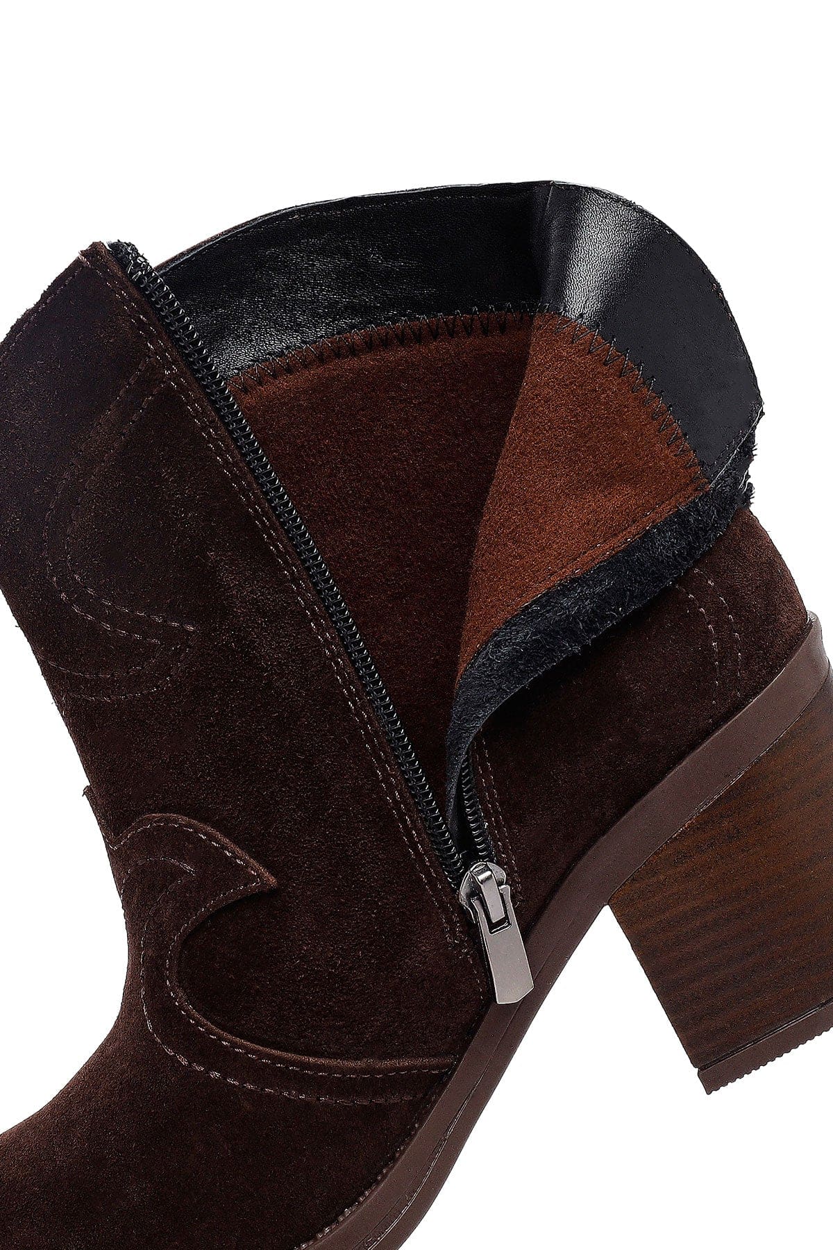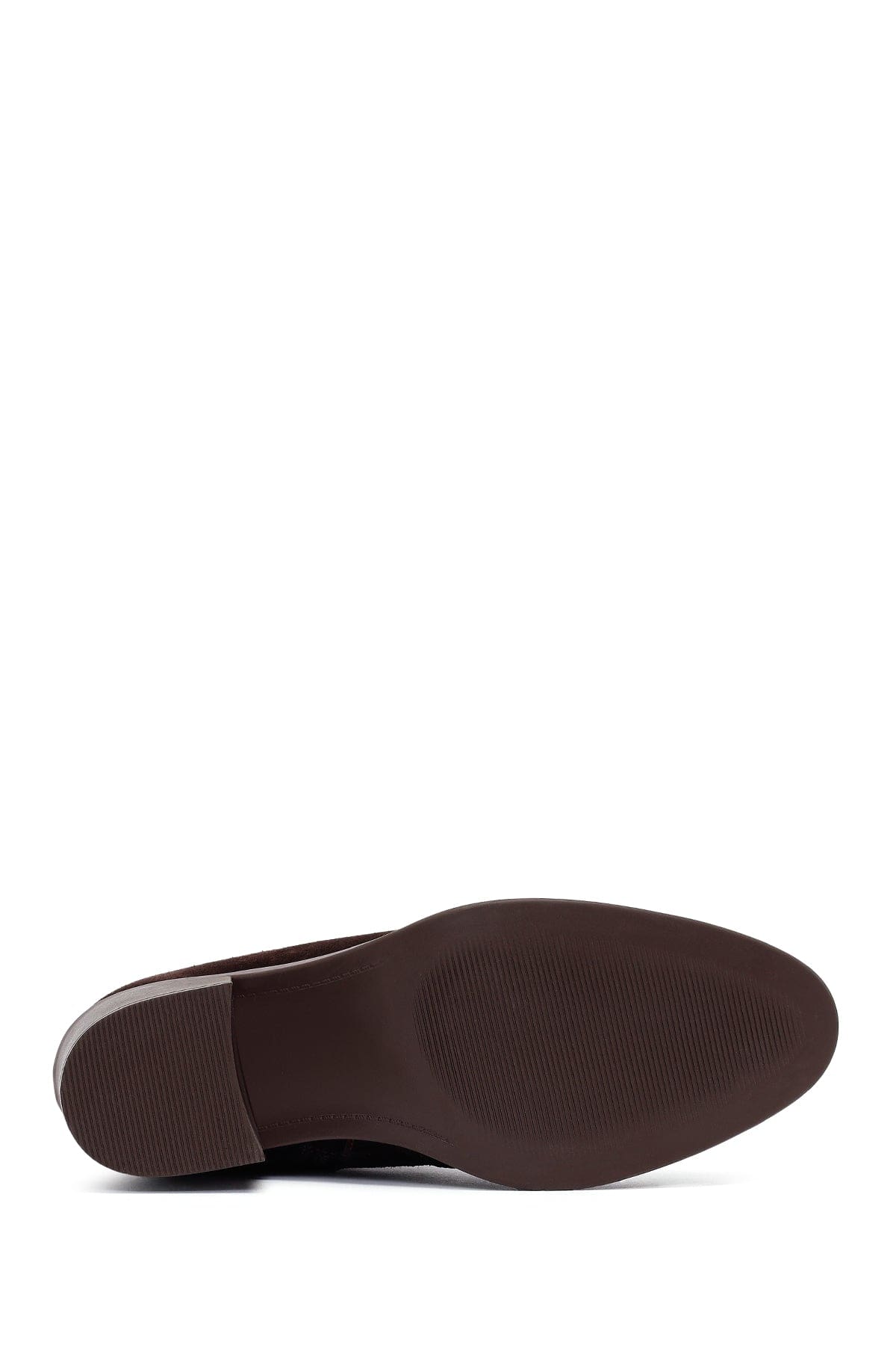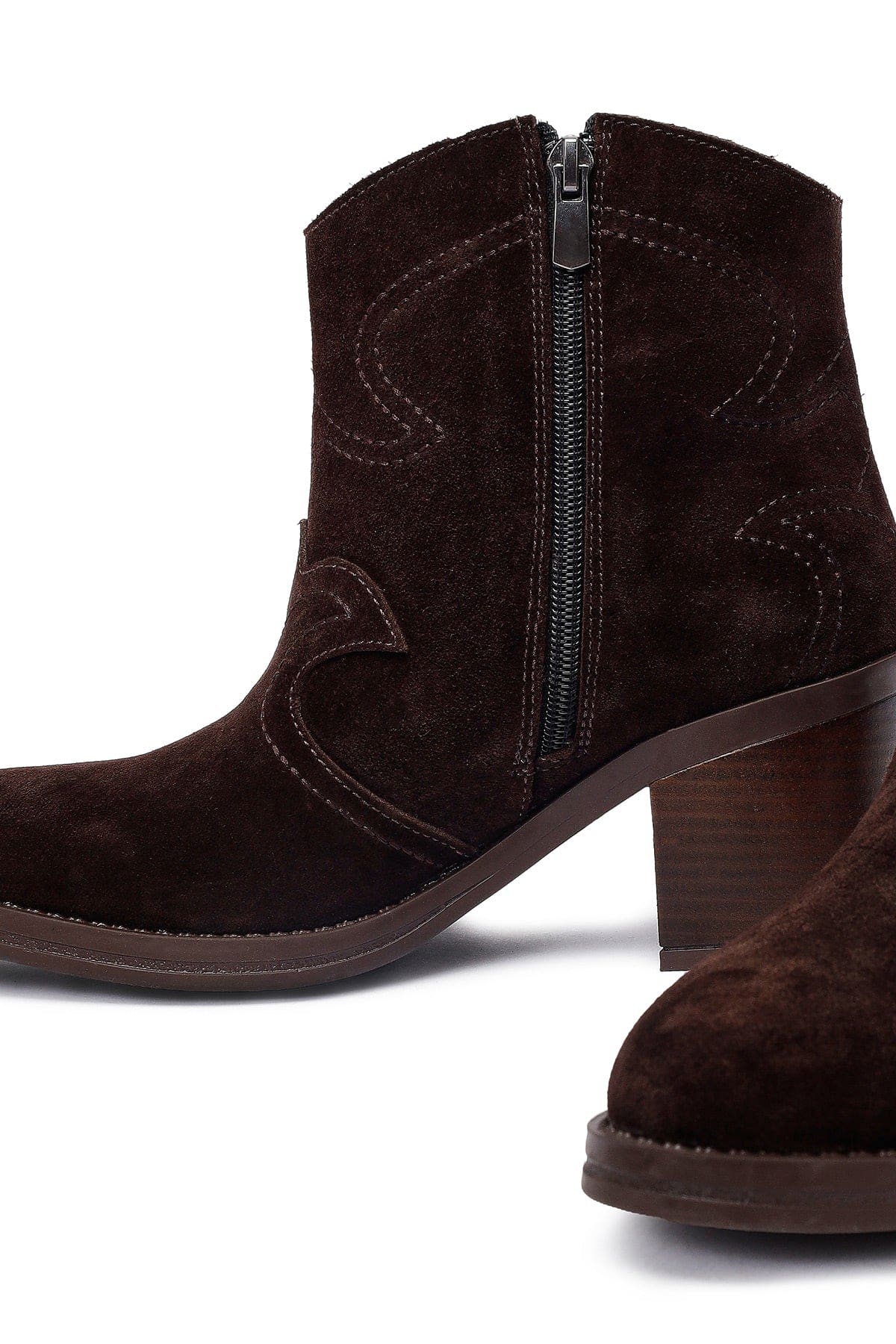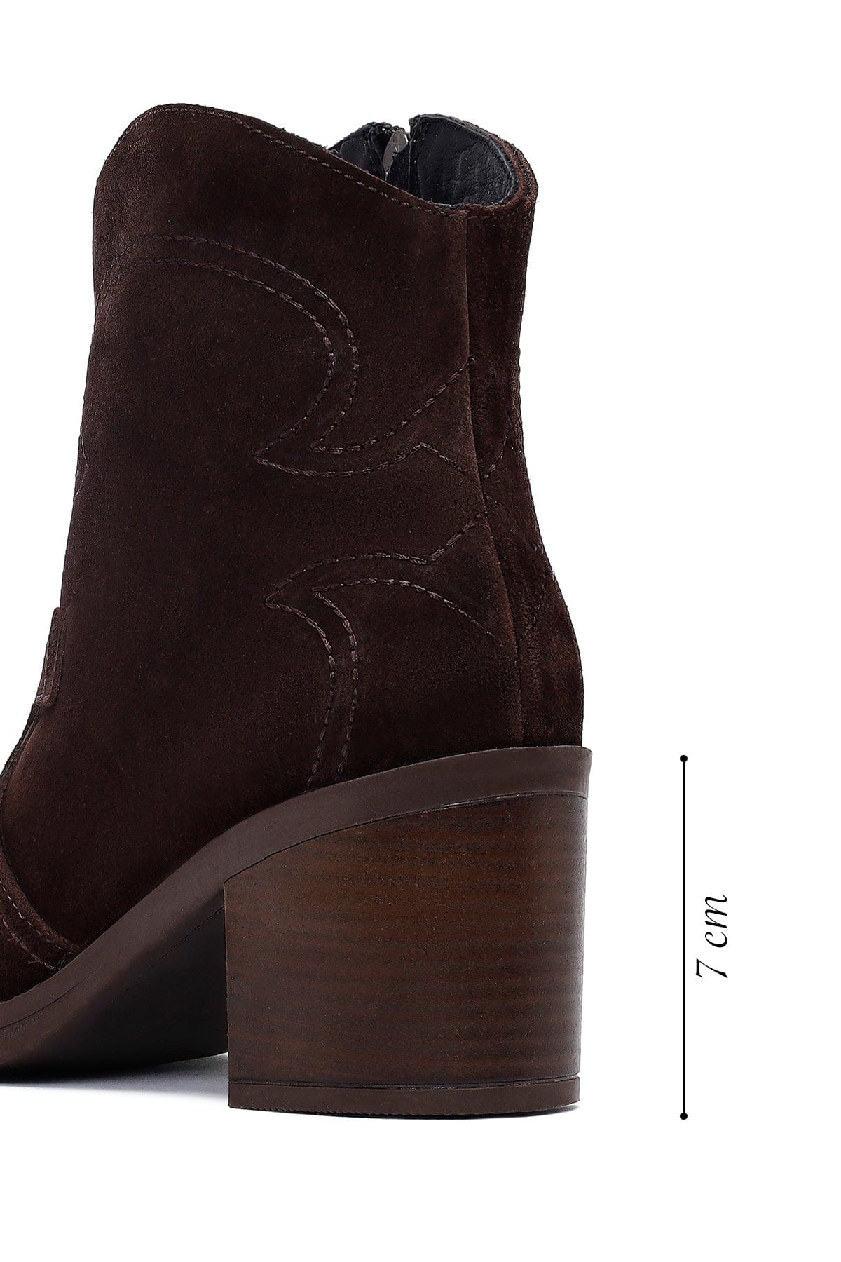 Kadın Kahverengi Kalın Topuklu Süet Deri Kovboy Bot