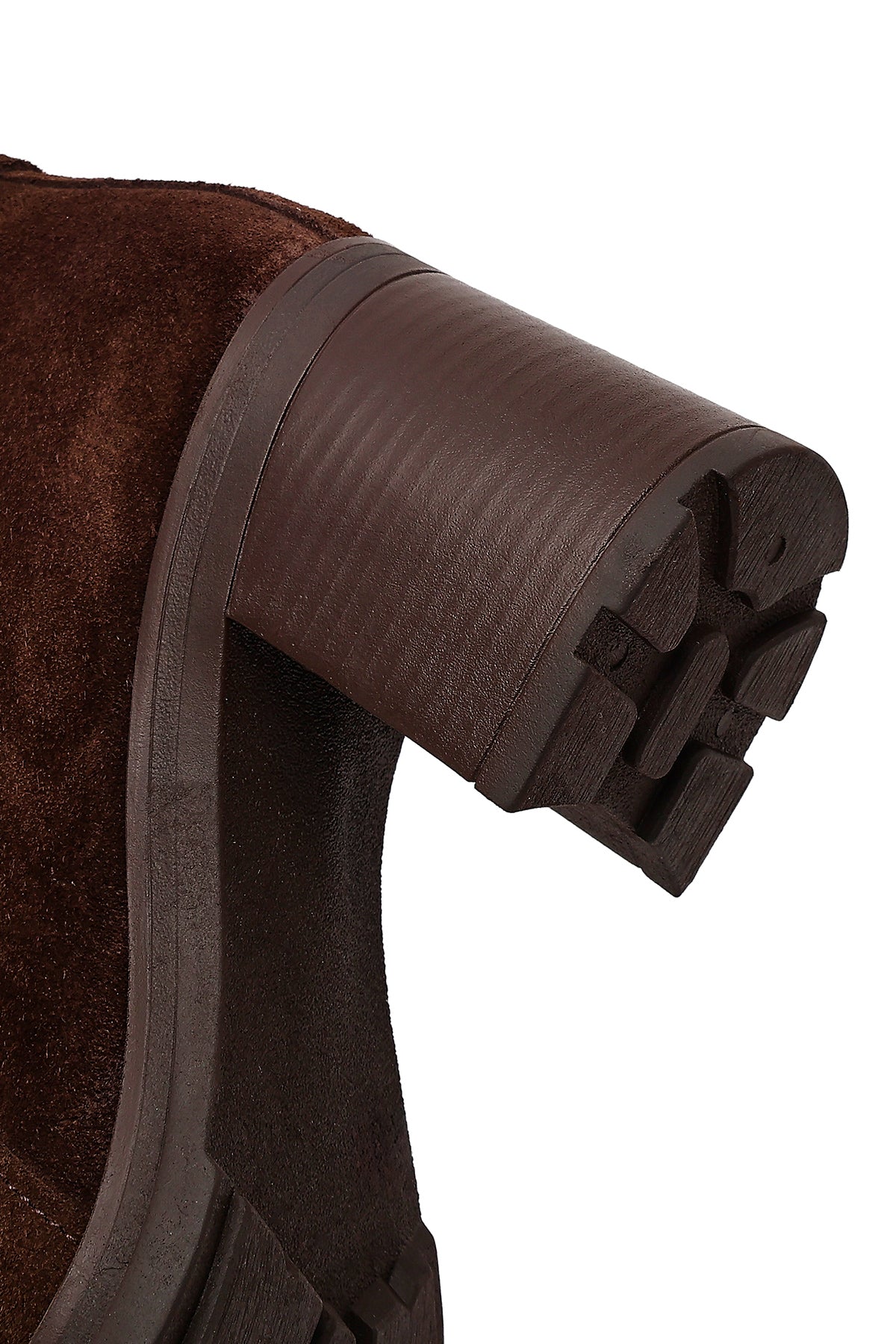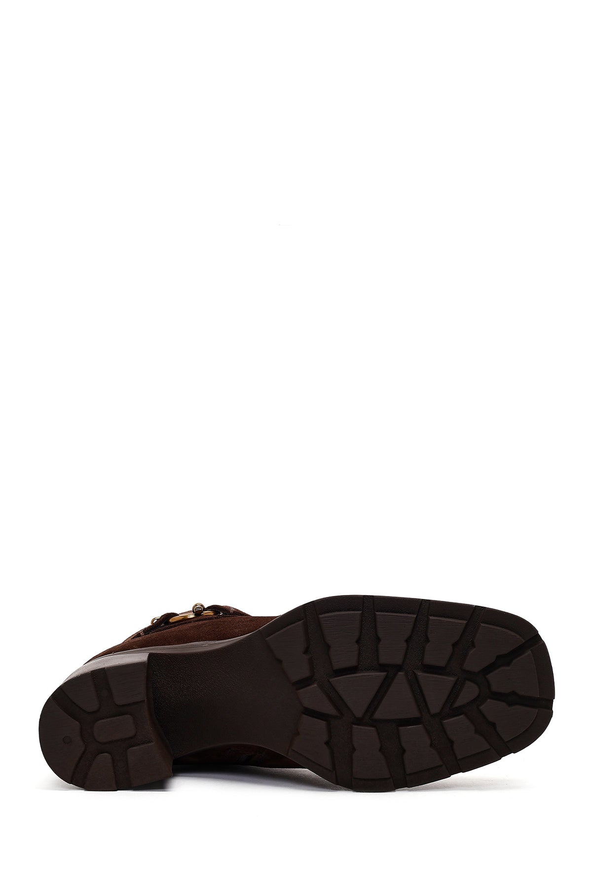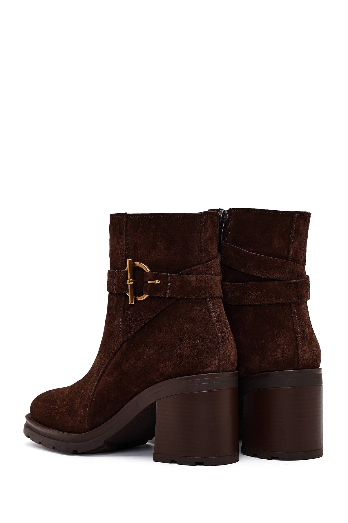 Kadın Kahverengi Fermuarlı Kalın Topuklu Süet Deri Bot