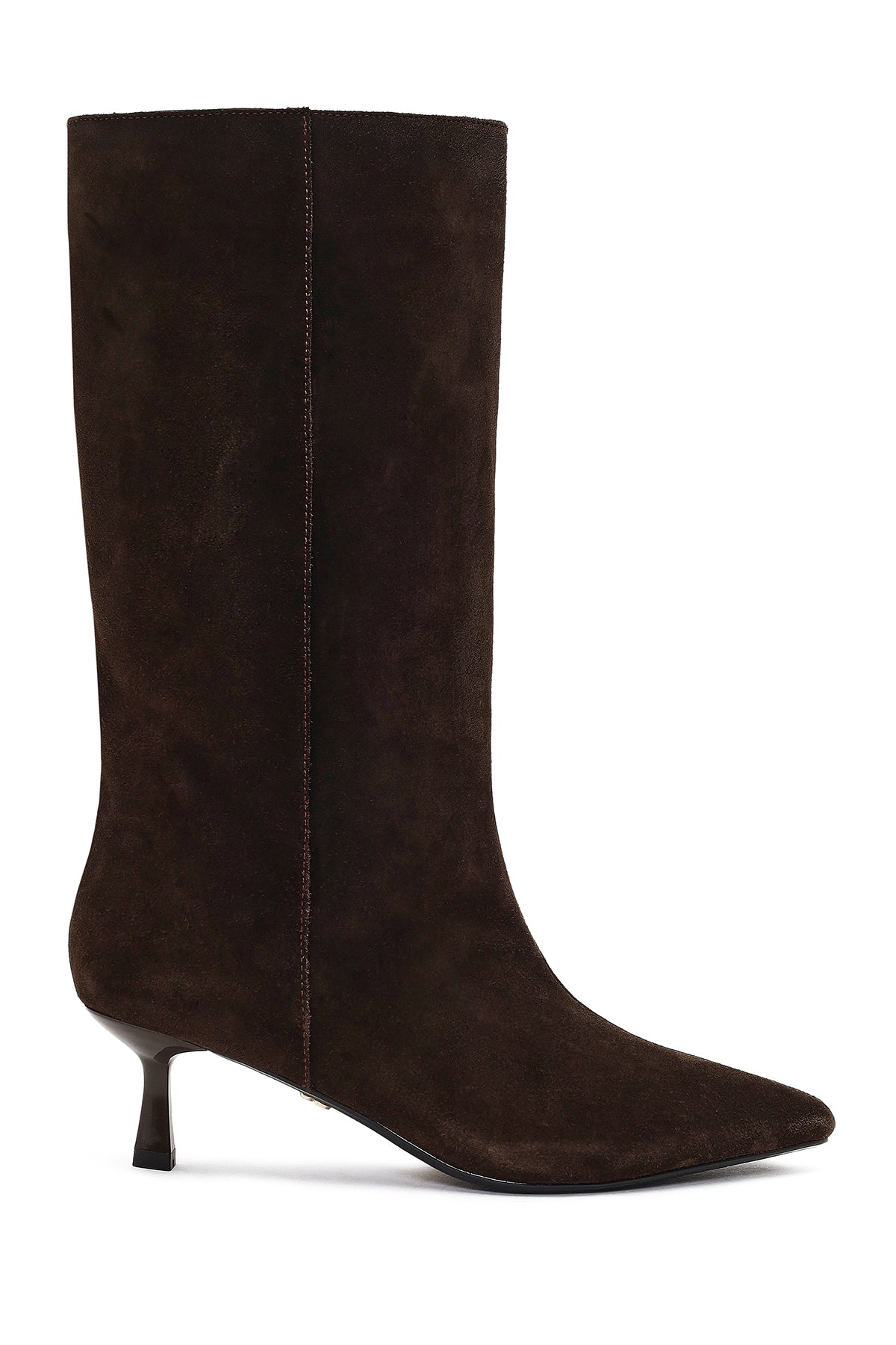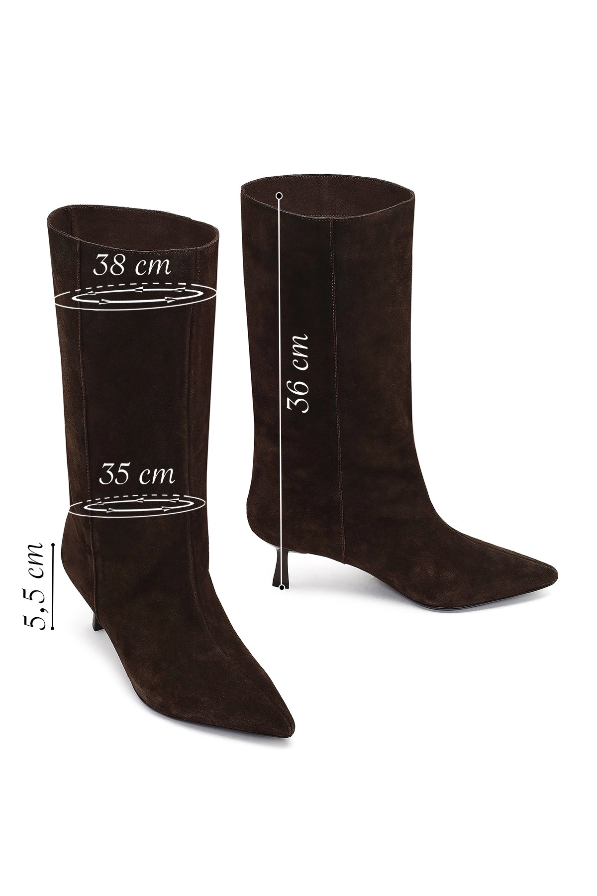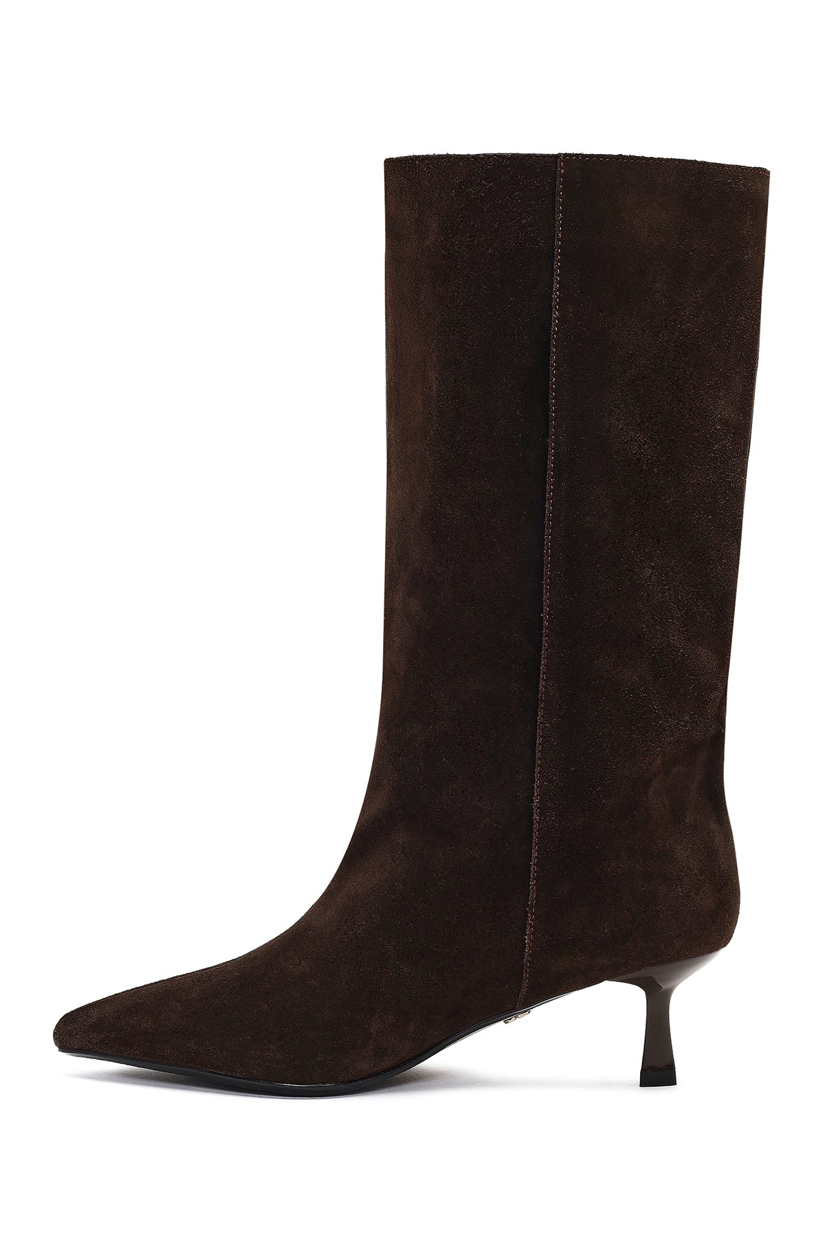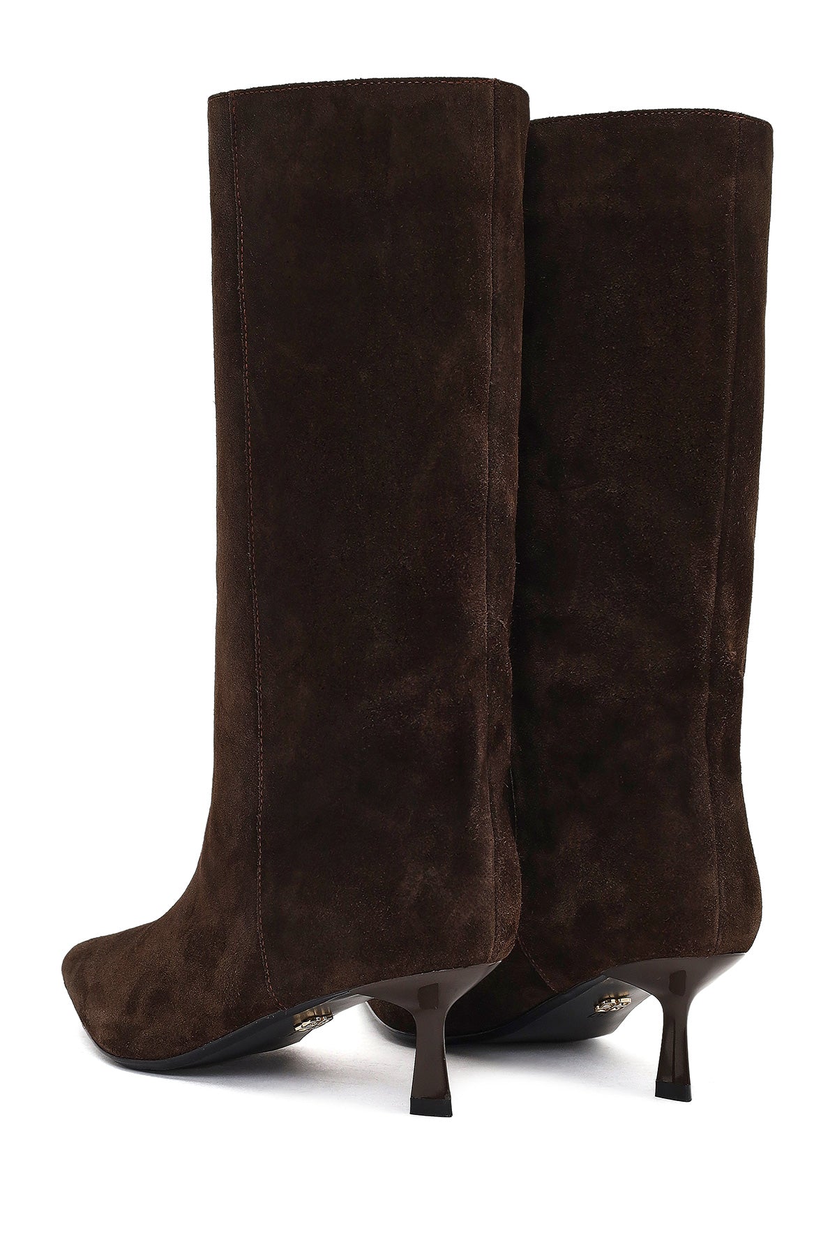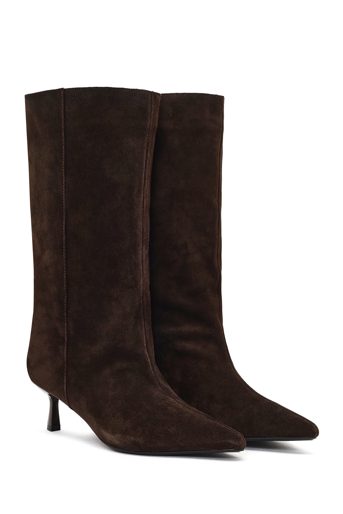 Kadın Kahverengi İnce Topuklu Süet Deri Çizme