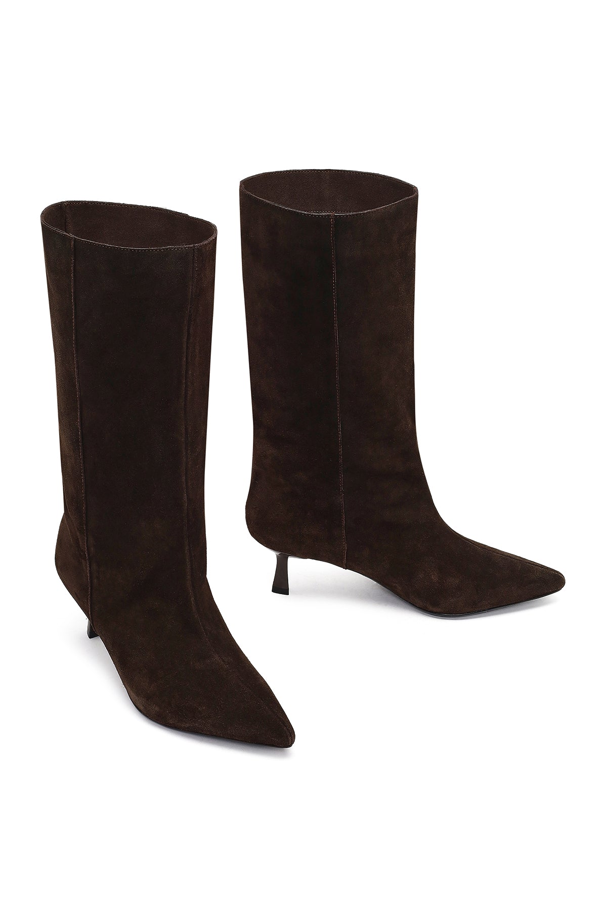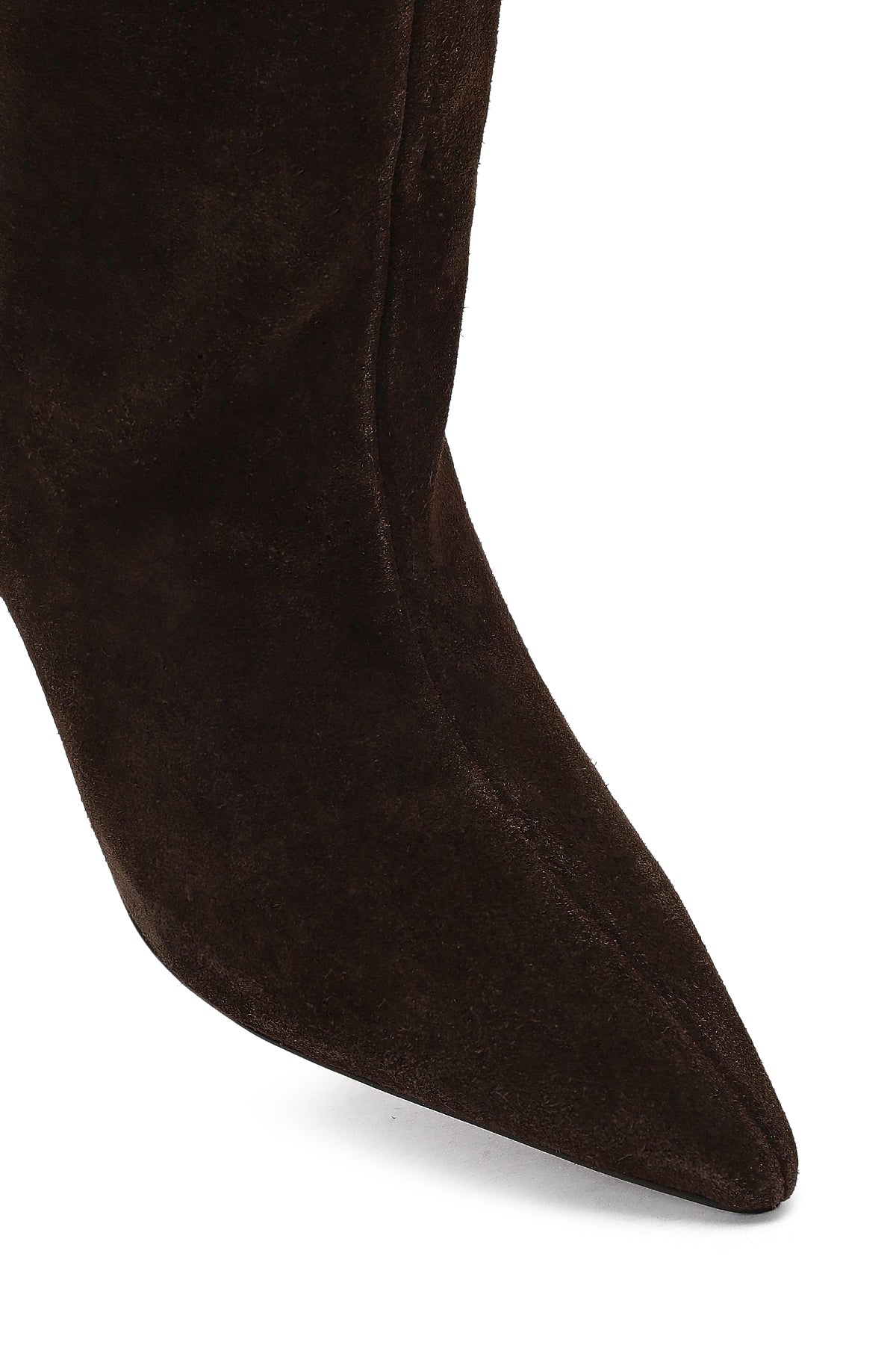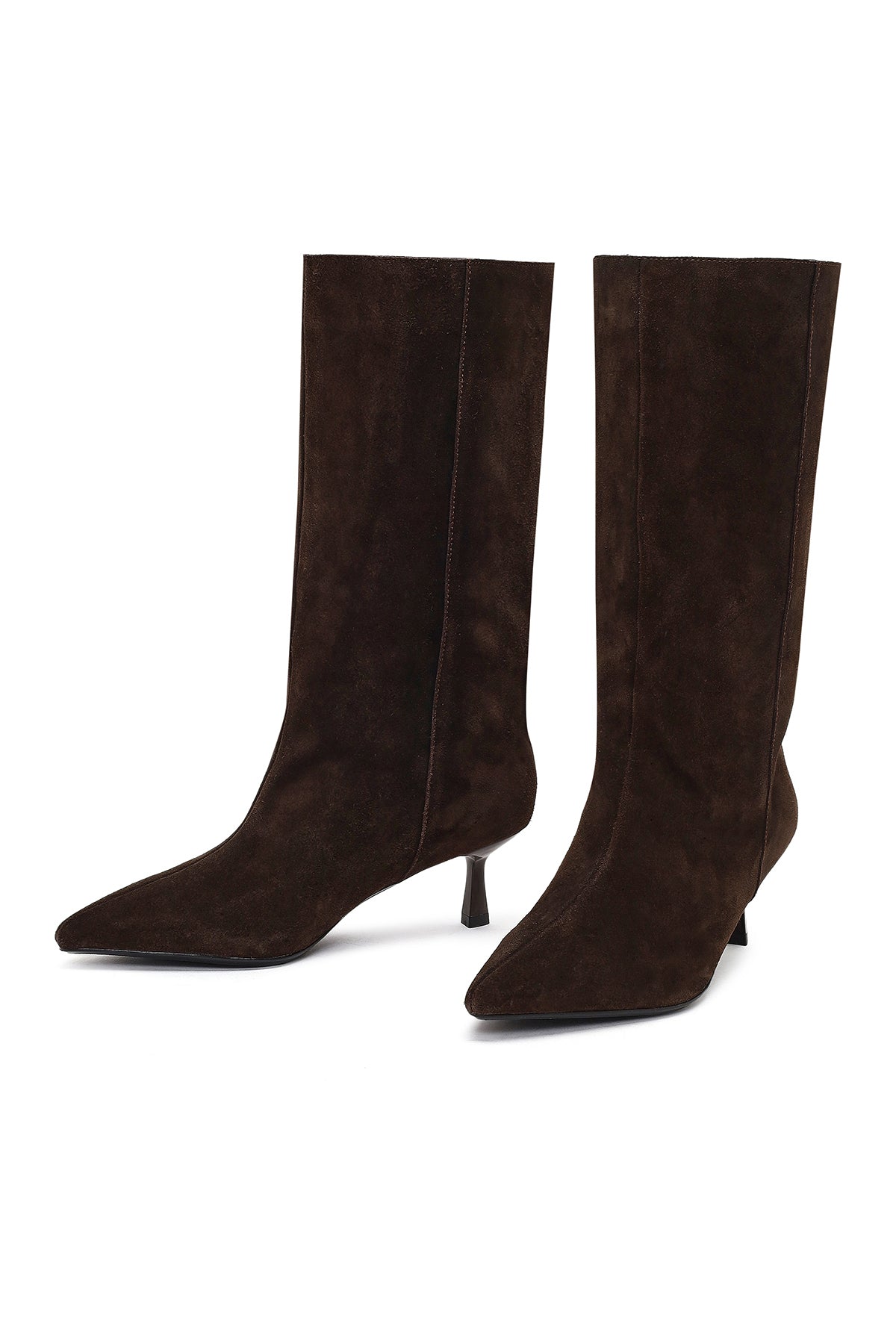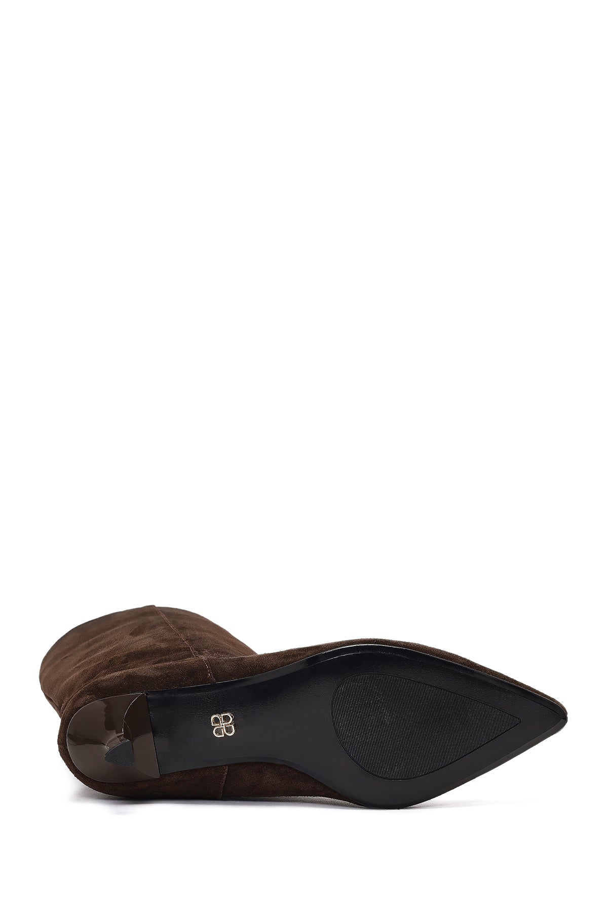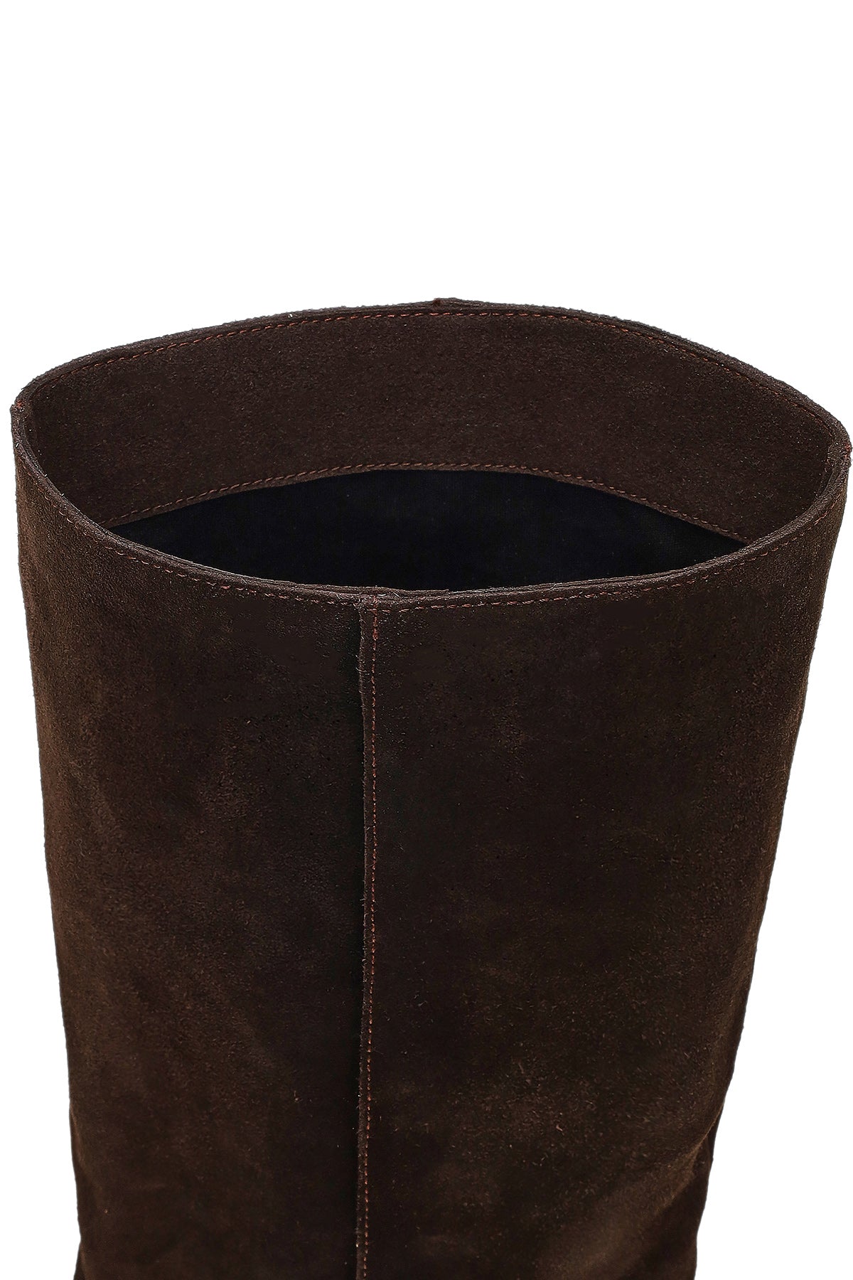 Kadın Kahverengi İnce Topuklu Süet Deri Çizme