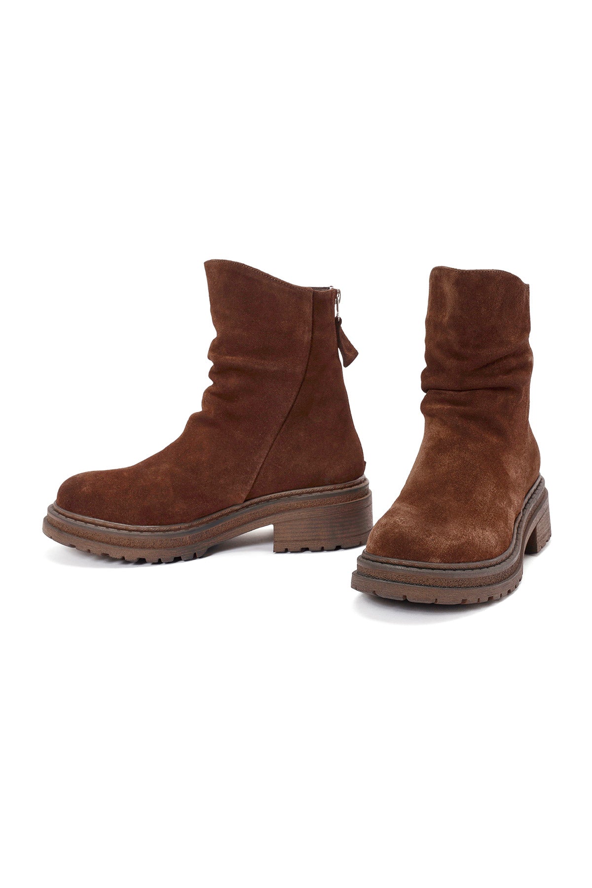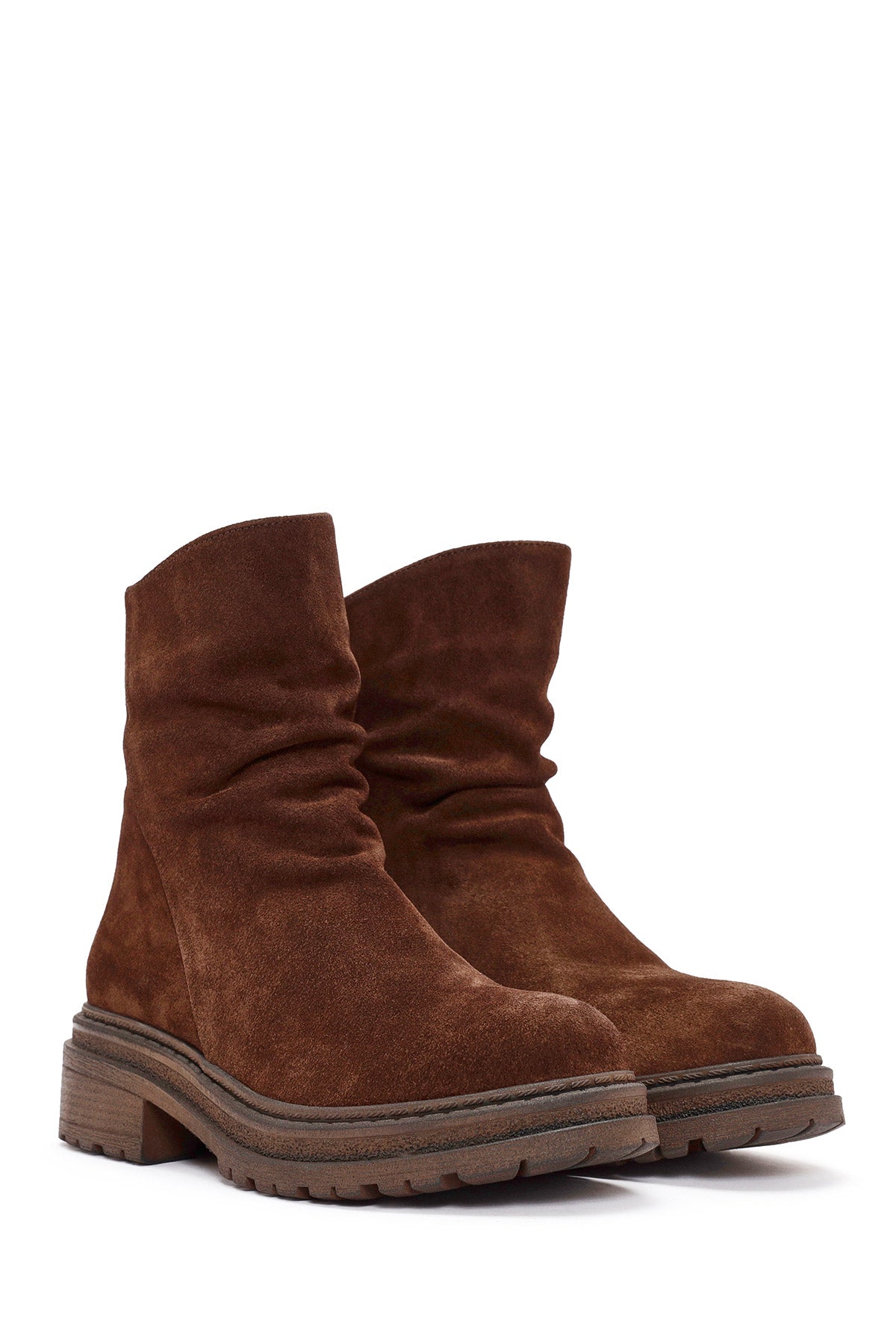 Kadın Kahverengi Fermuarlı Süet Deri Bot