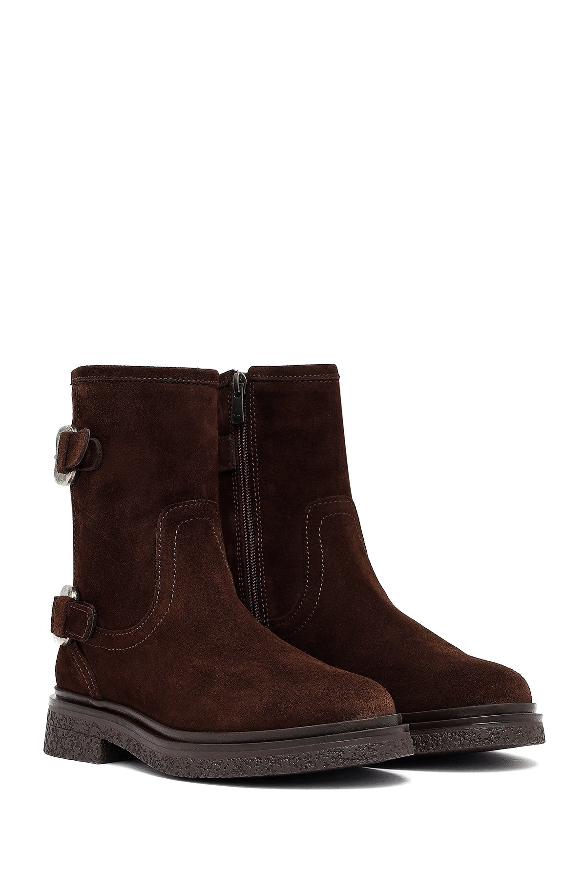 Kadın Kahverengi Fermuarlı Süet Deri Bot