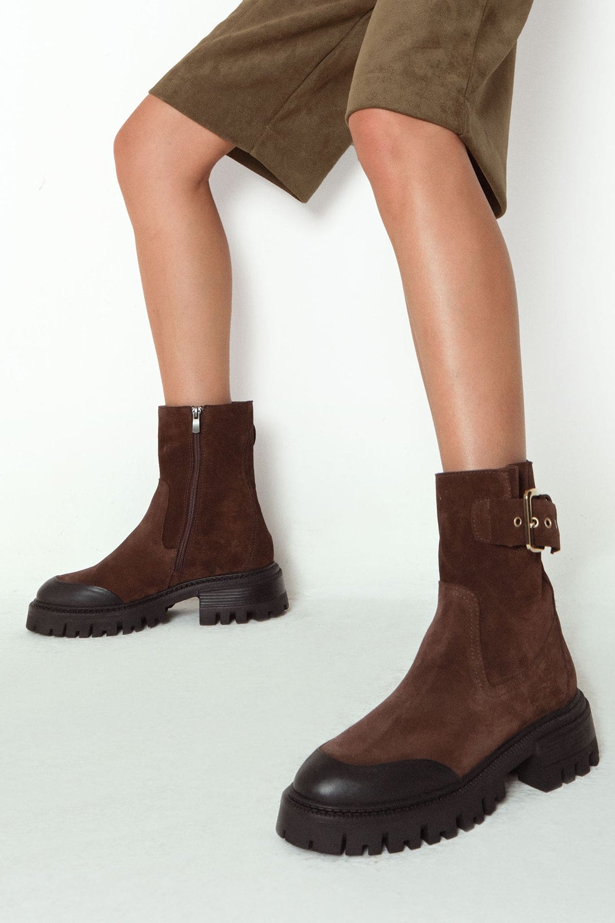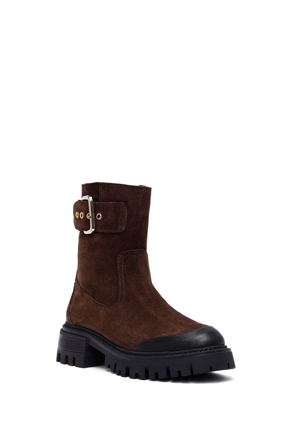 Kadın Kahverengi Kalın Tabanlı Süet Deri Bot