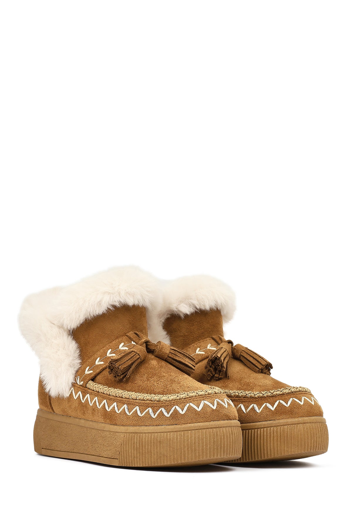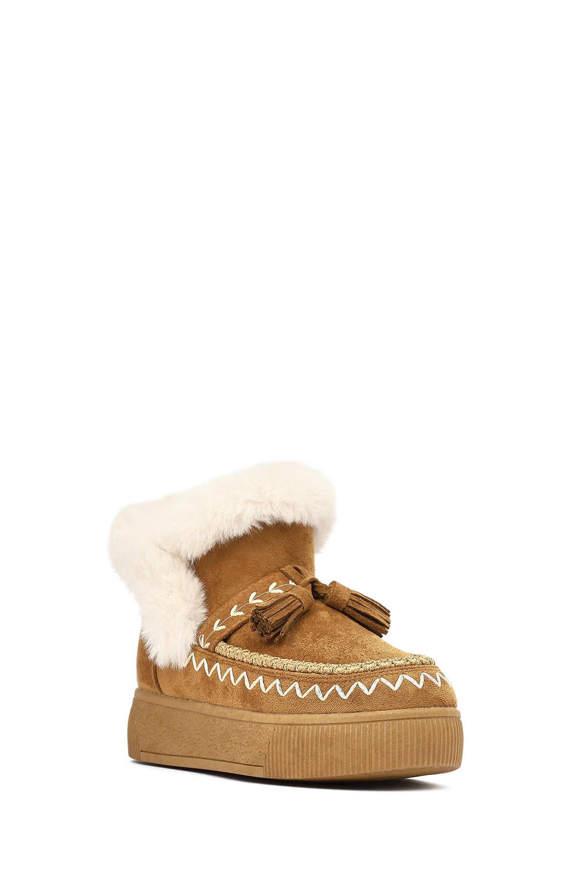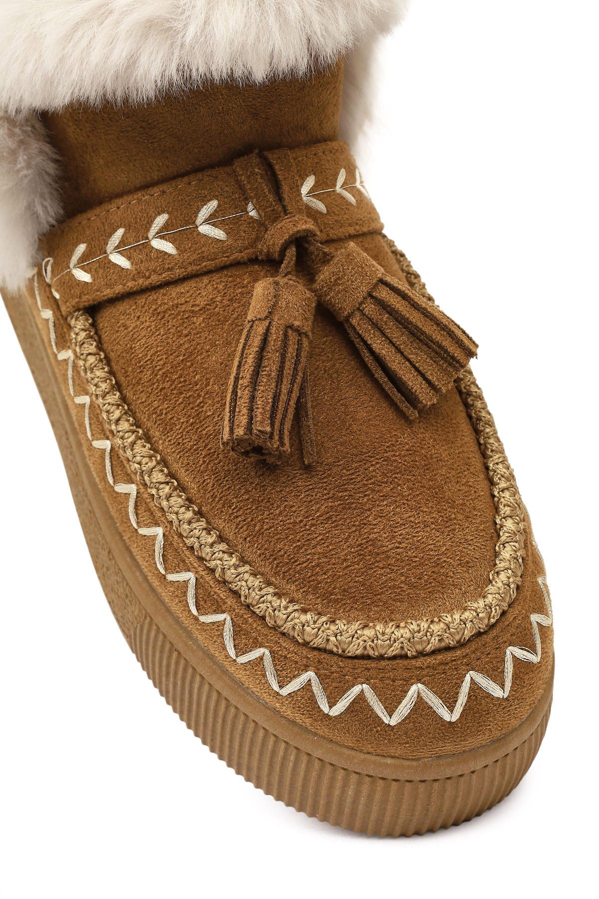 Kadın Taba Kalın Tabanlı Püsküllü Süet Teddy Bot