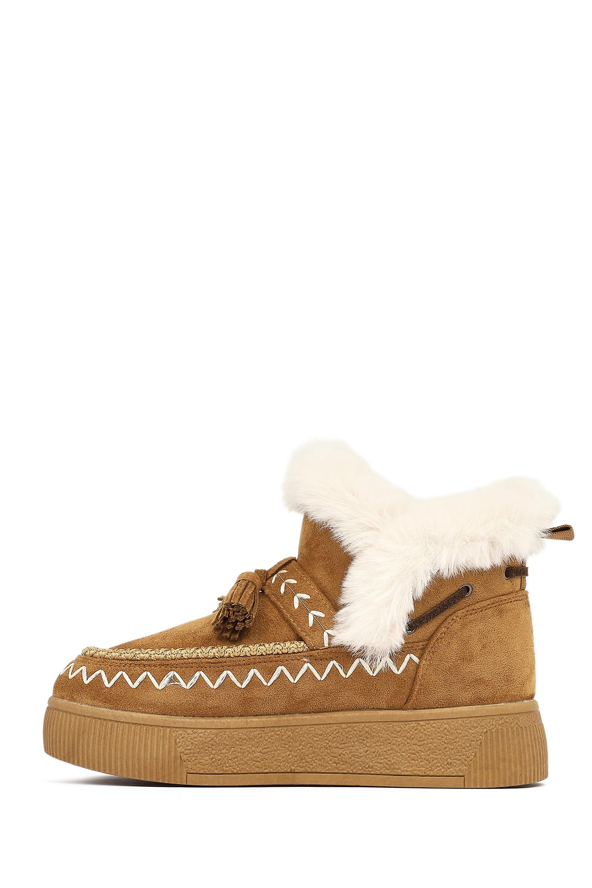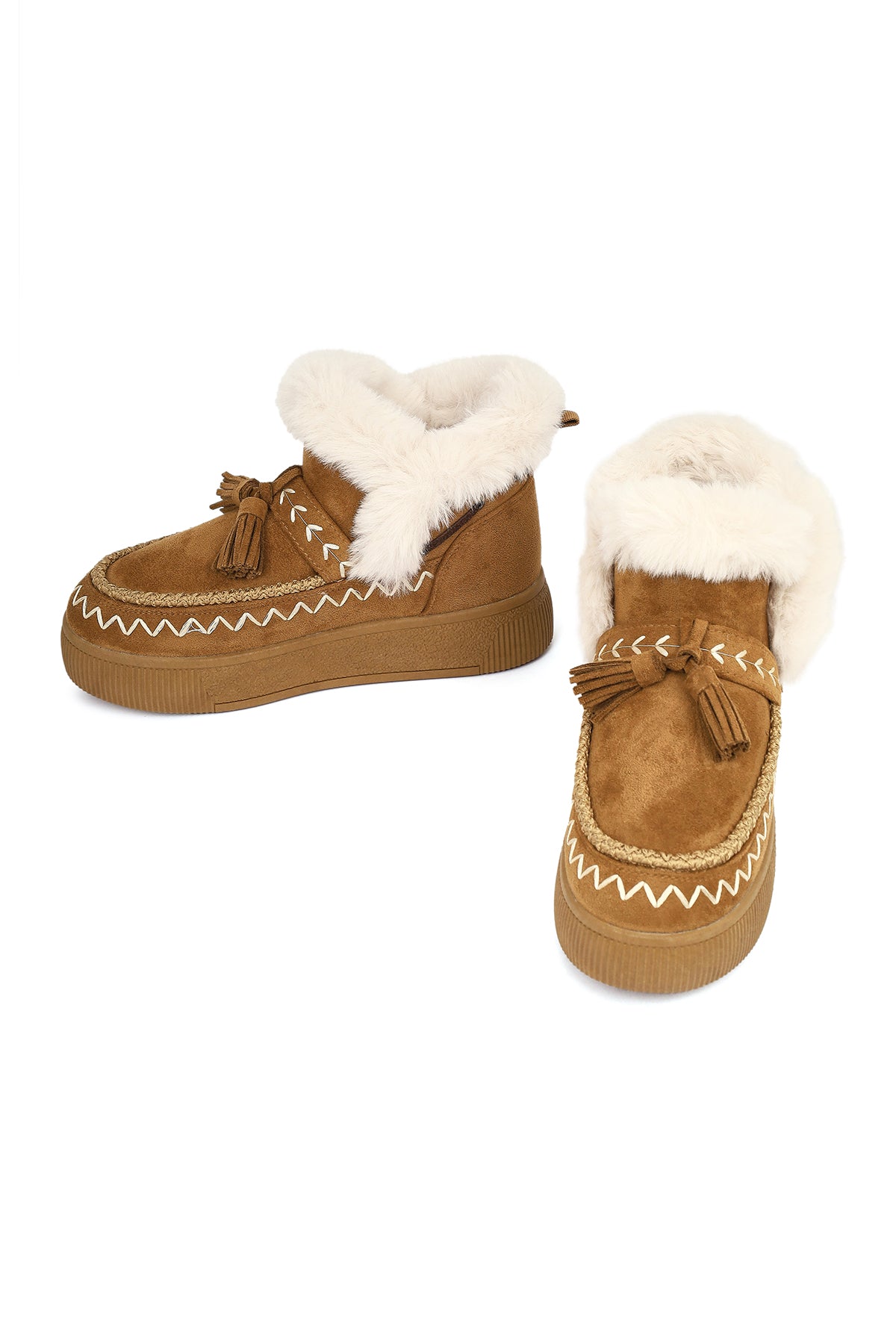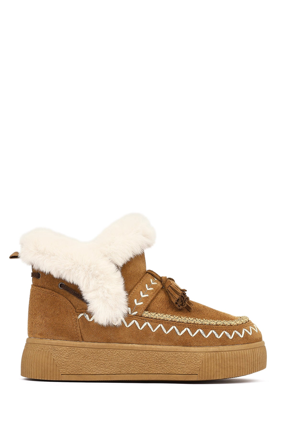 Kadın Taba Kalın Tabanlı Püsküllü Süet Teddy Bot