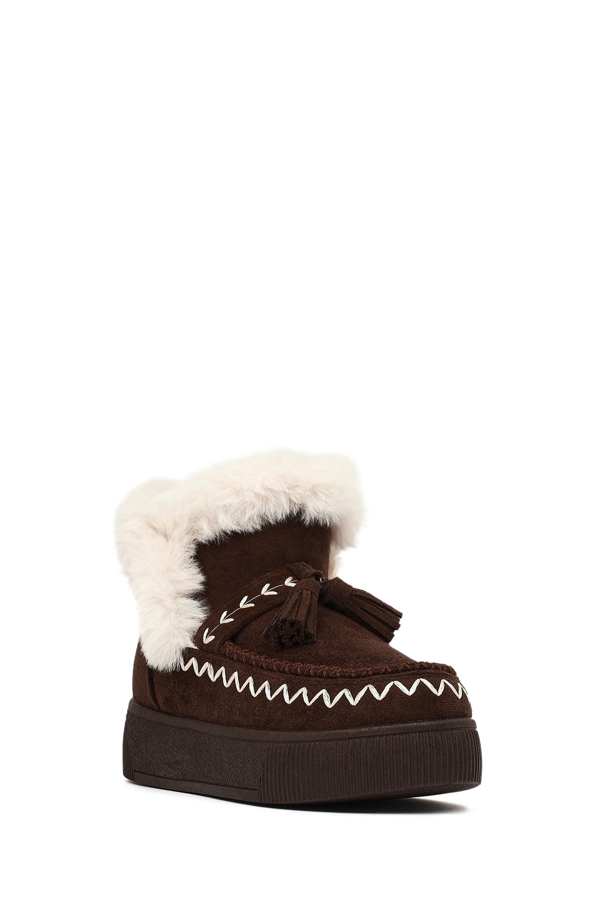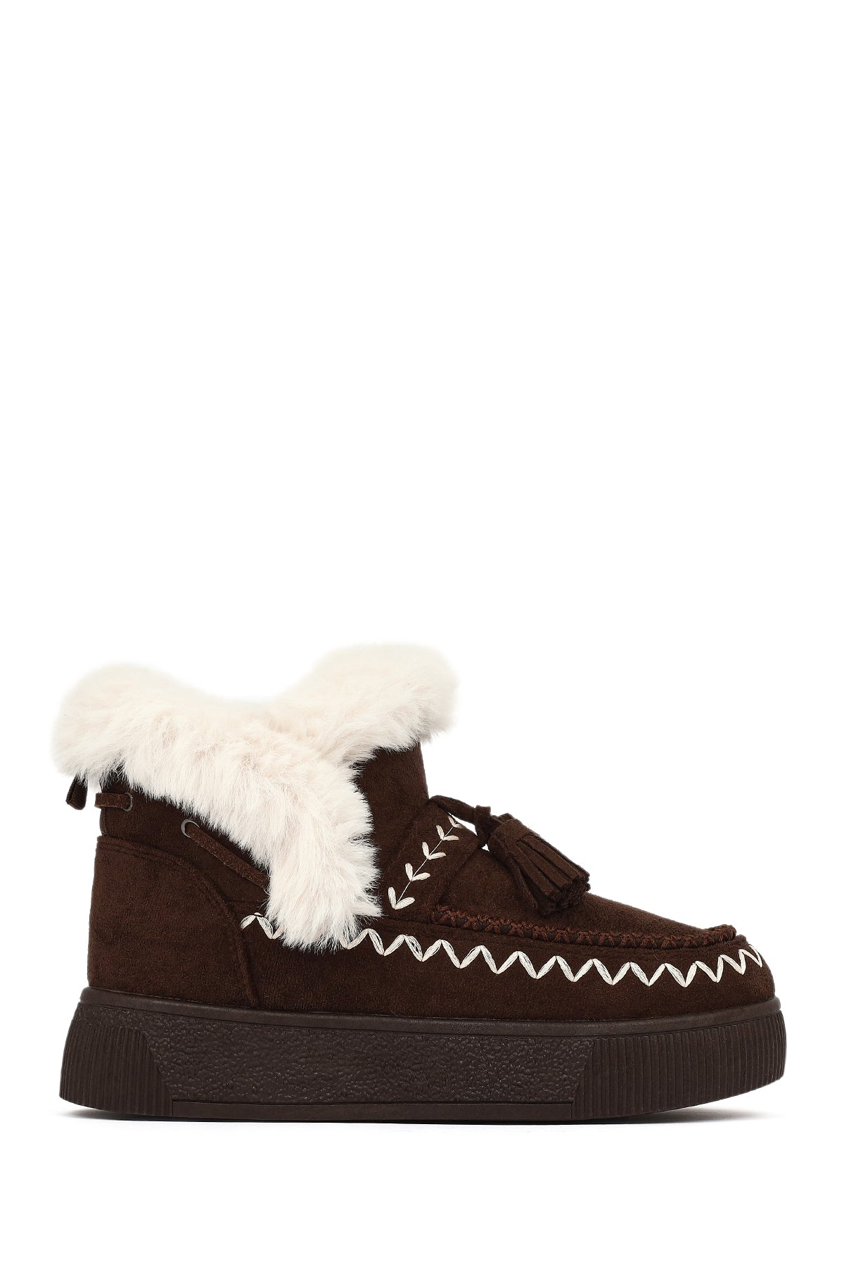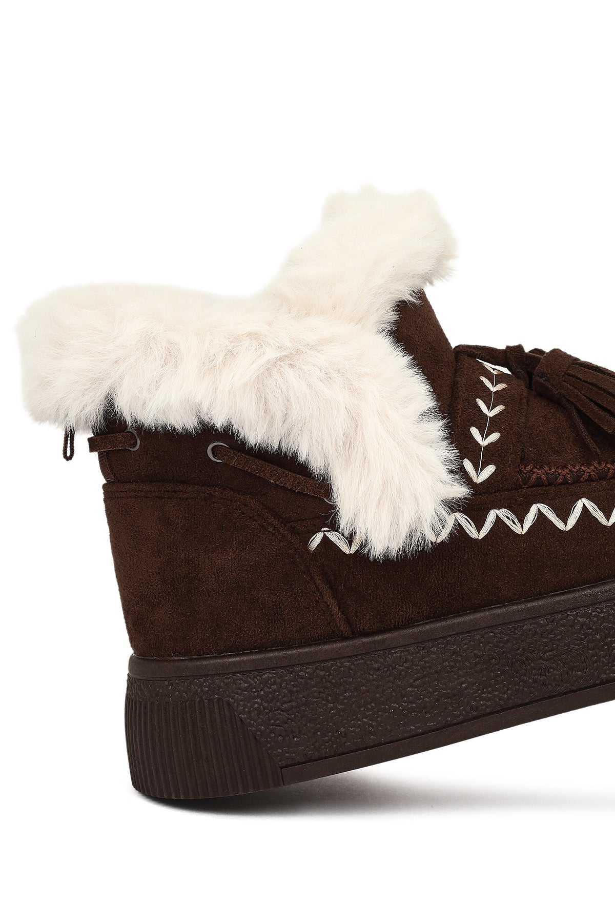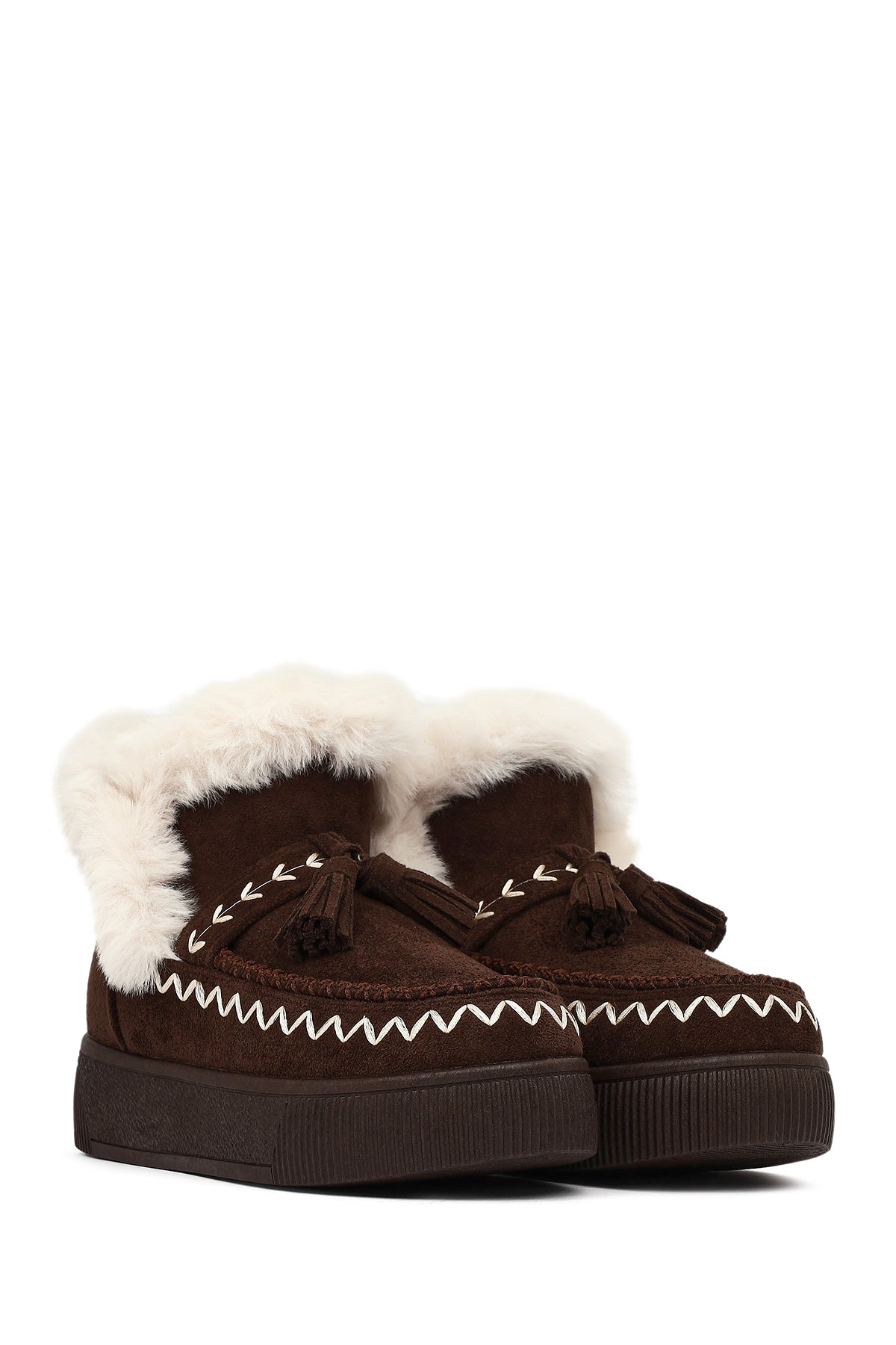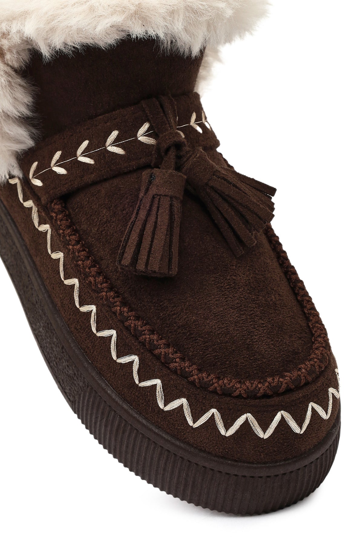 Kadın Kahverengi Kalın Tabanlı Püsküllü Süet Teddy Bot