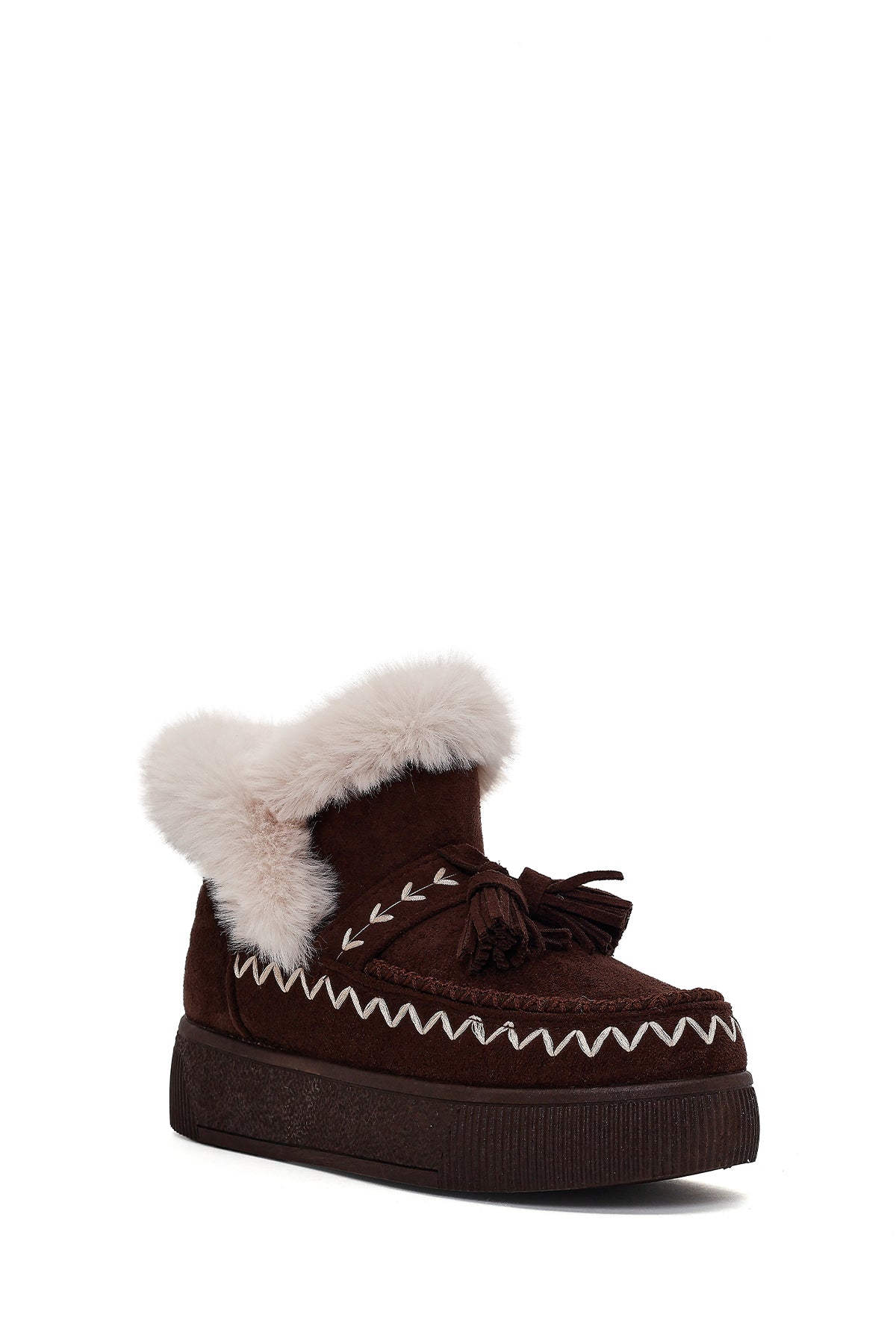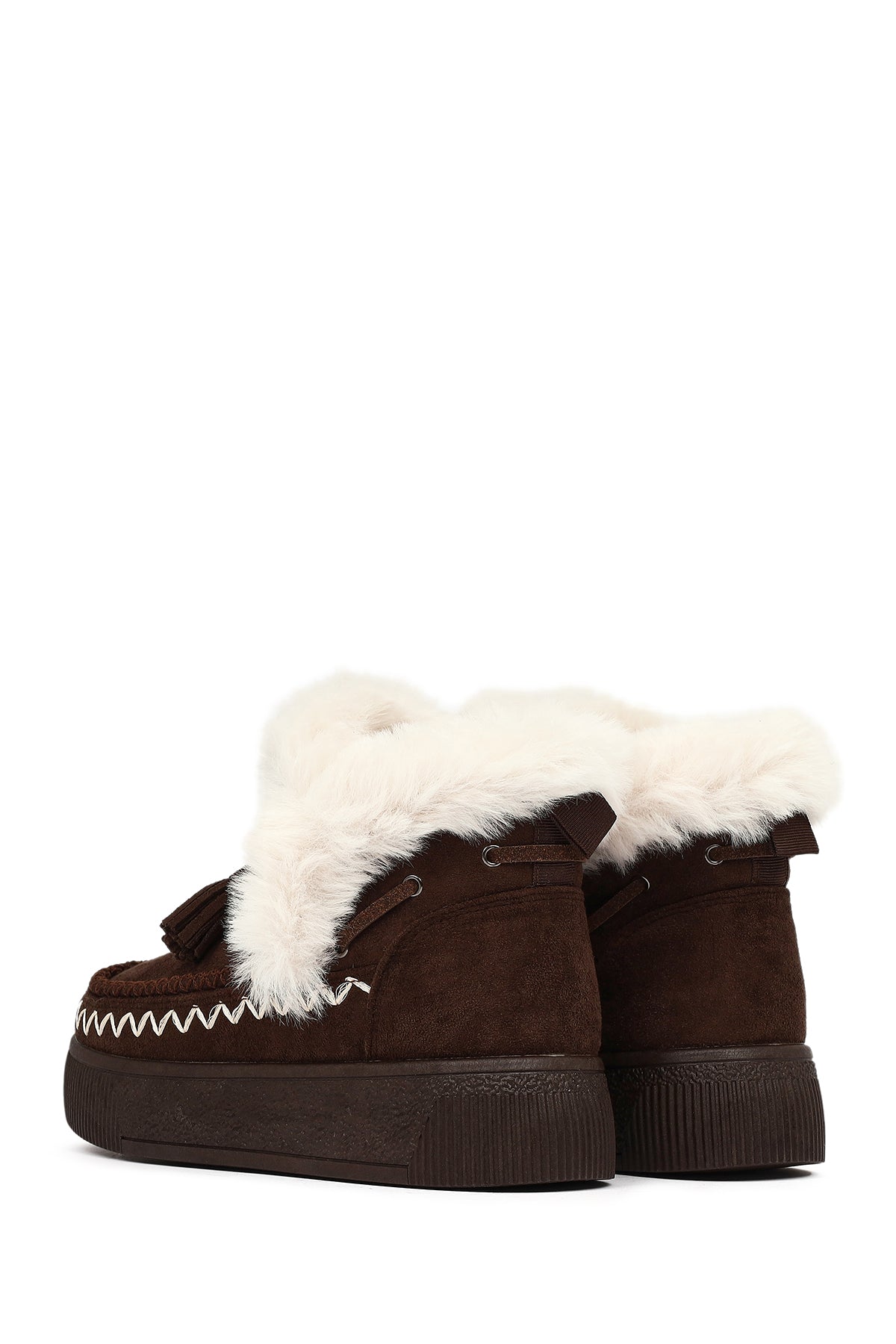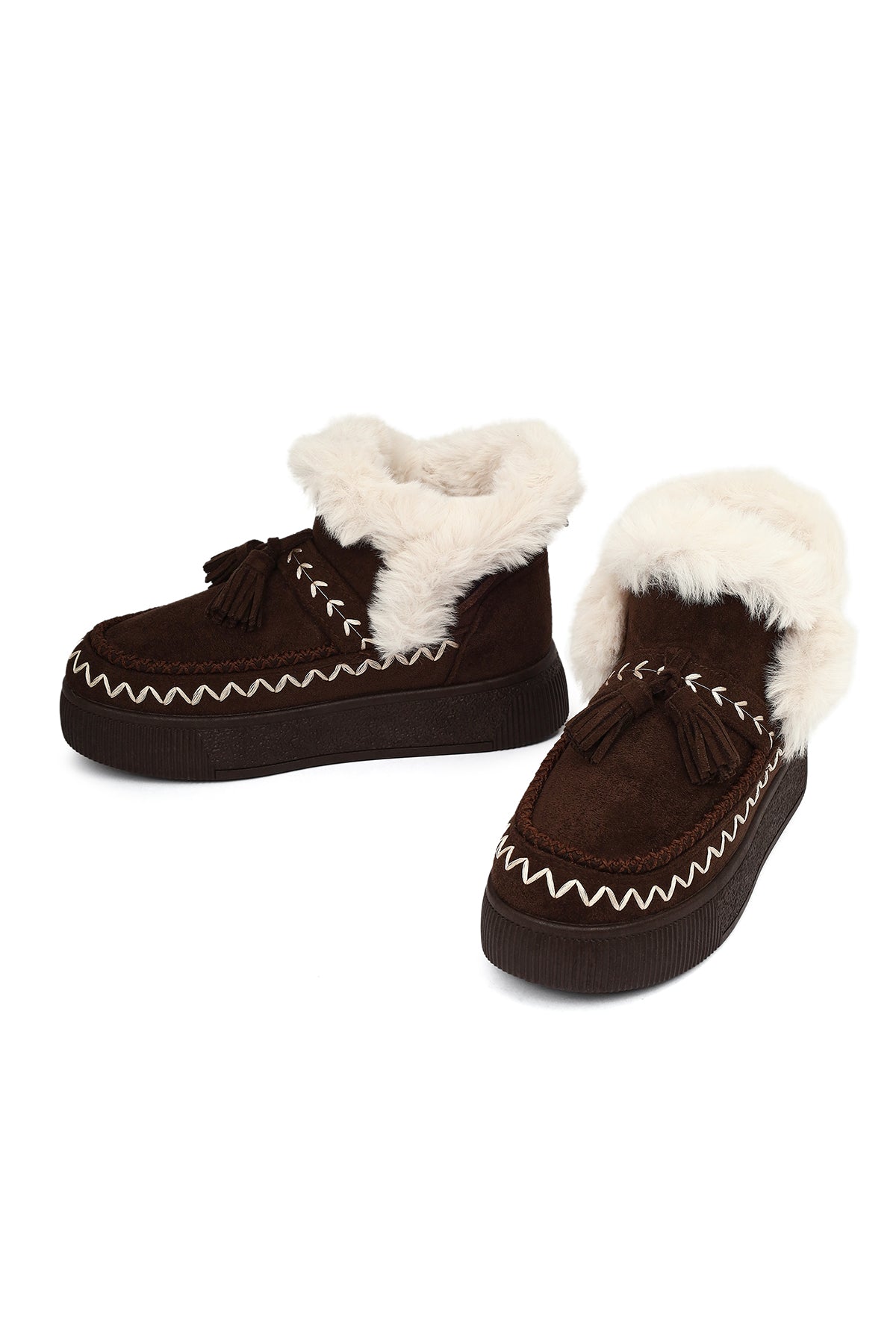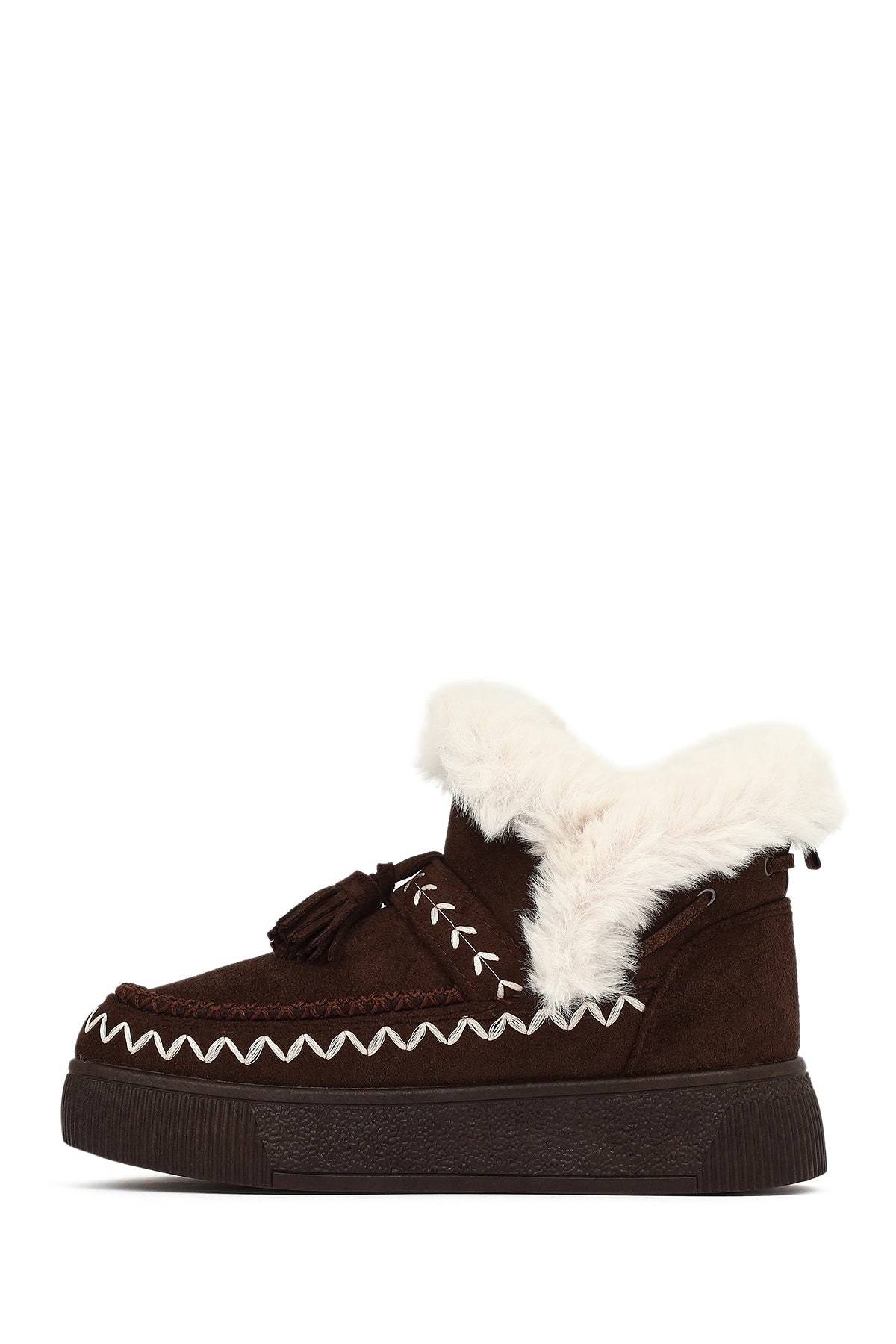 Kadın Kahverengi Kalın Tabanlı Püsküllü Süet Teddy Bot