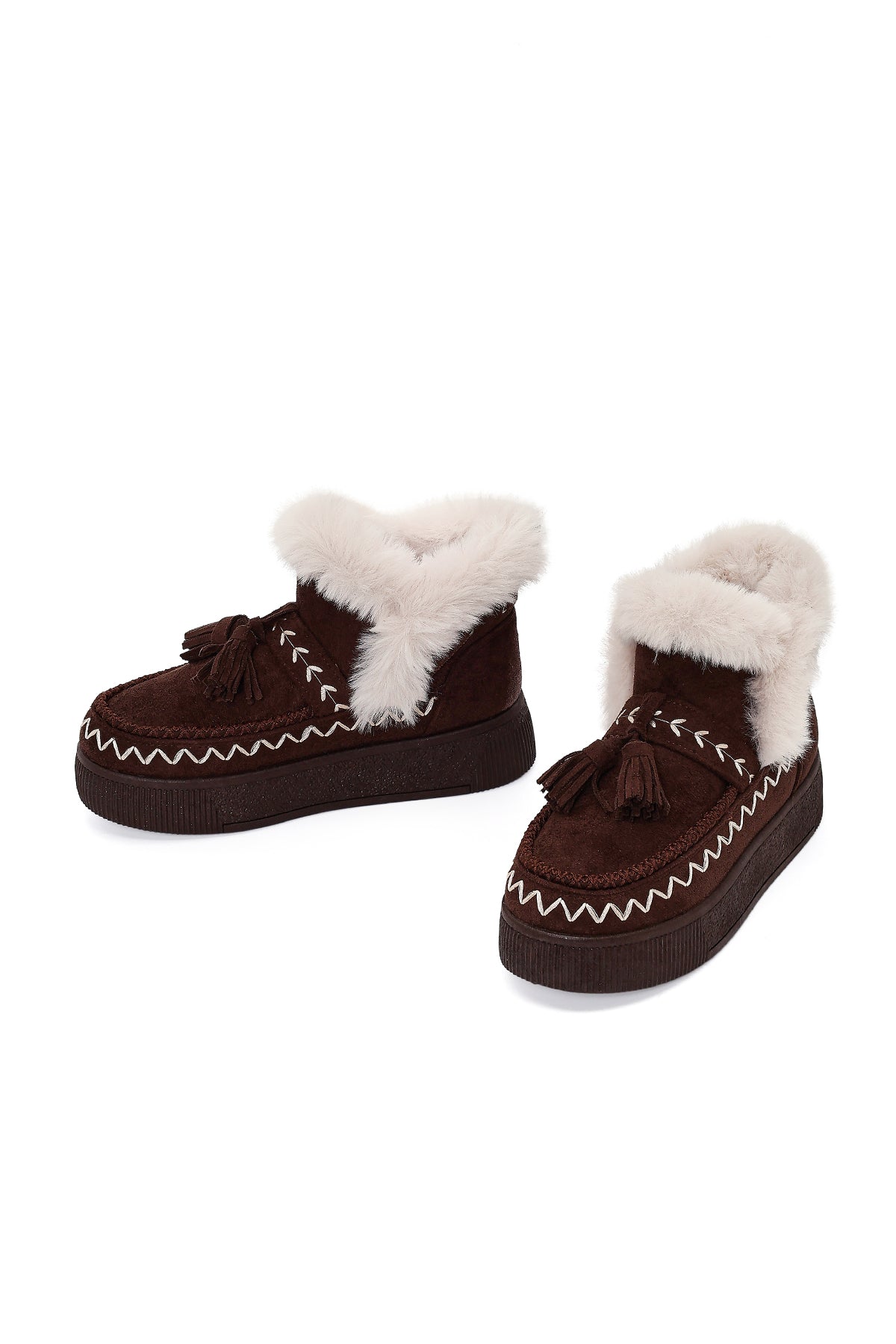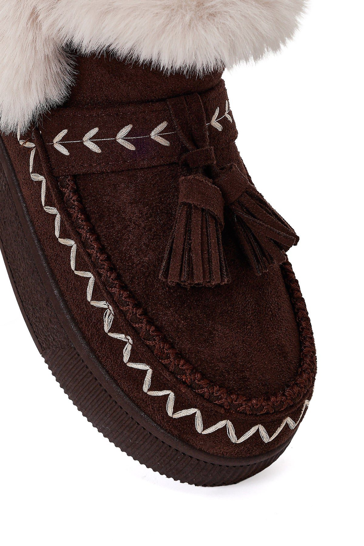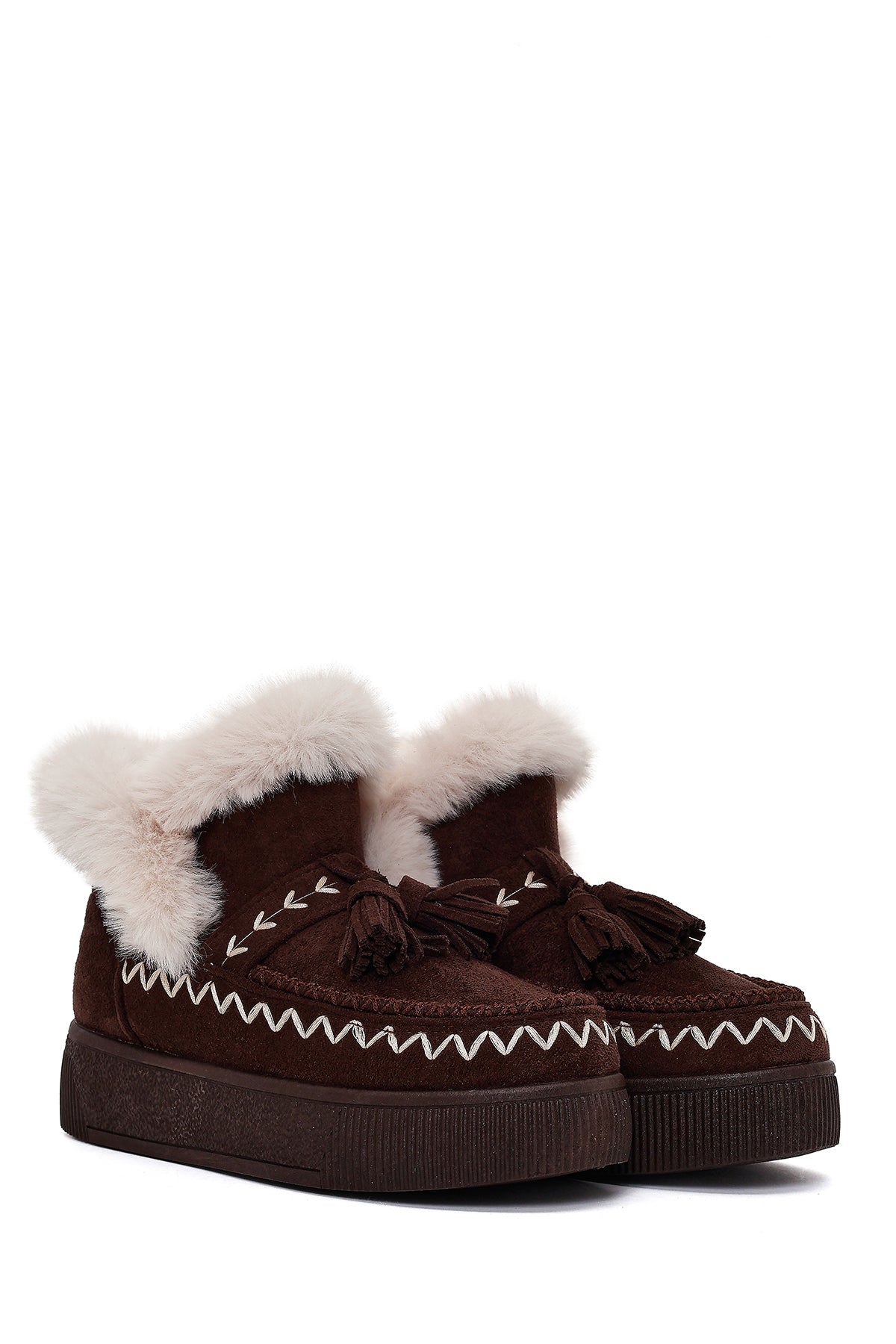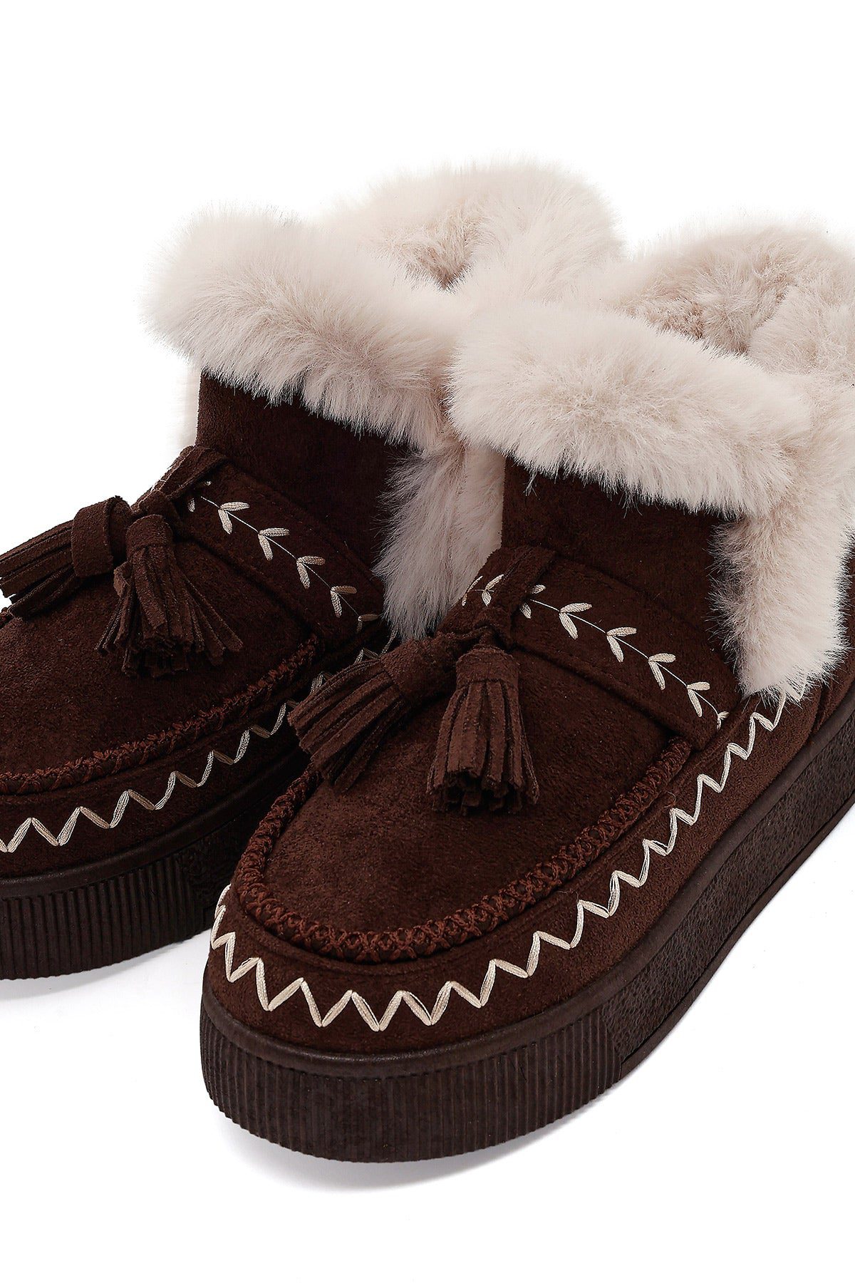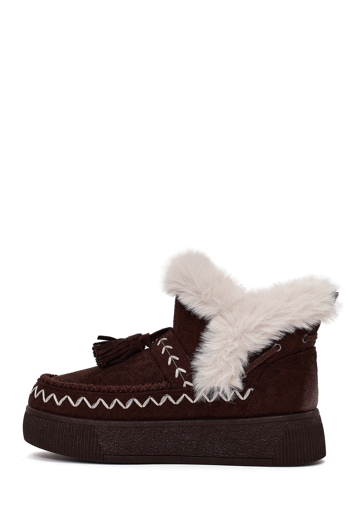 Kadın Kahverengi Kalın Tabanlı Püsküllü Süet Teddy Bot