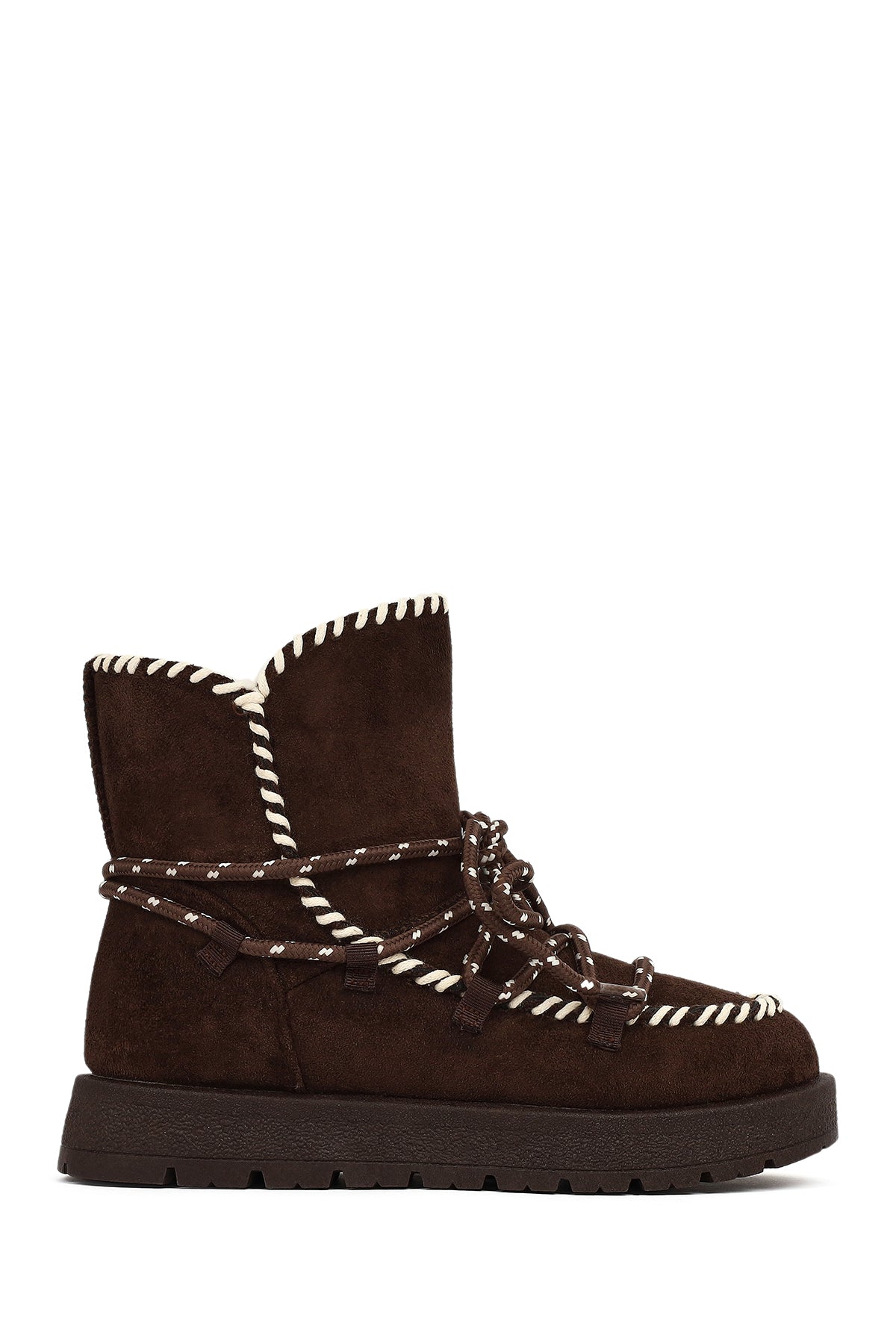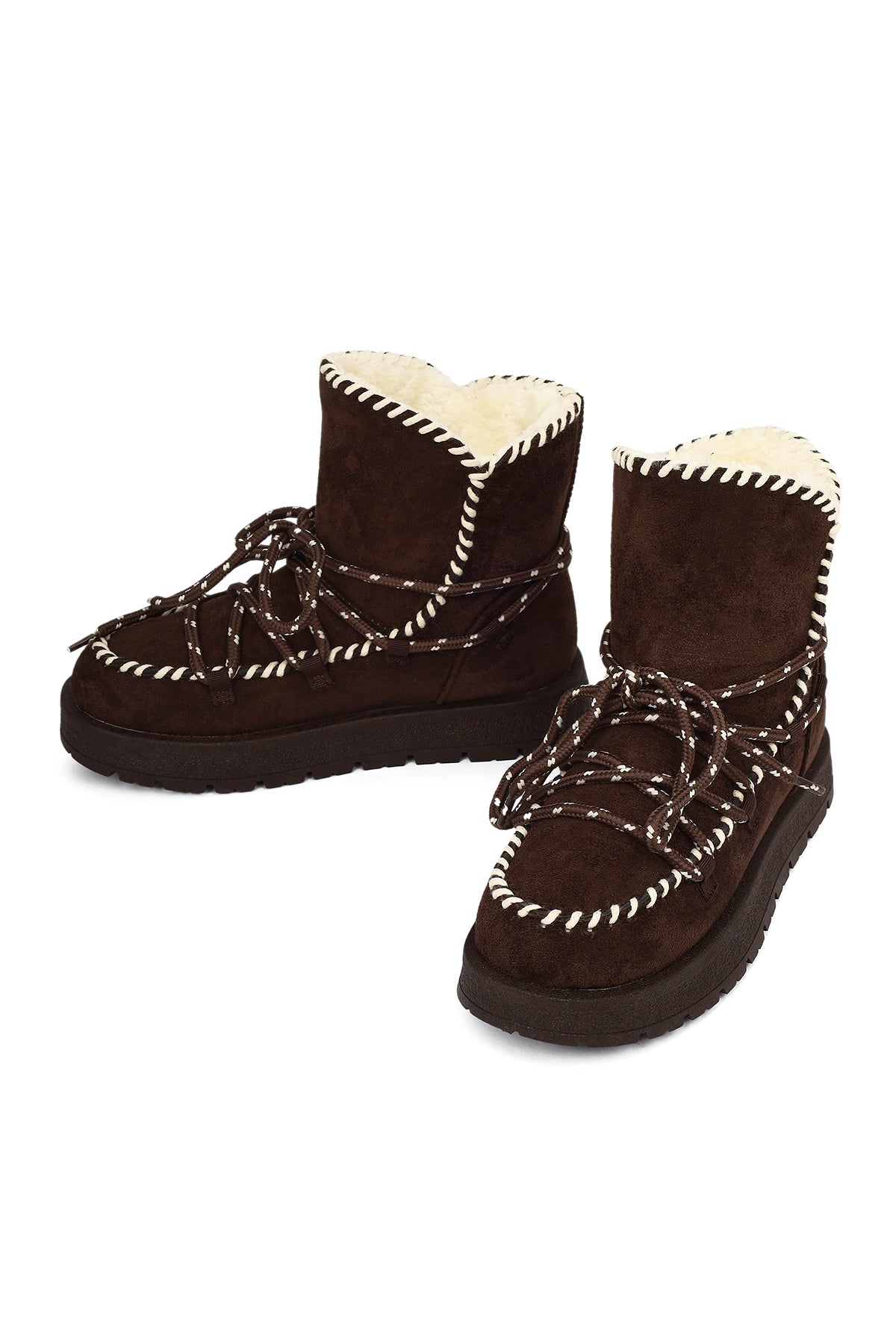Kadın Kahverengi Bağcıklı Kalın Tabanlı Süet Teddy Bot
