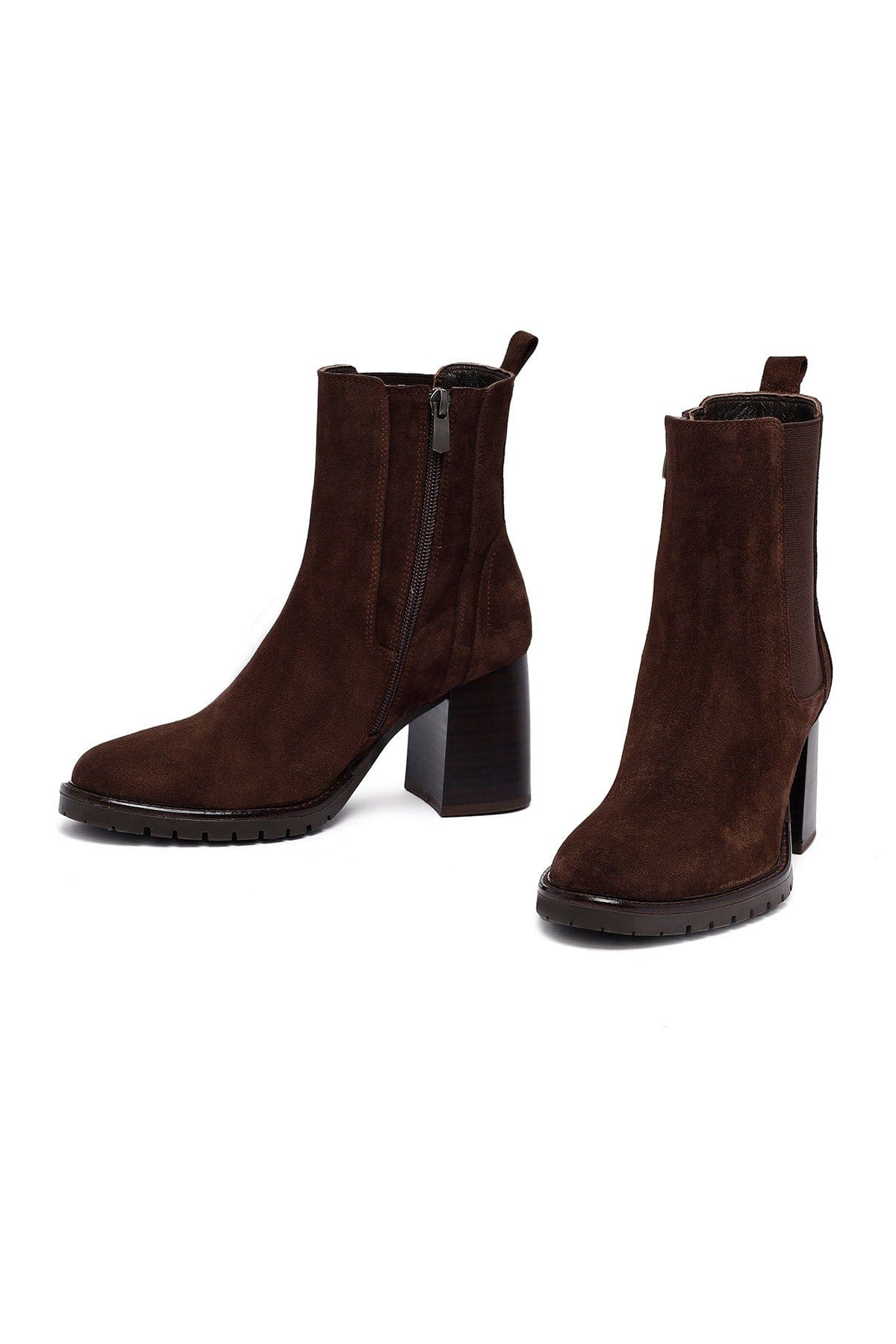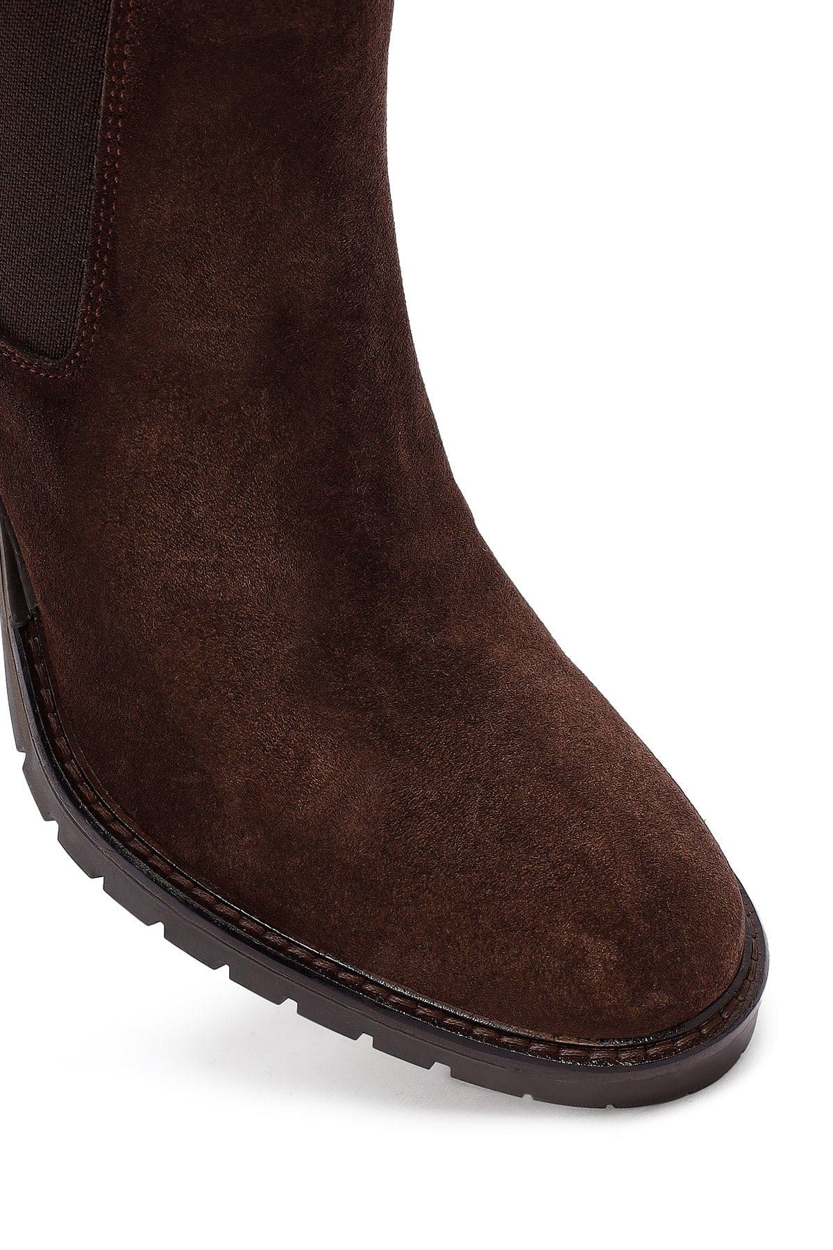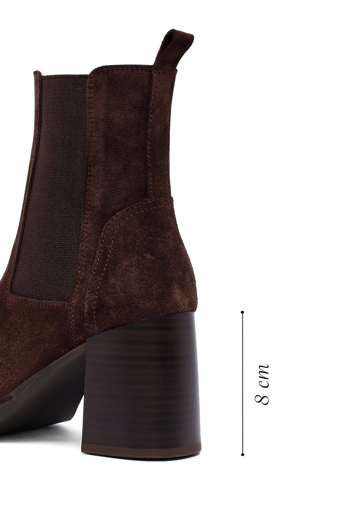 Kadın Kahverengi Kalın Topuklu Süet Deri Bot