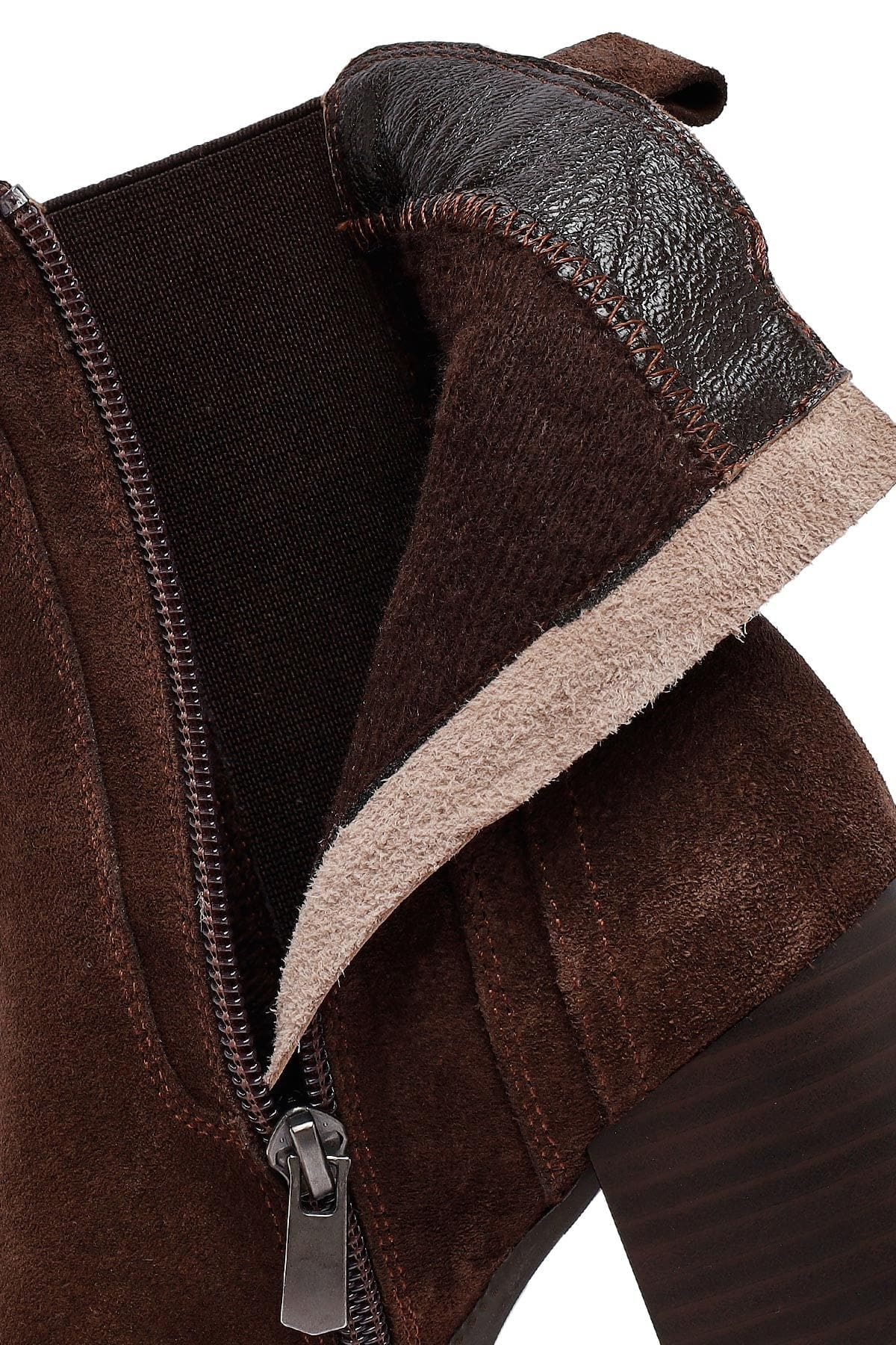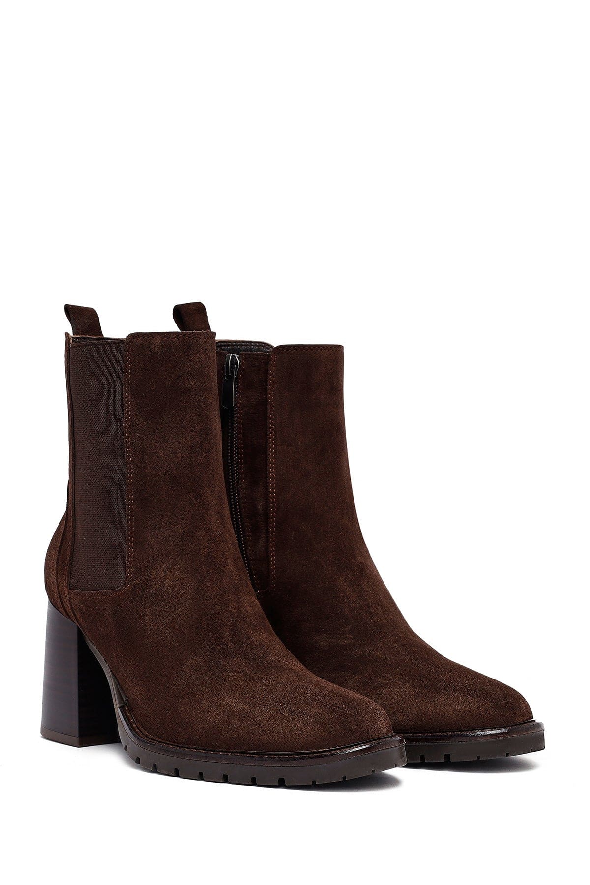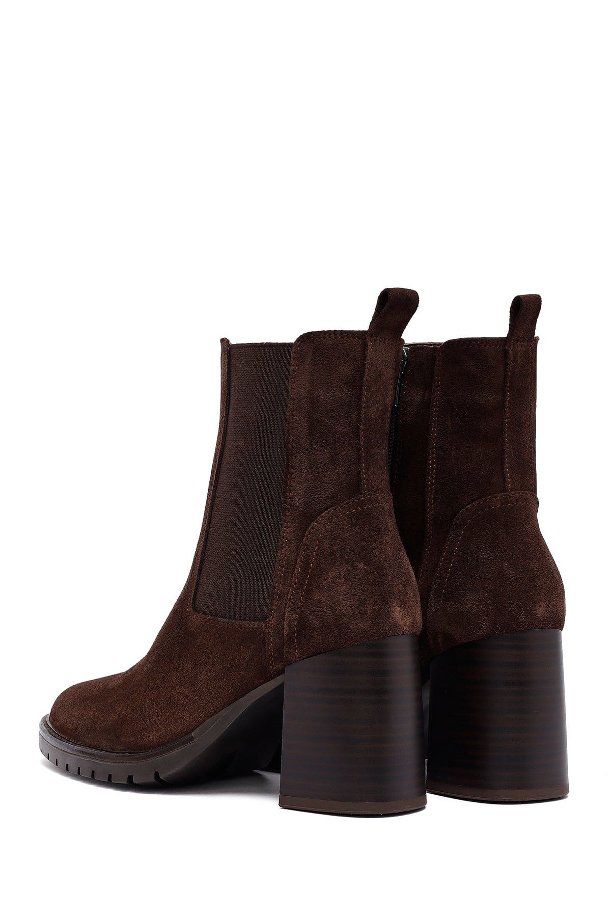 Kadın Kahverengi Kalın Topuklu Süet Deri Bot