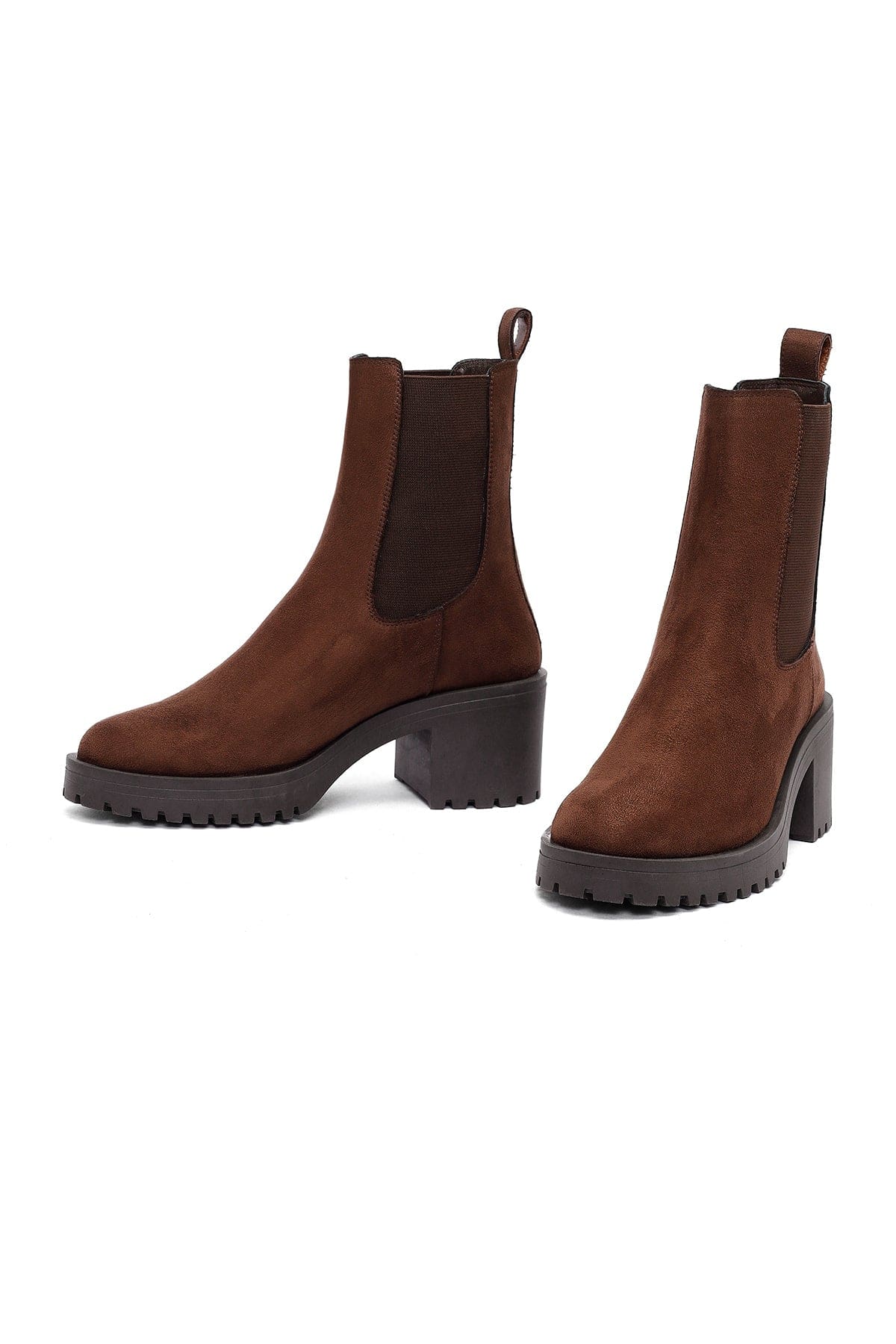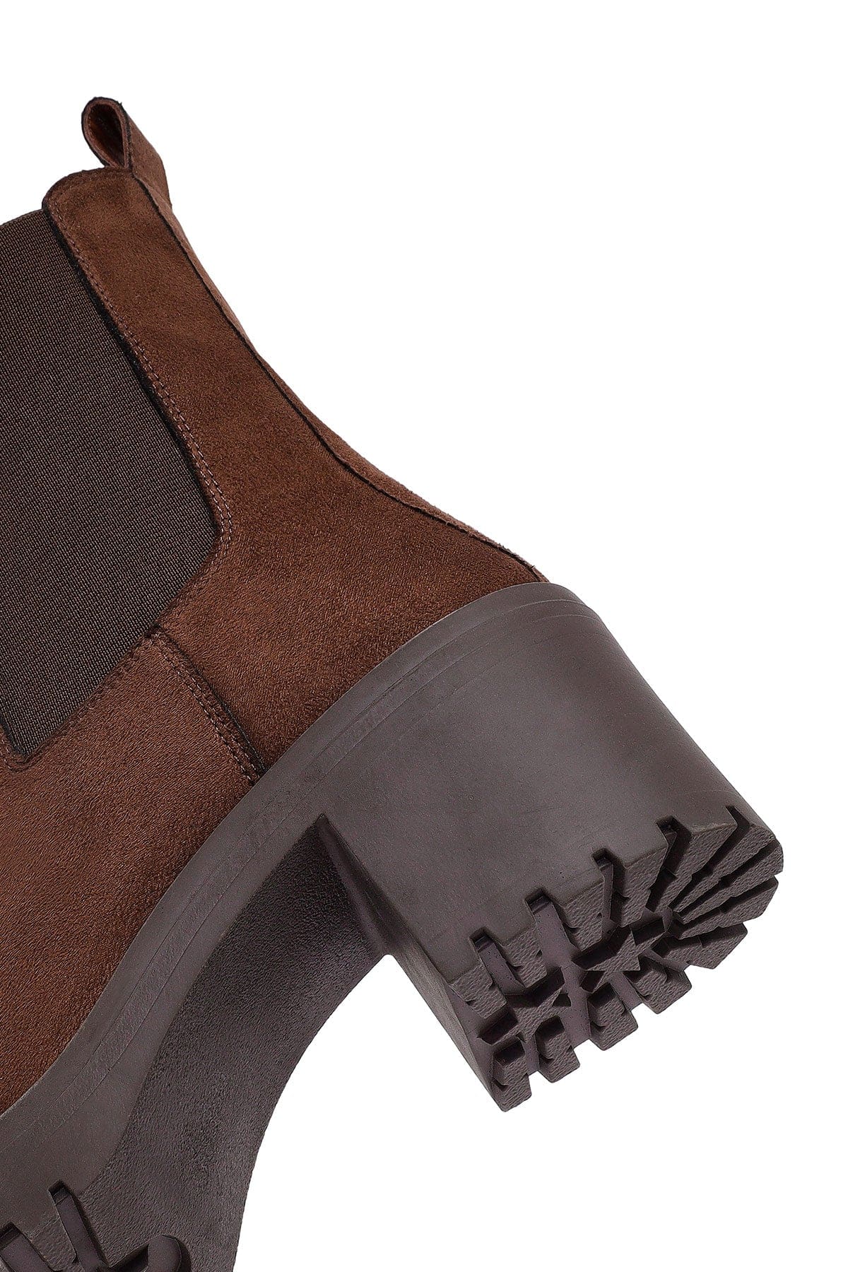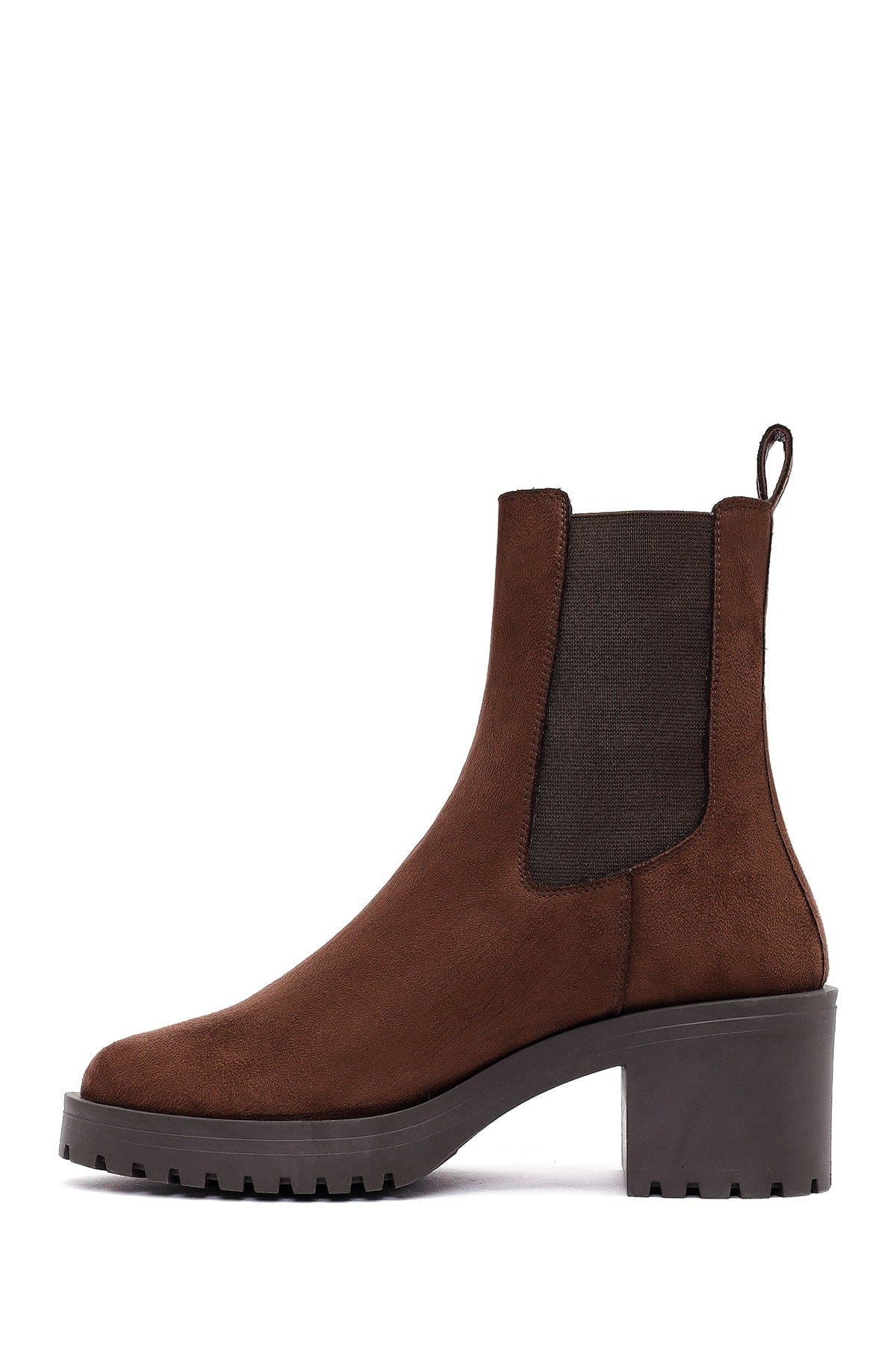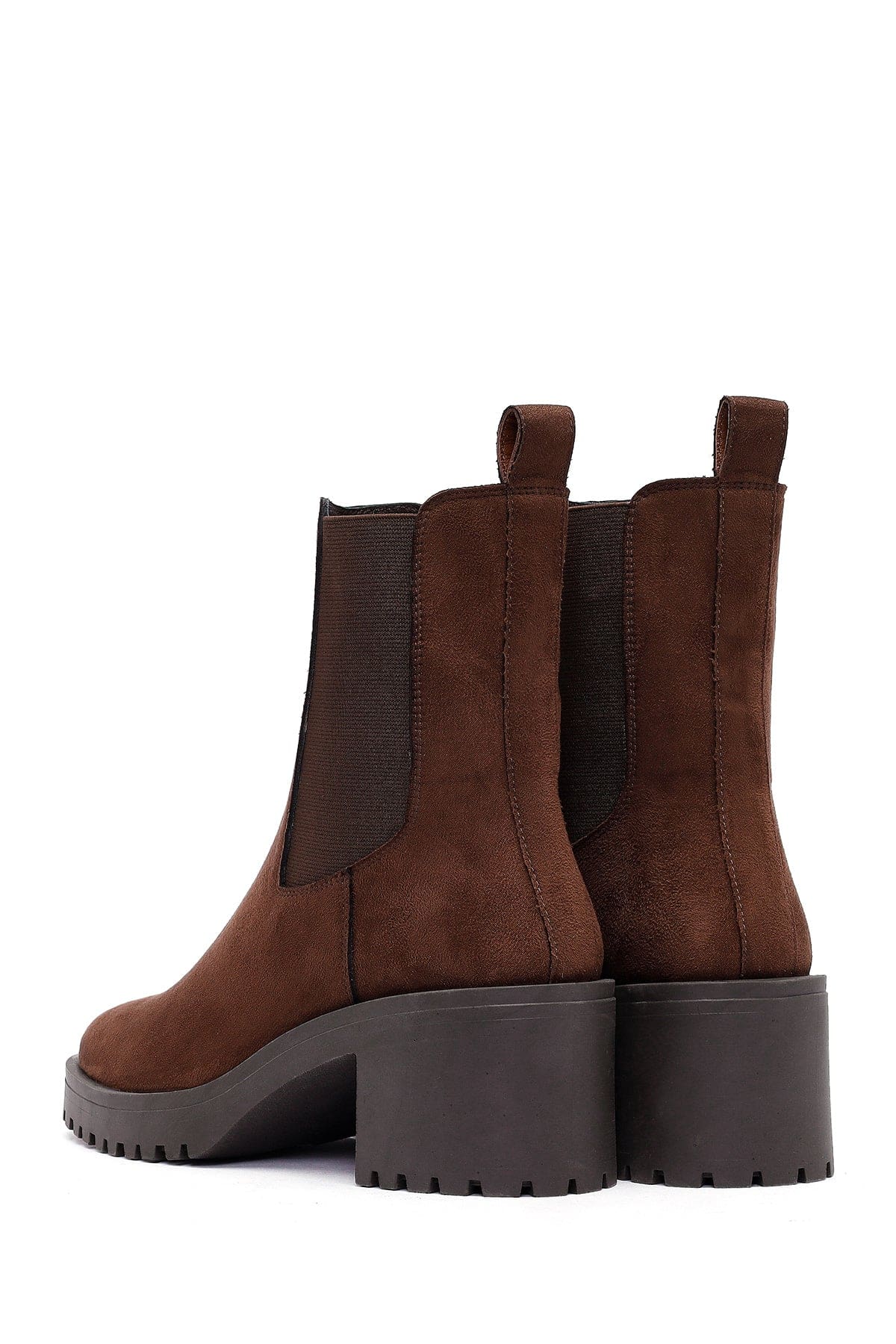 Kadın Kahverengi Kalın Topuklu Süet Chelsea Bot