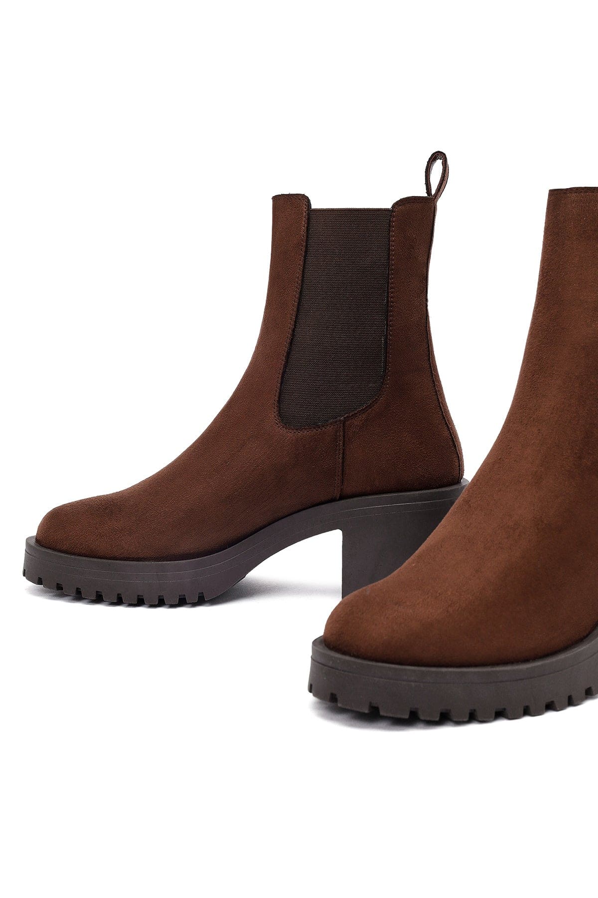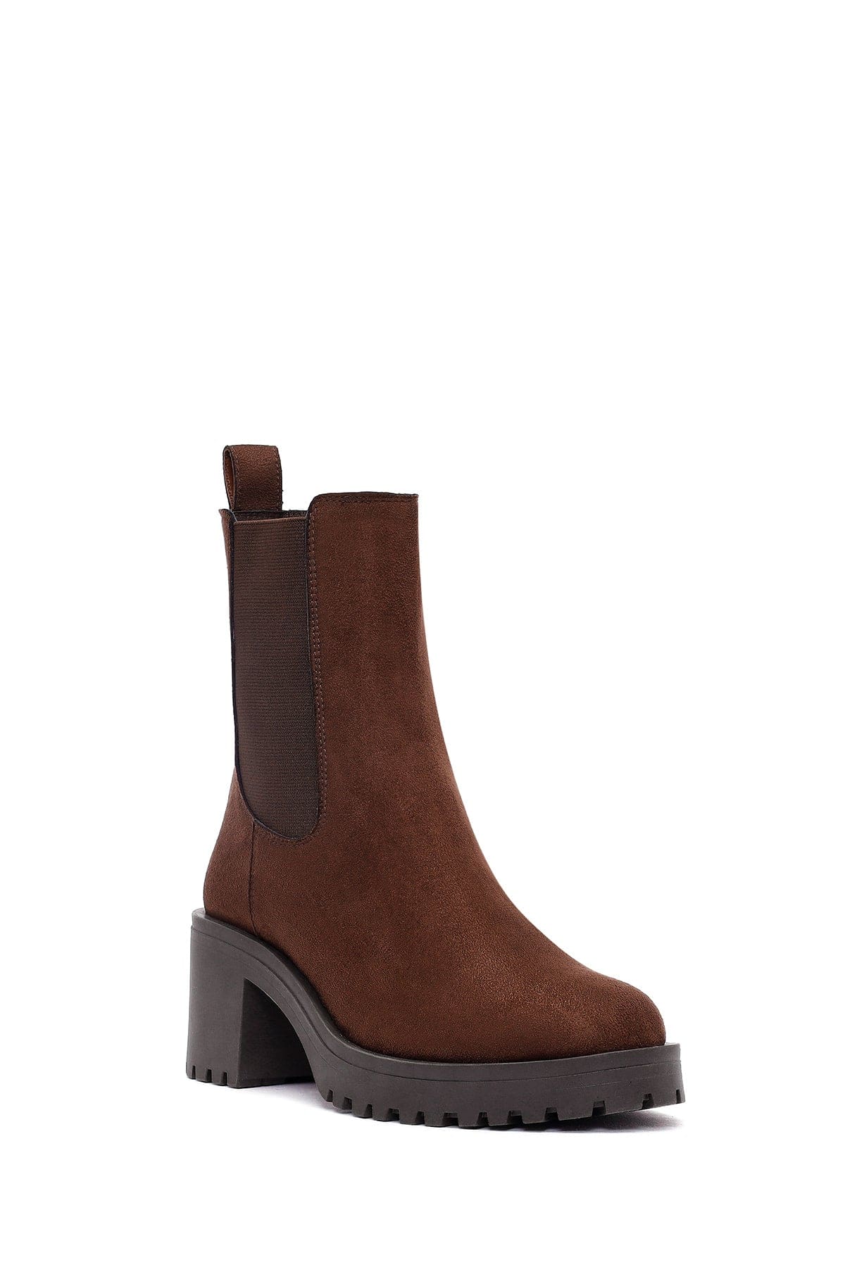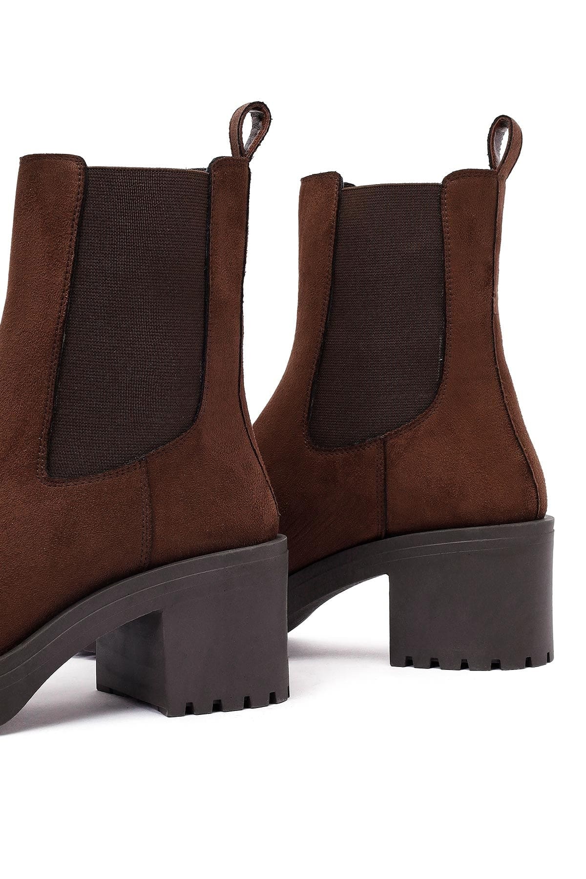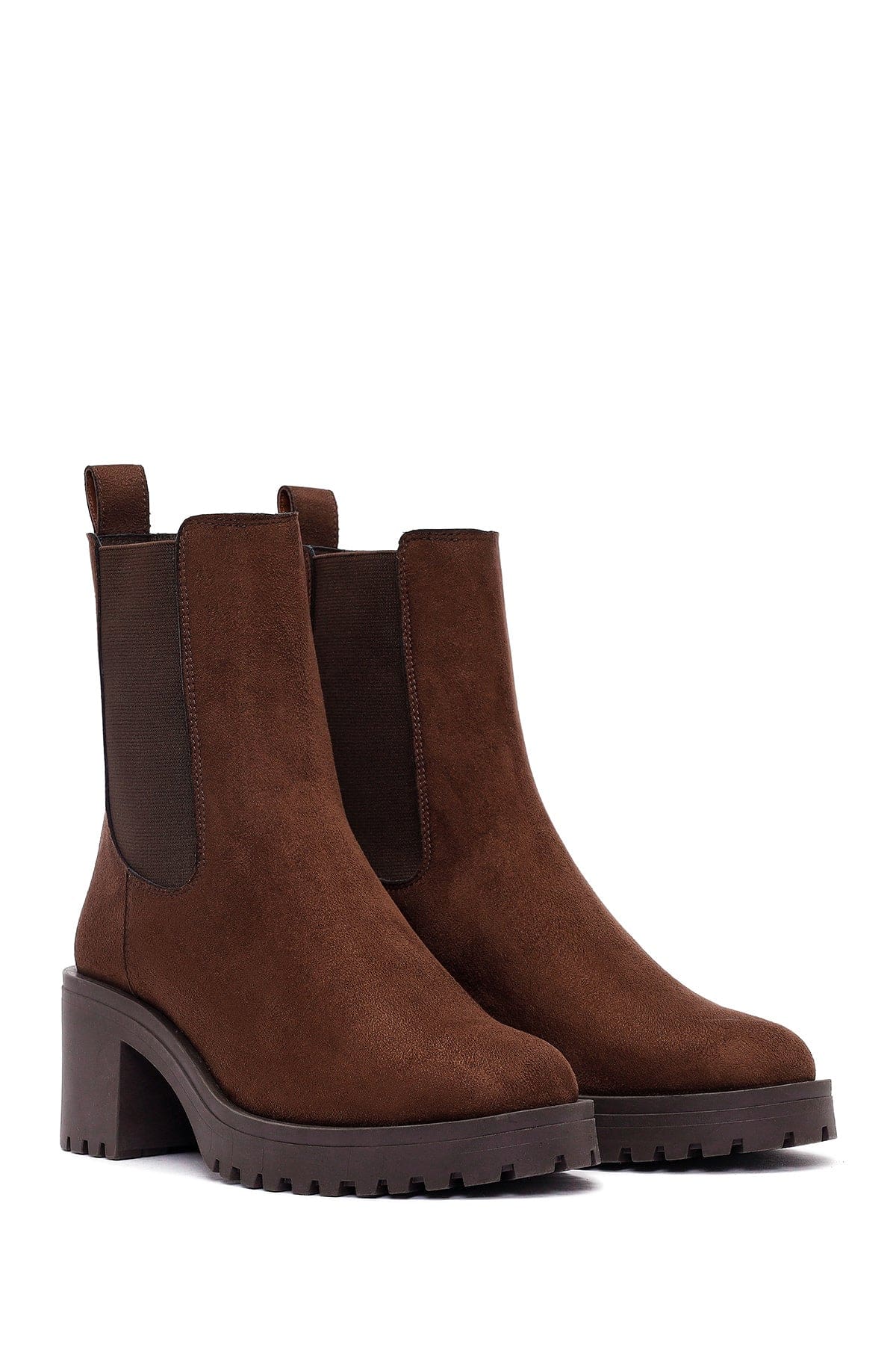 Kadın Kahverengi Kalın Topuklu Süet Chelsea Bot
