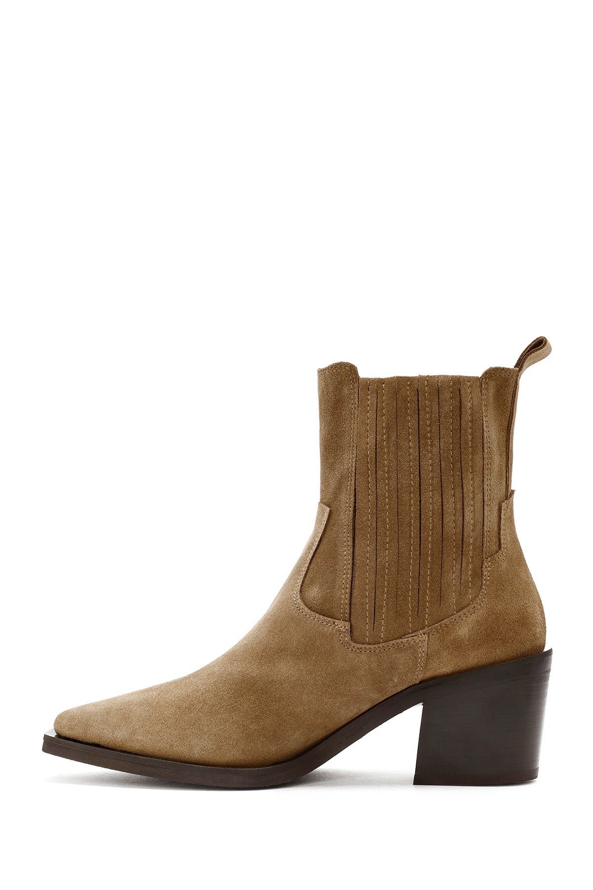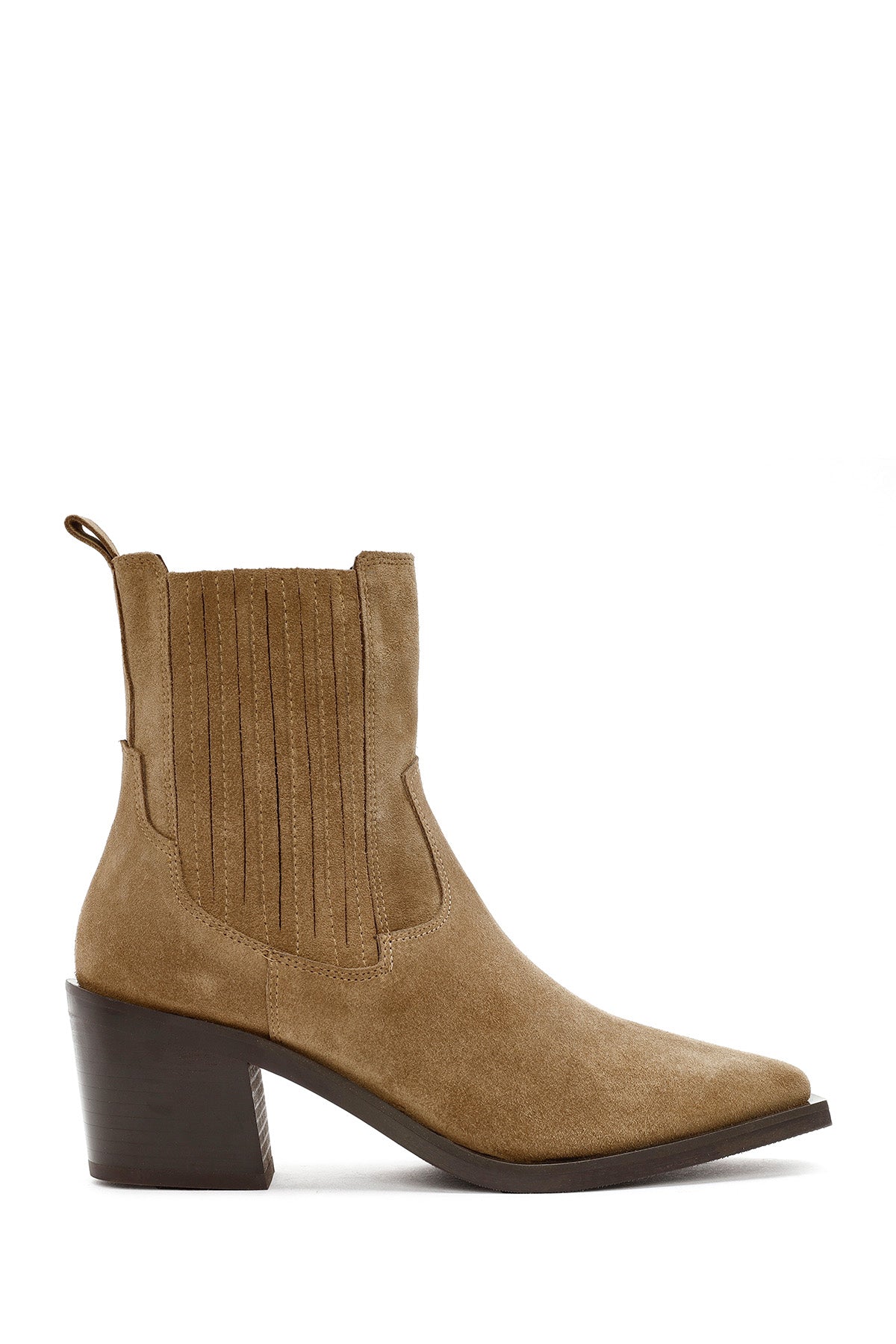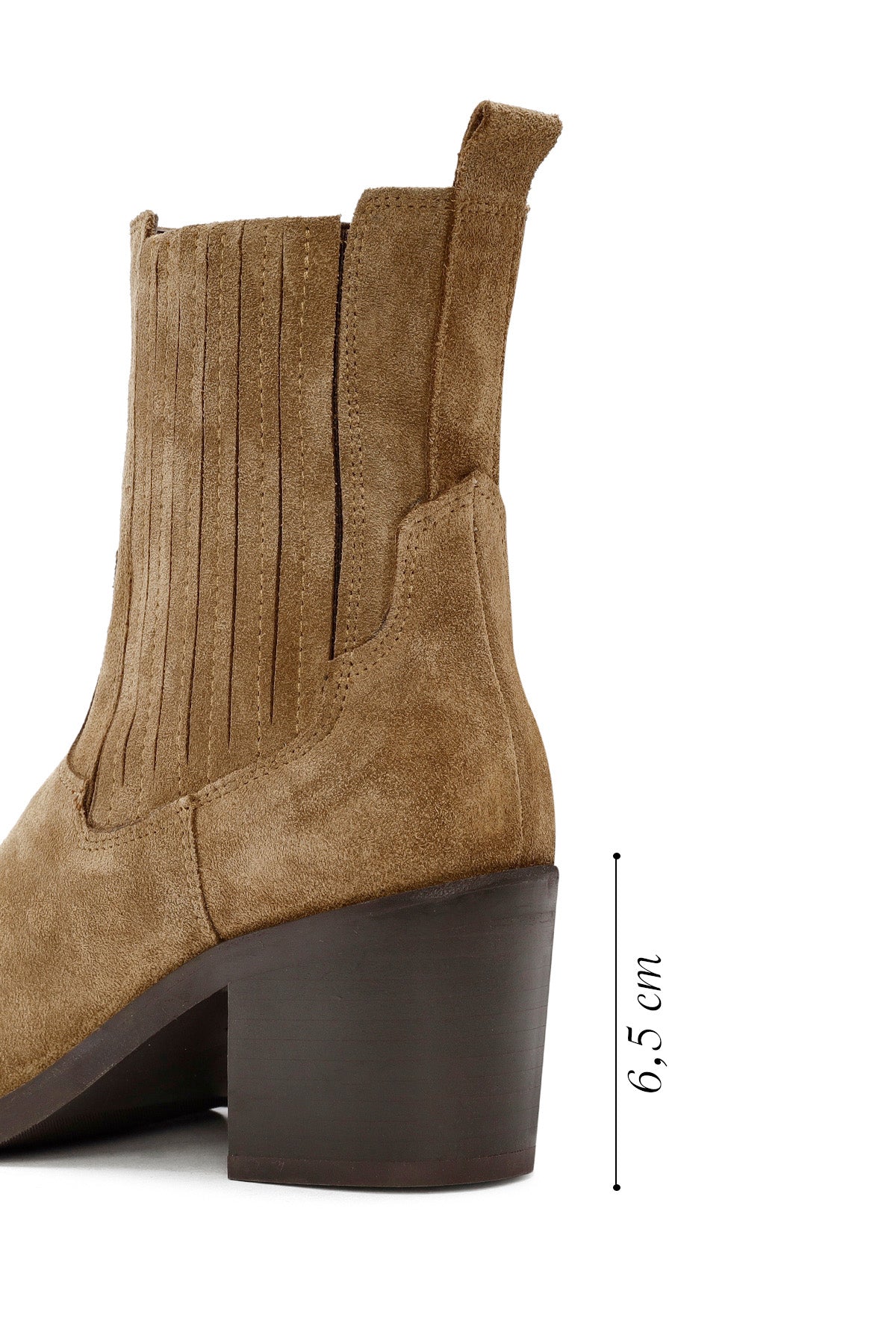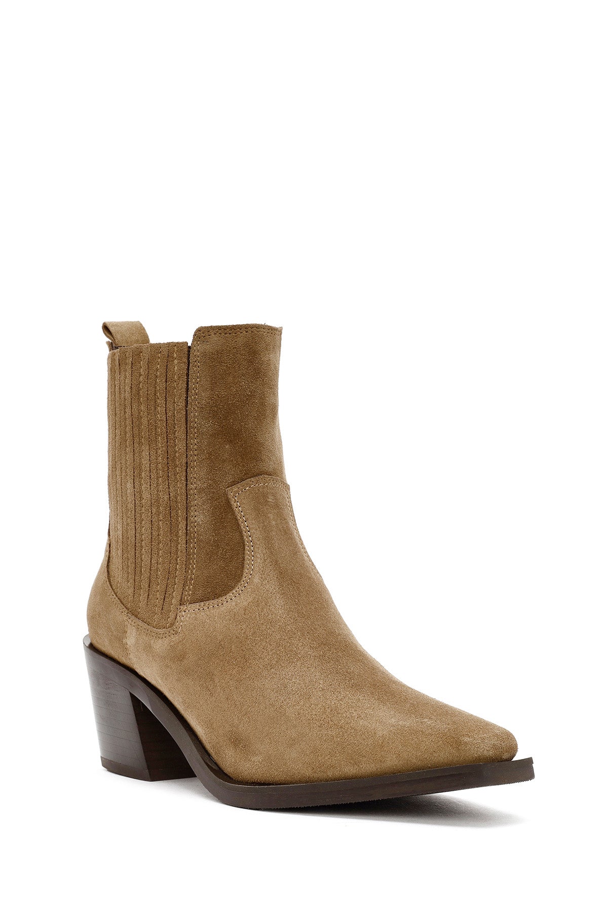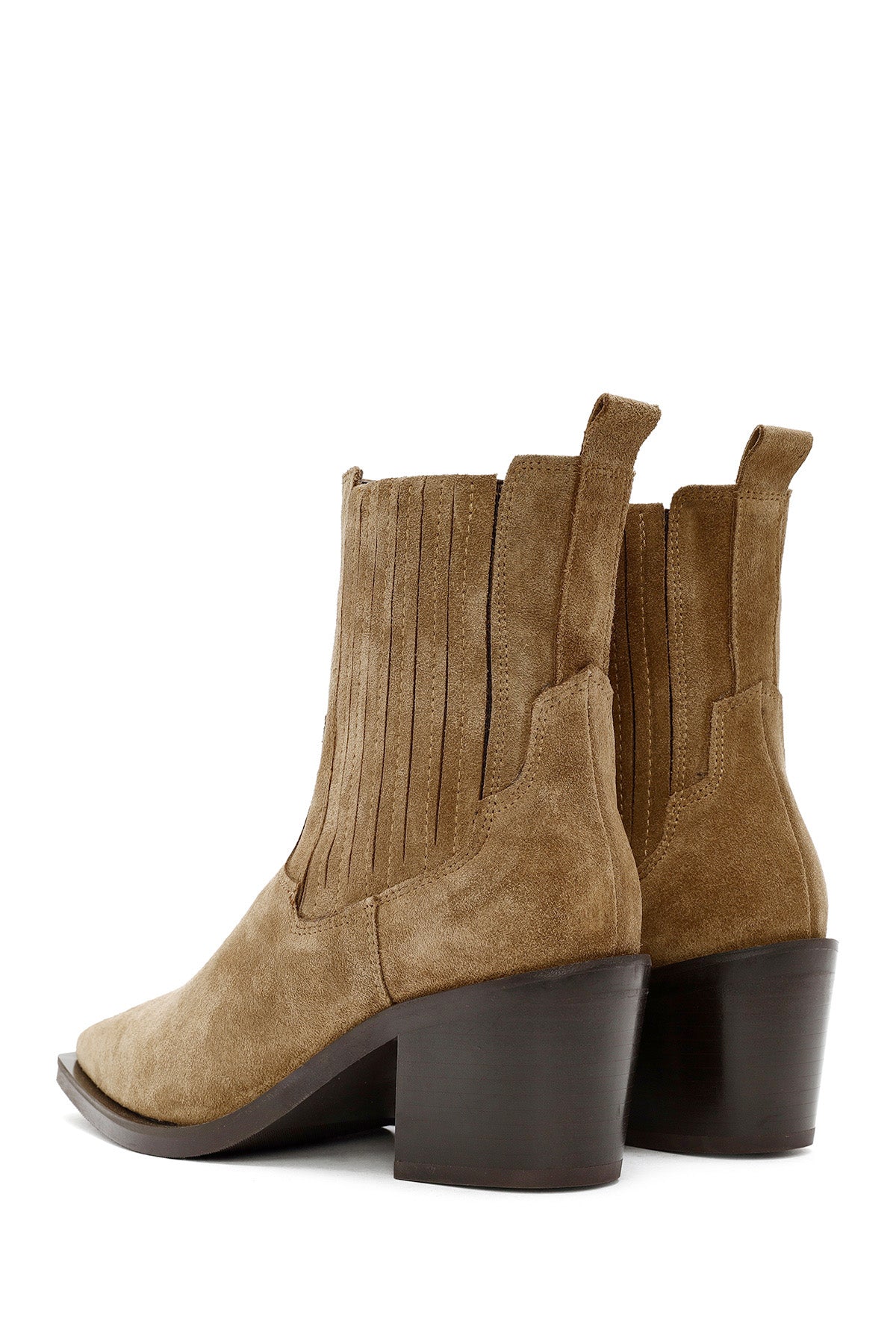 Kadın Kahverengi Kalın Topuklu Süet Deri Kovboy Bot