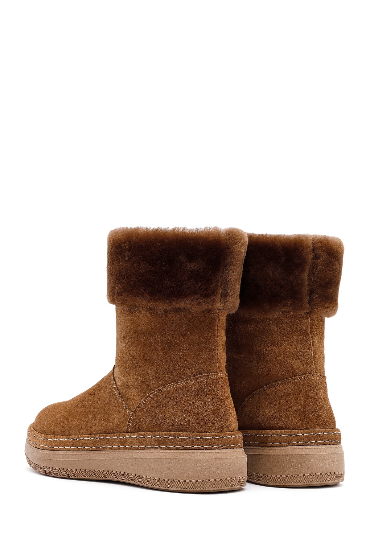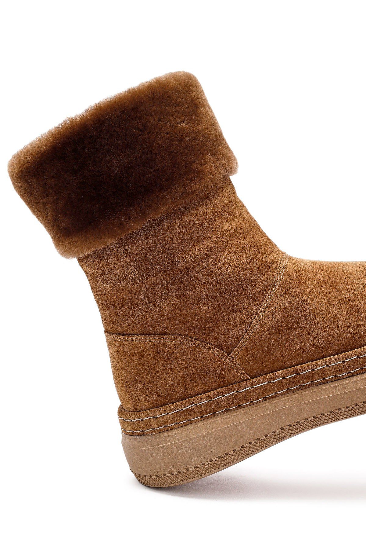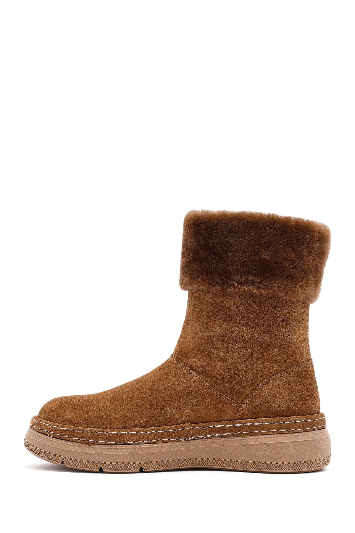 Kadın Taba Kalın Tabanlı Kürk Detaylı Süet Deri Bot