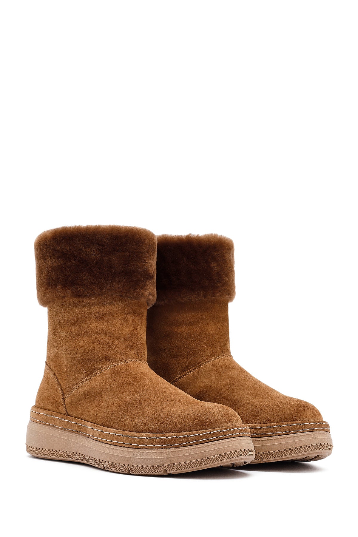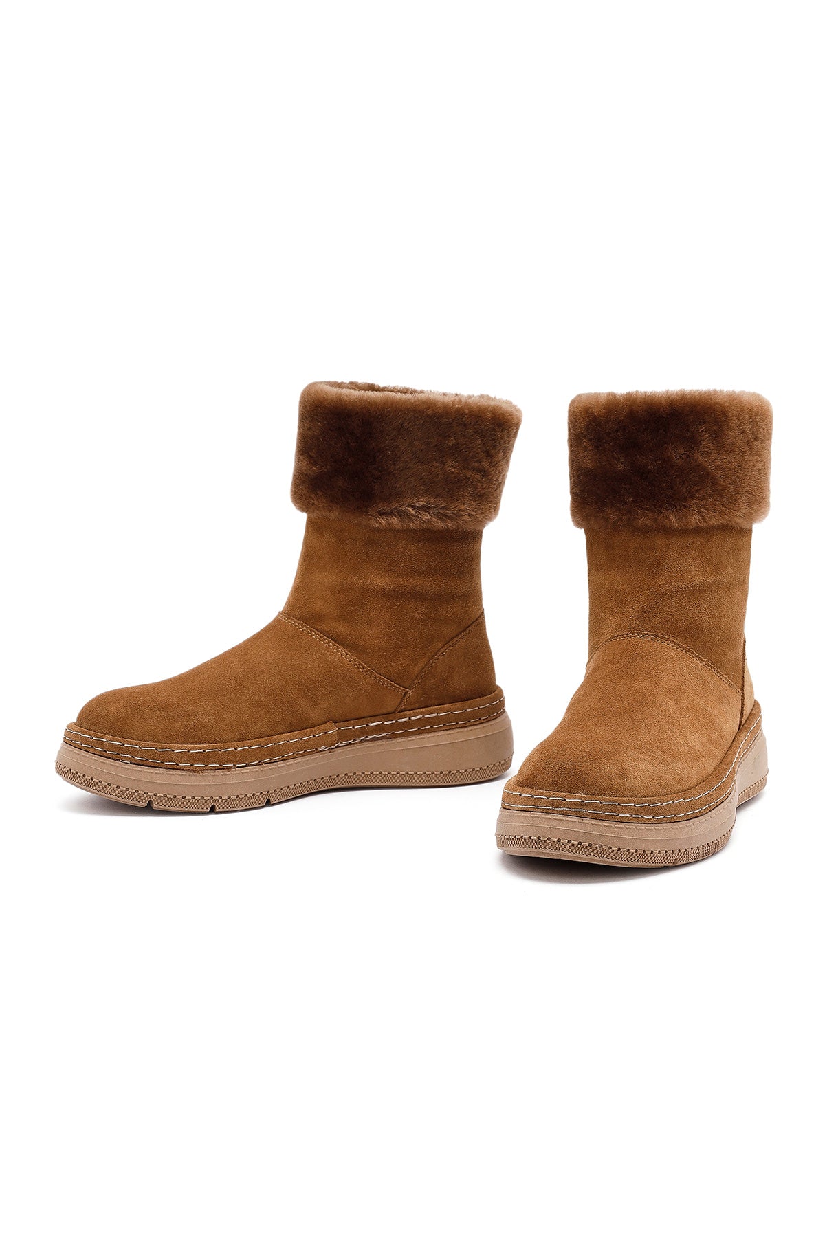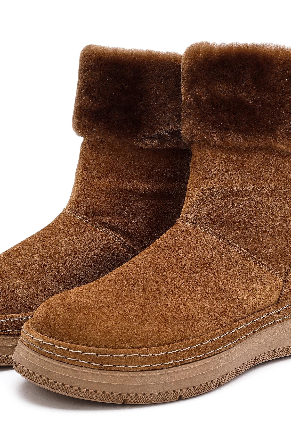 Kadın Taba Kalın Tabanlı Kürk Detaylı Süet Deri Bot