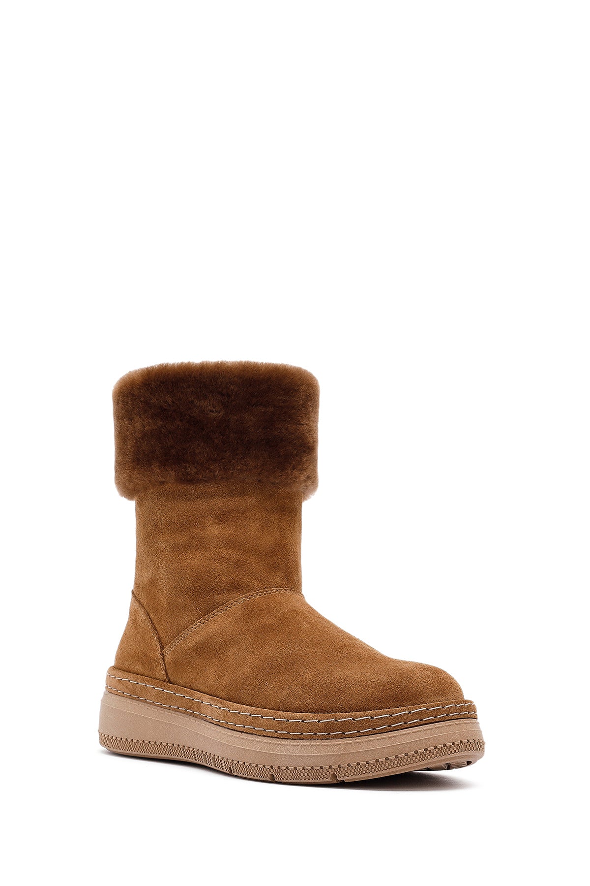 بوت جیر زنانه قهوهای زیره ضخیم خزدار دریمد