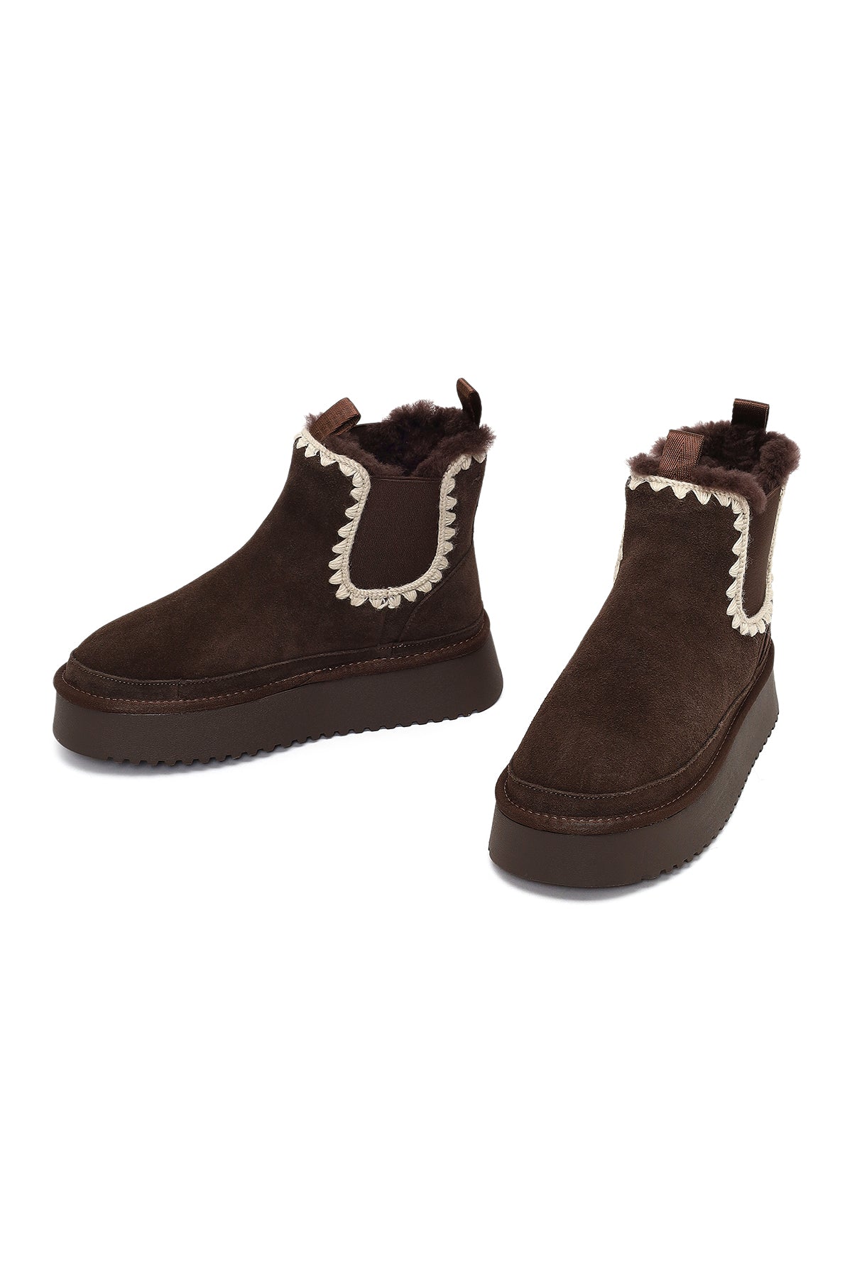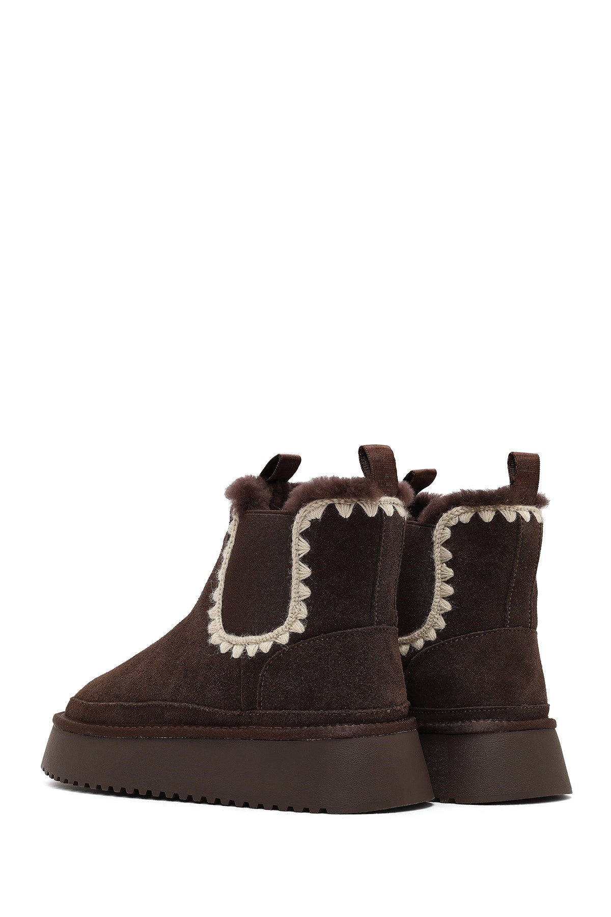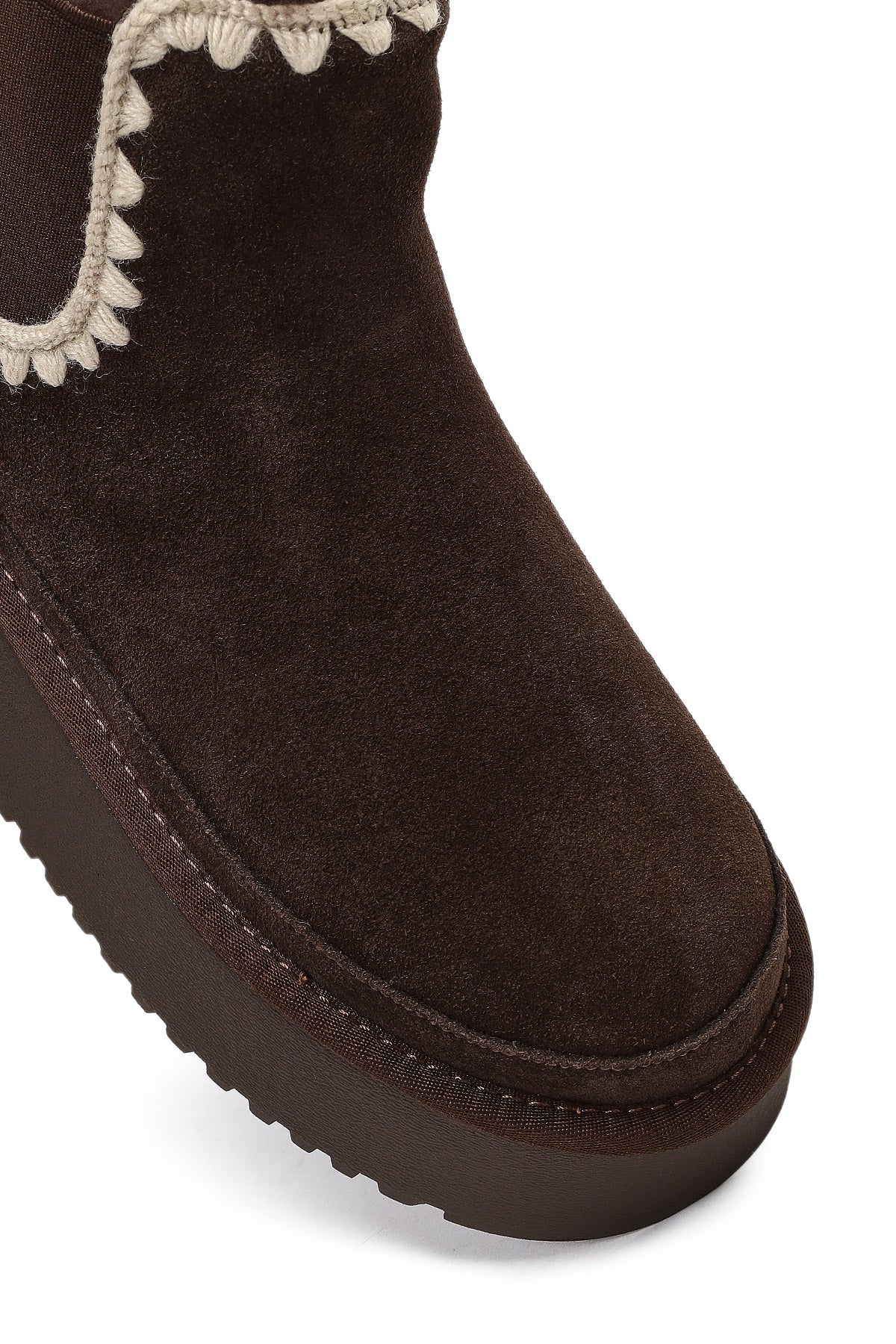 Kadın Kahverengi Kalın Tabanlı Desenli Süet Deri Teddy Bot