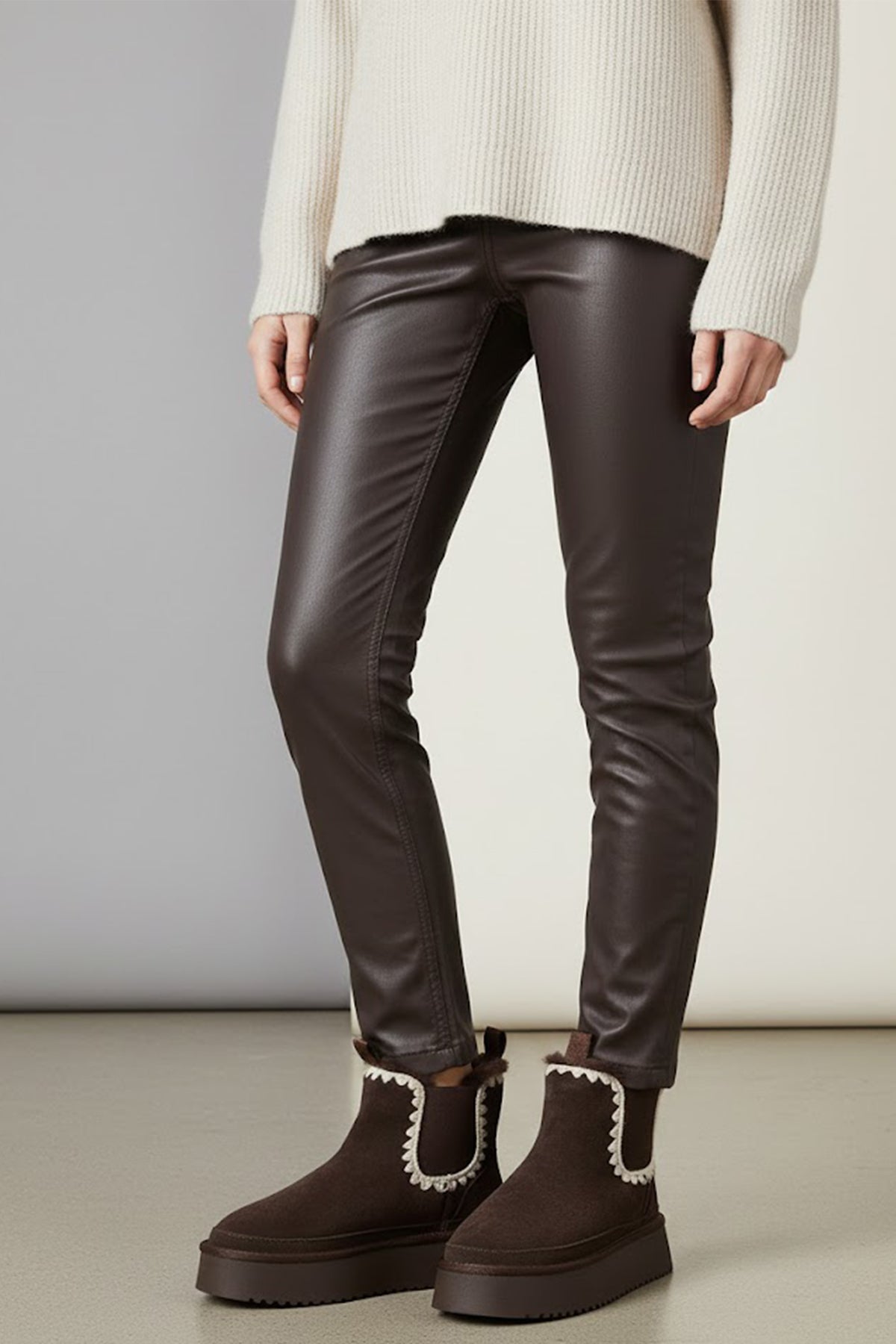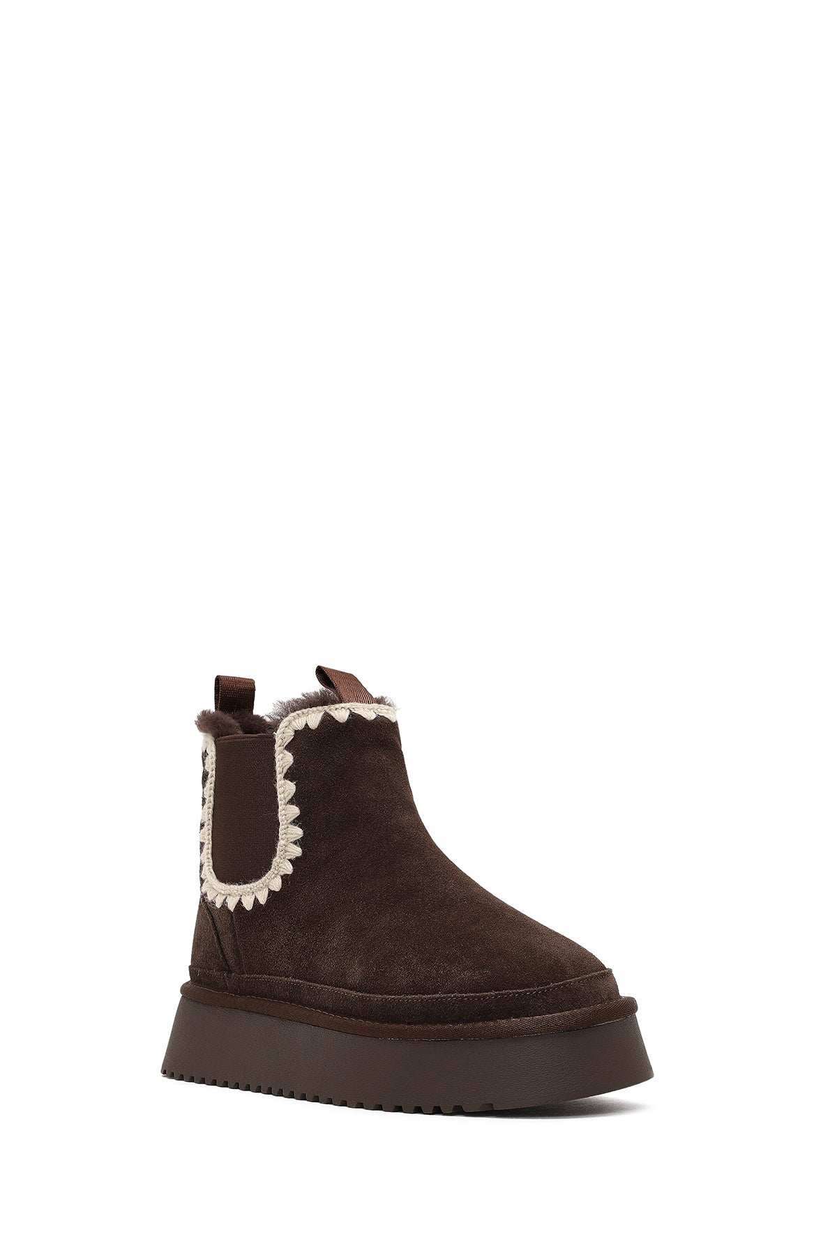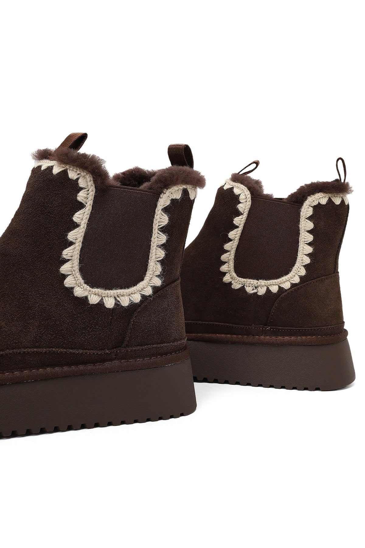 Kadın Kahverengi Kalın Tabanlı Desenli Süet Deri Teddy Bot
