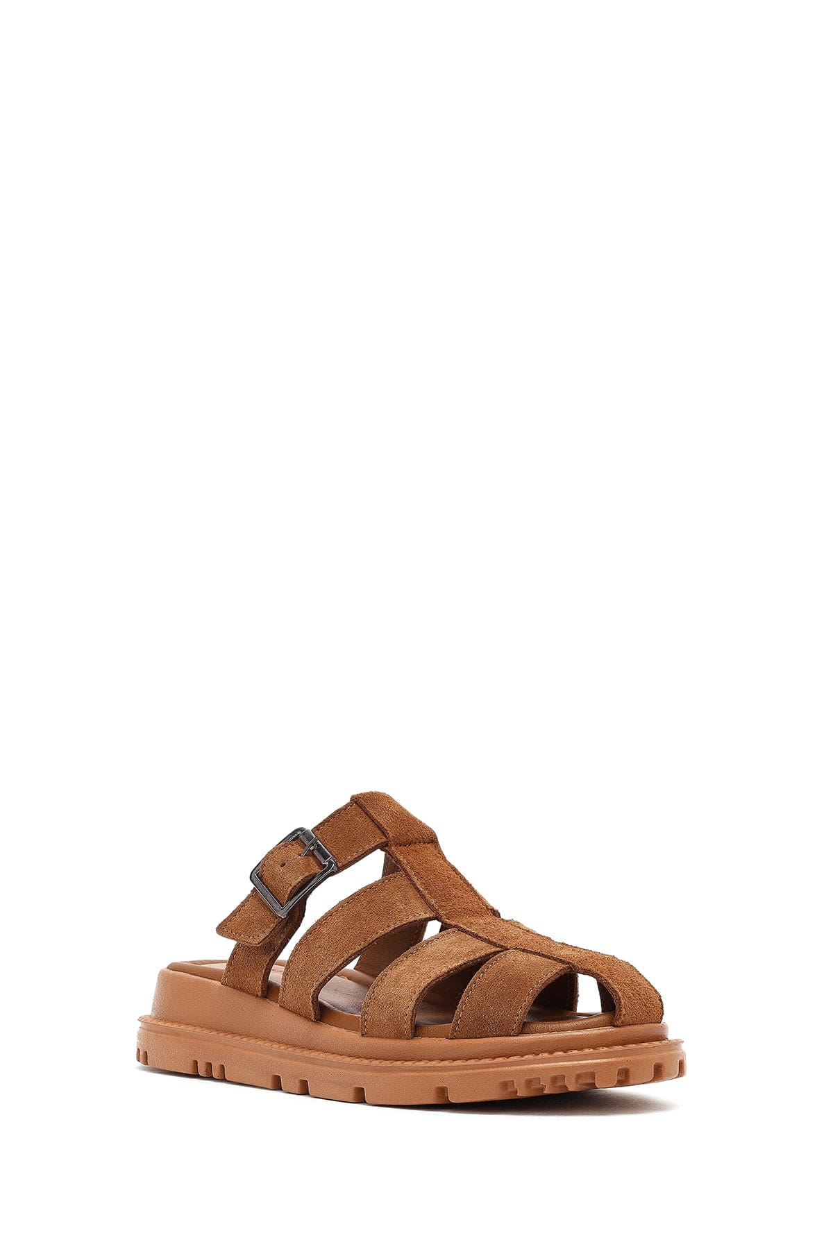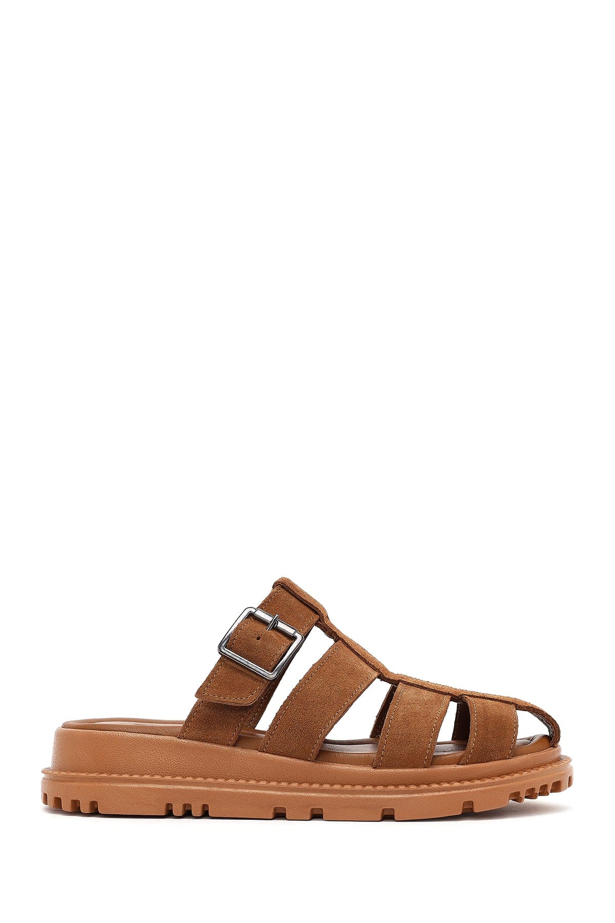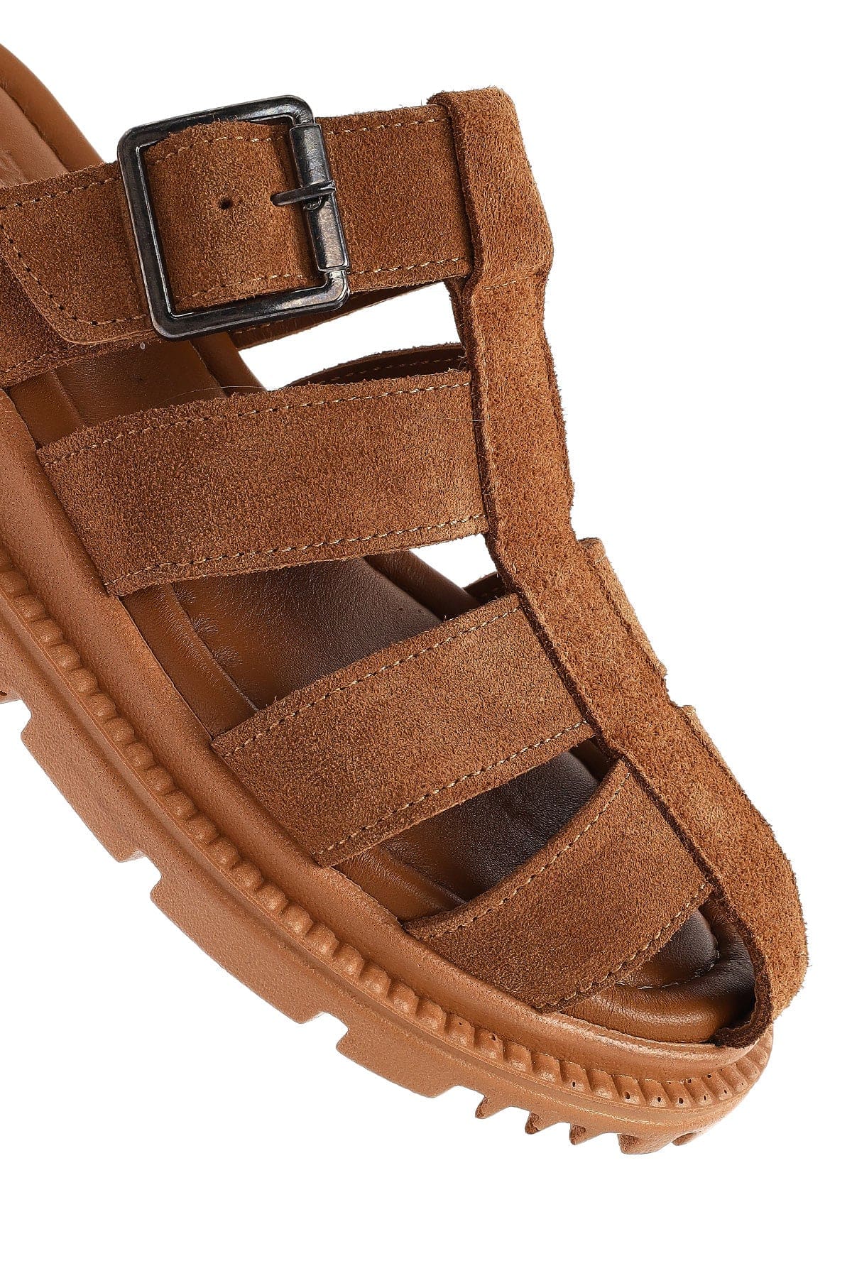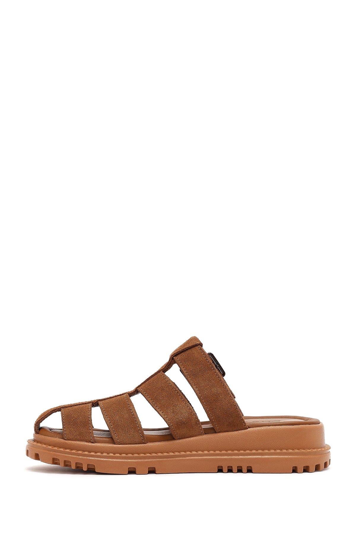 Kadın Taba Kalın Tabanlı Süet Deri Terlik
