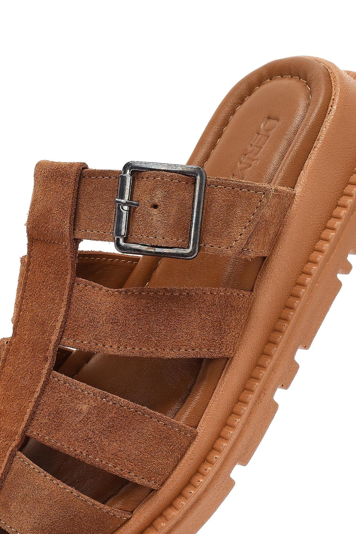 دمپایی زنانه چرم جیر قهوهای ضخیمتنه دری مد