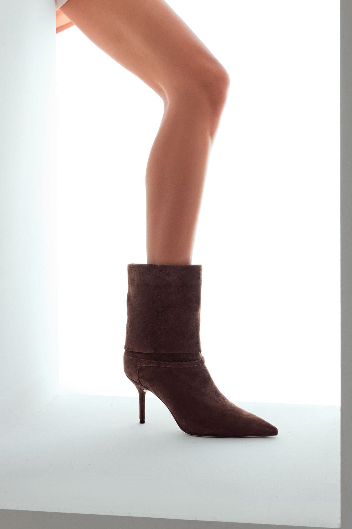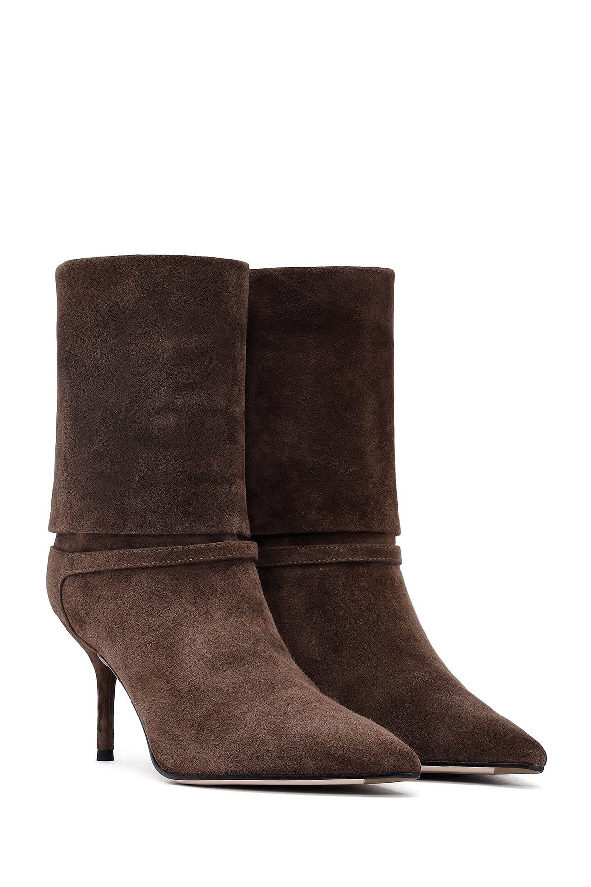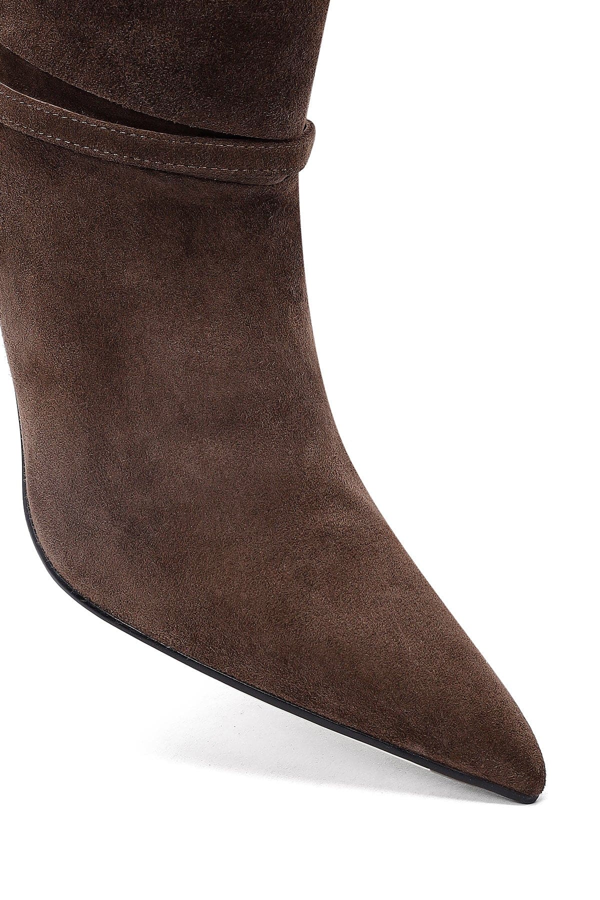 Kadın Kahverengi İnce Topuklu Süet Deri Bot