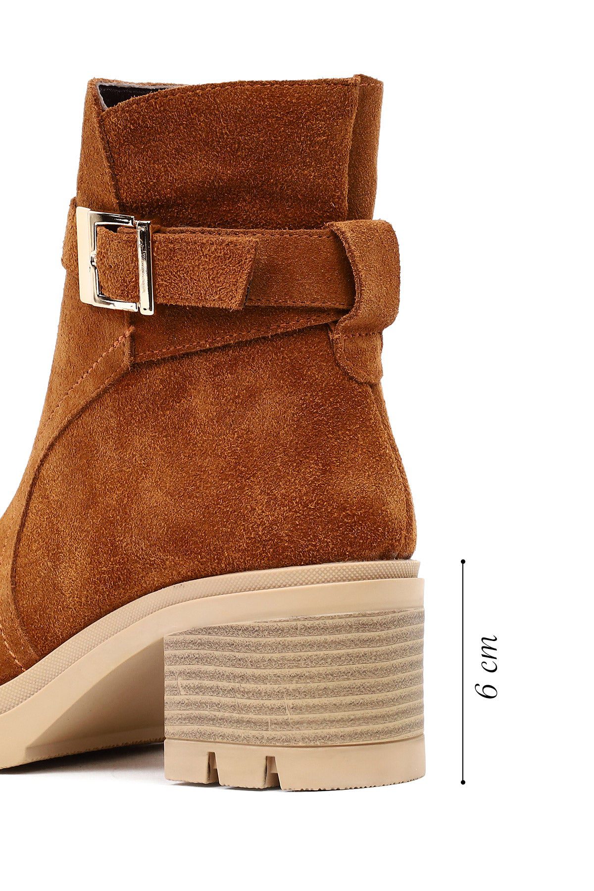 Kadın Taba Kalın Topuklu Fermuarlı Süet Deri Bot
