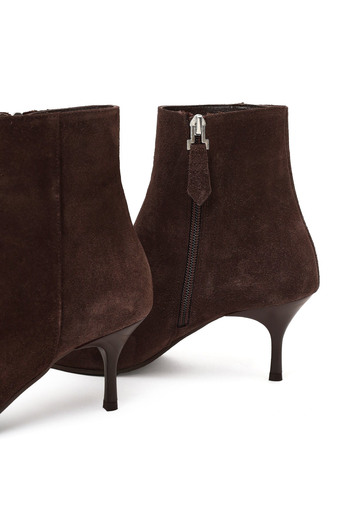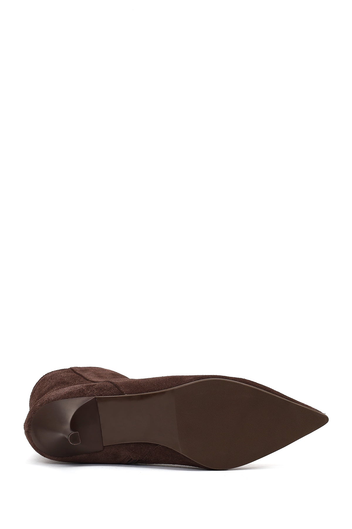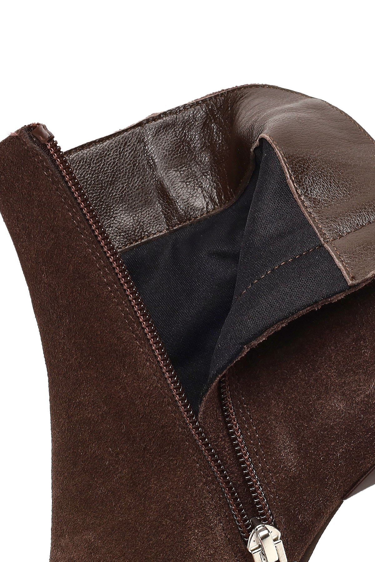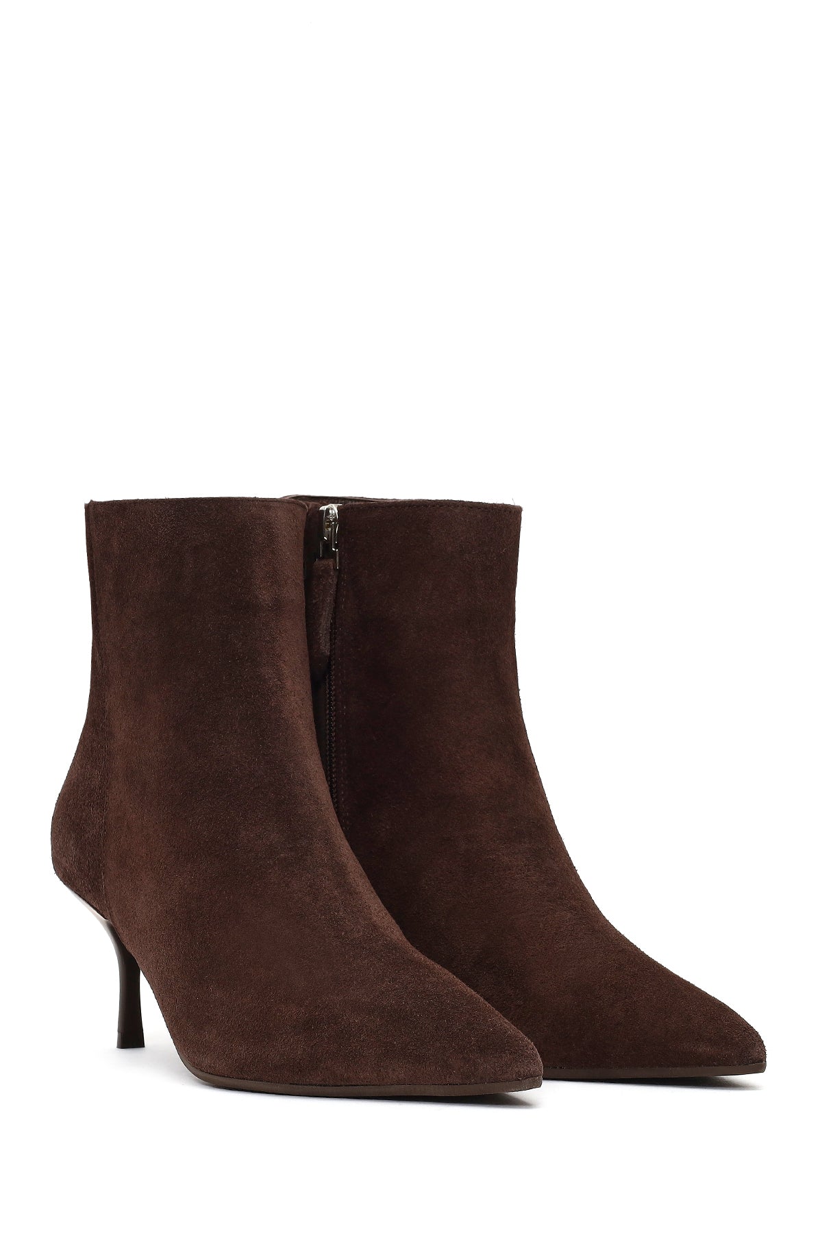 Kadın Kahverengi Fermuarlı İnce Topuklu Süet Deri Bot