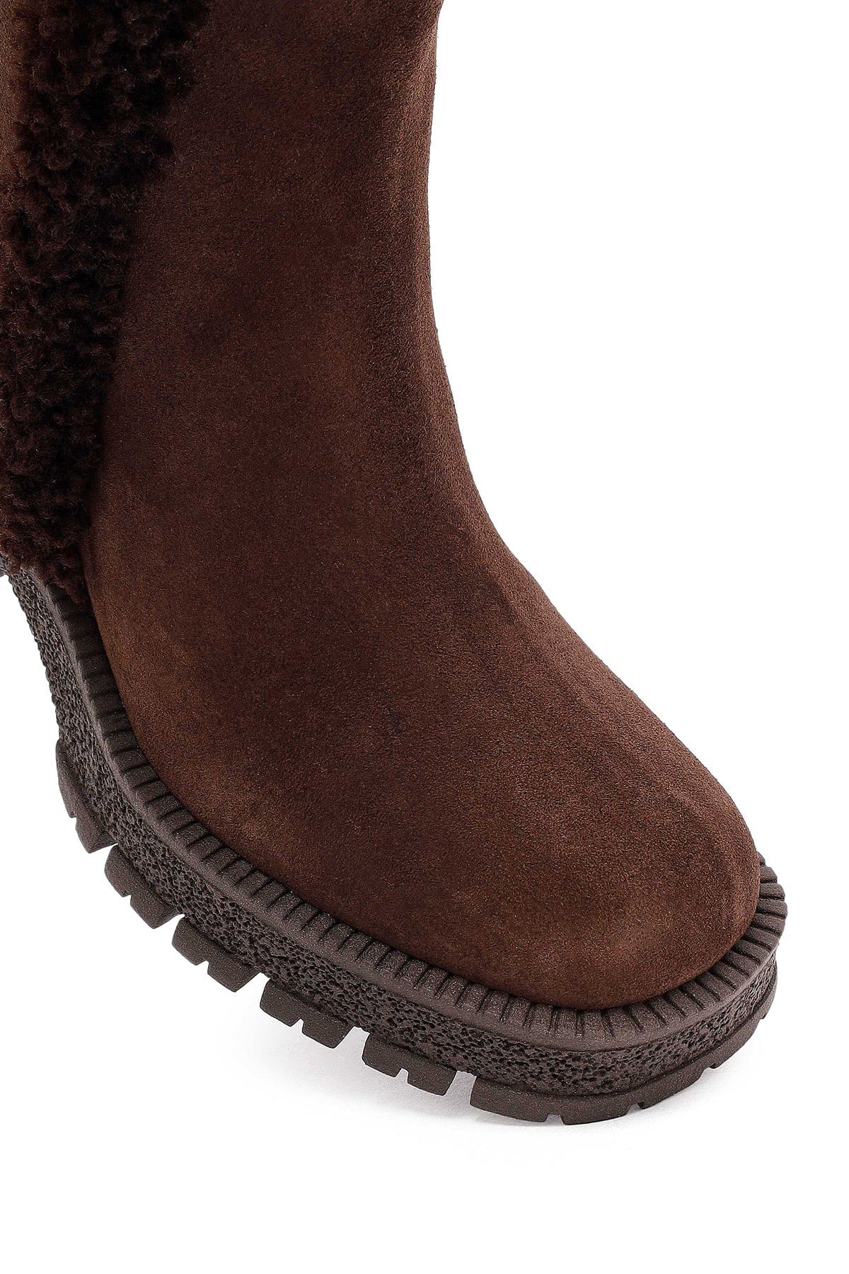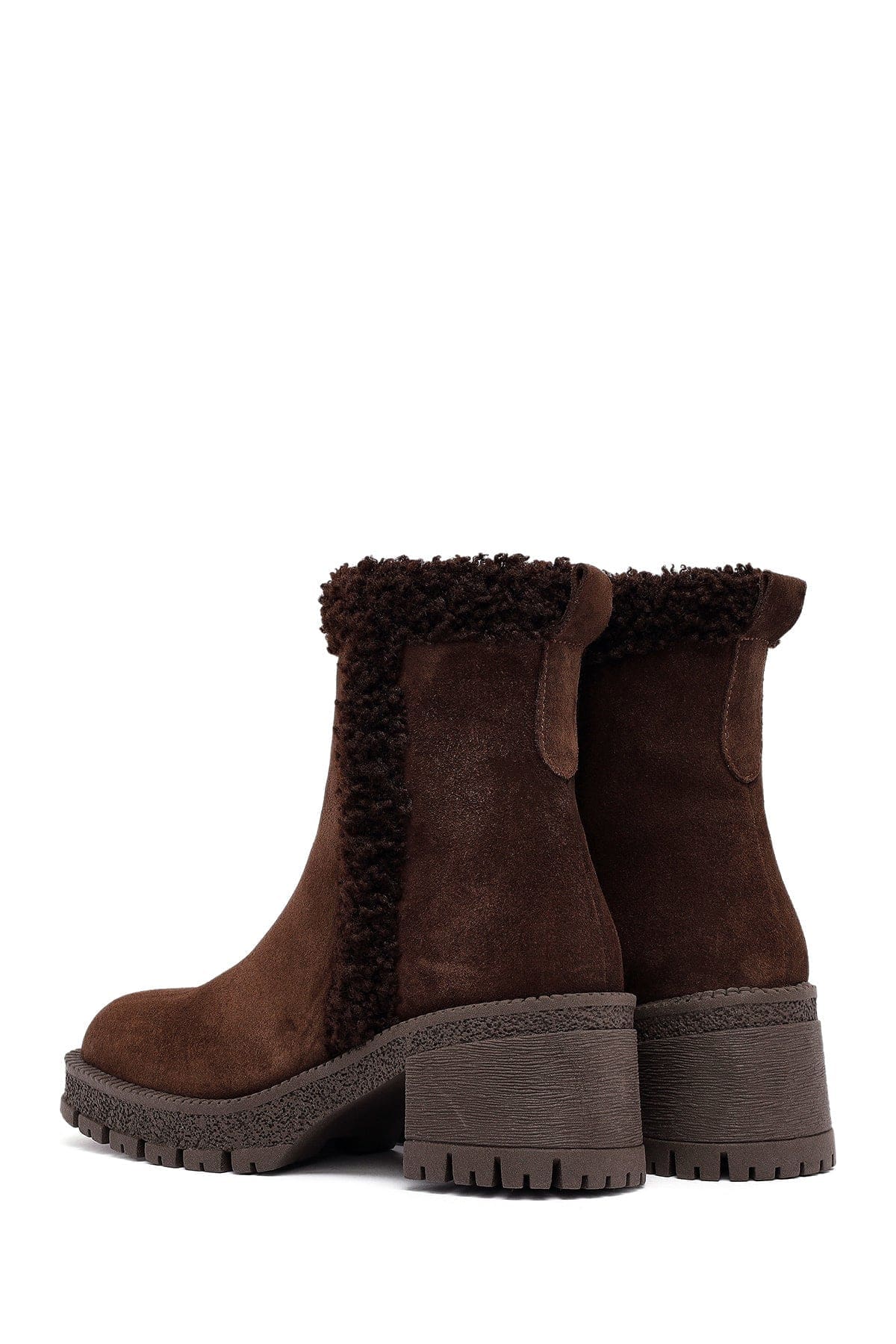Kadın Kahverengi Fermuarlı Kalın Topuklu Süet Deri Bot