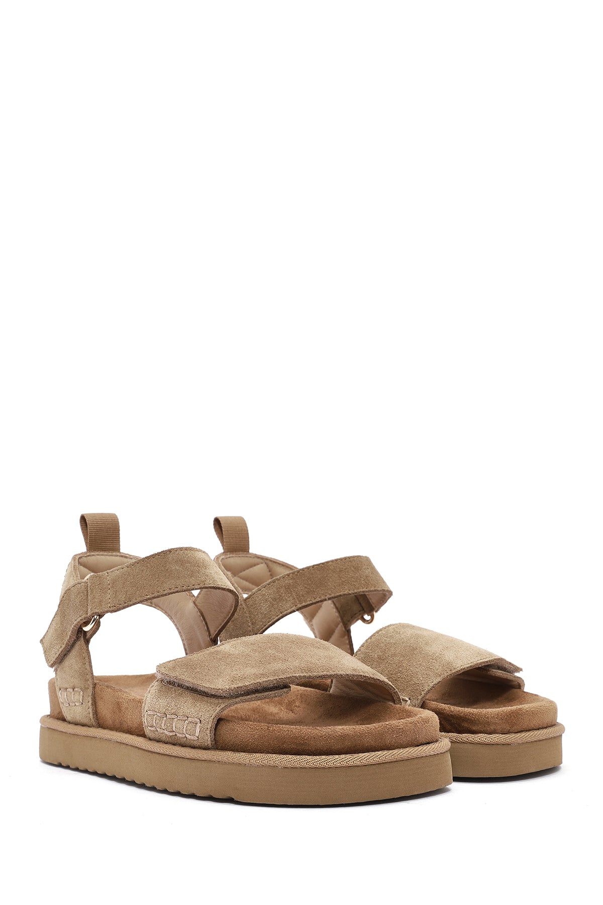 Kadın Taba Kalın Tabanlı Süet Deri Sandalet