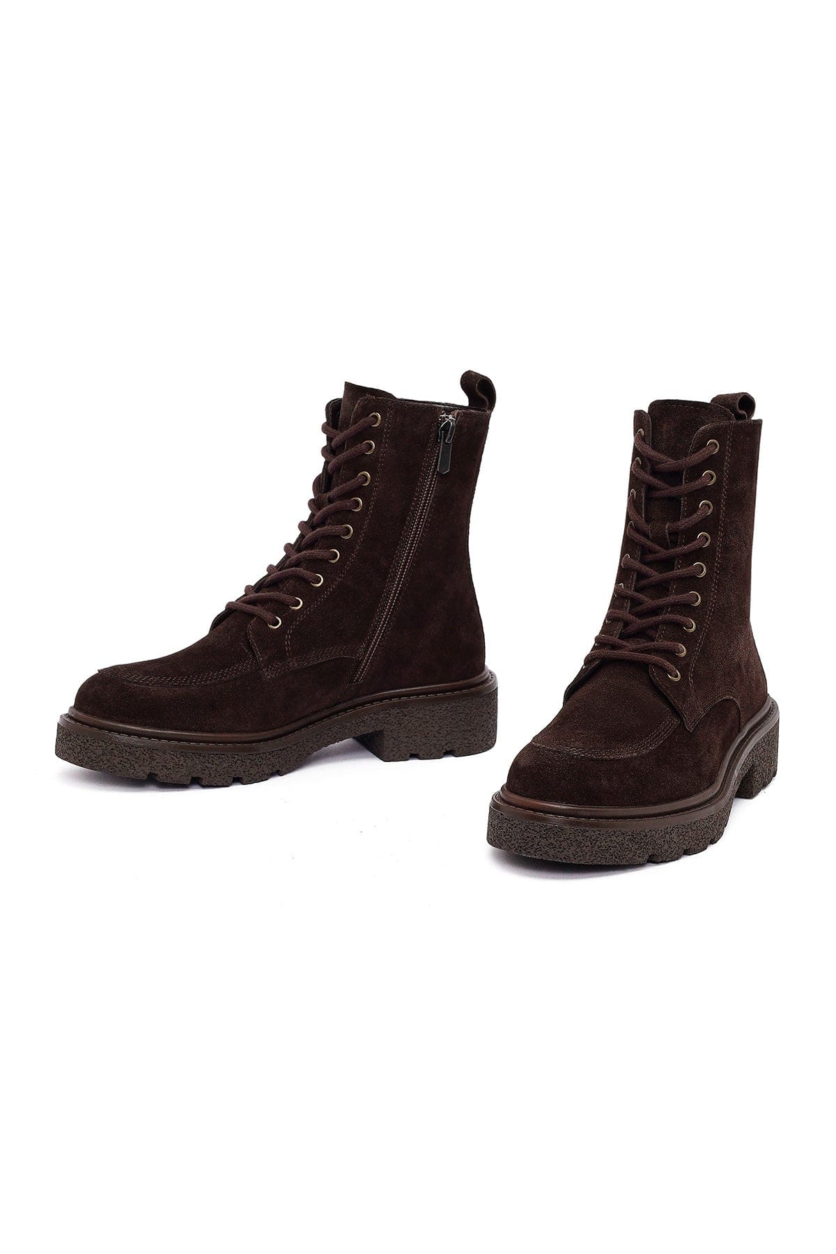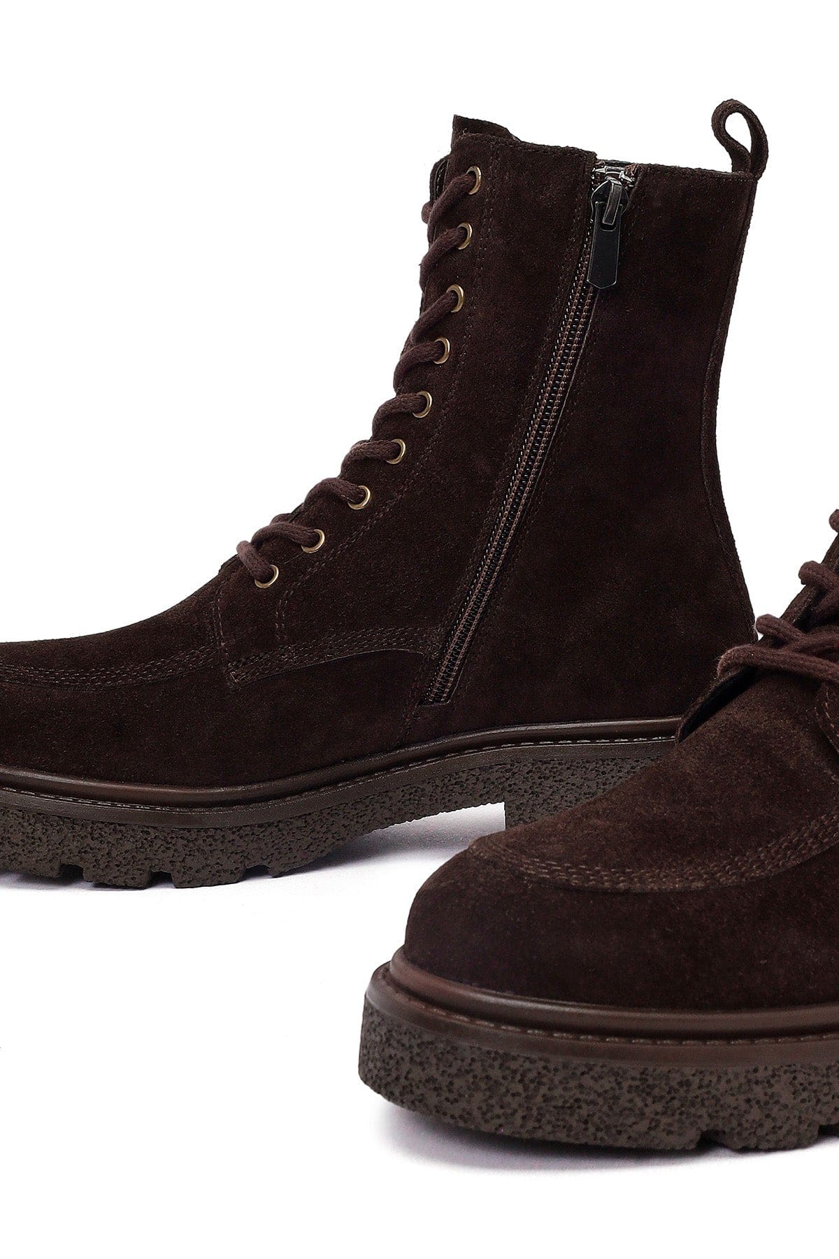 Kadın Kahverengi Fermuarlı Kalın Tabanlı Süet Deri Postal Bot