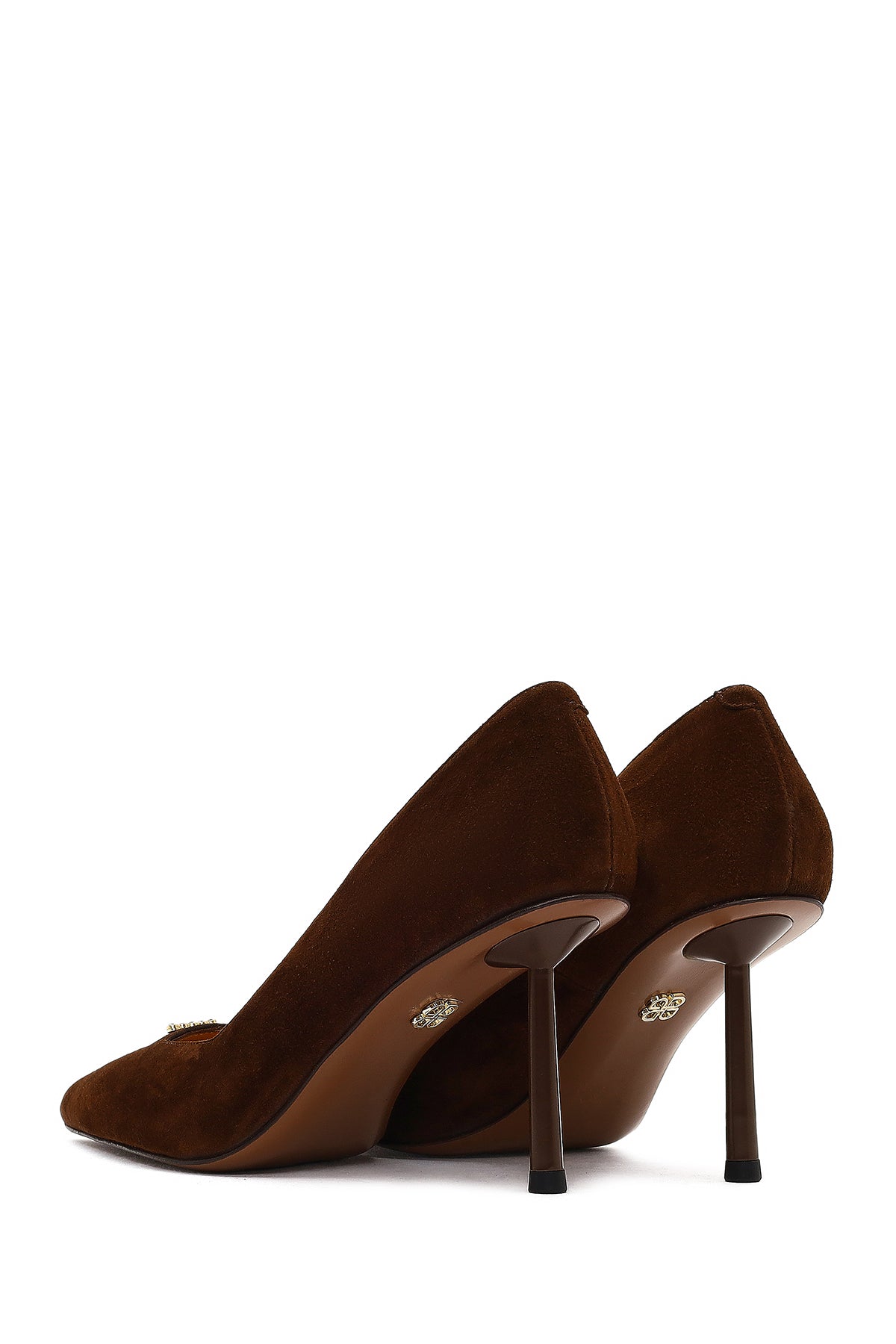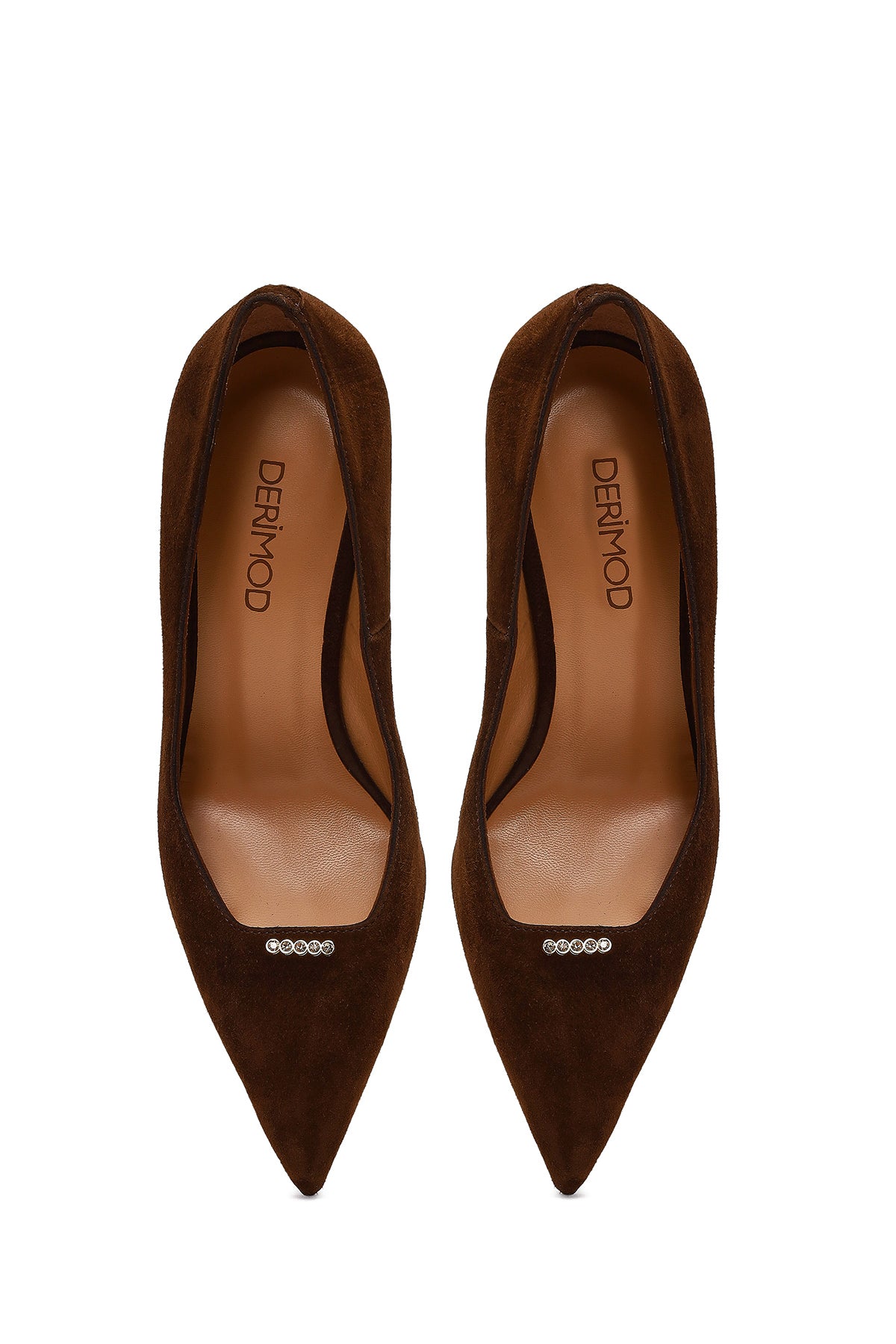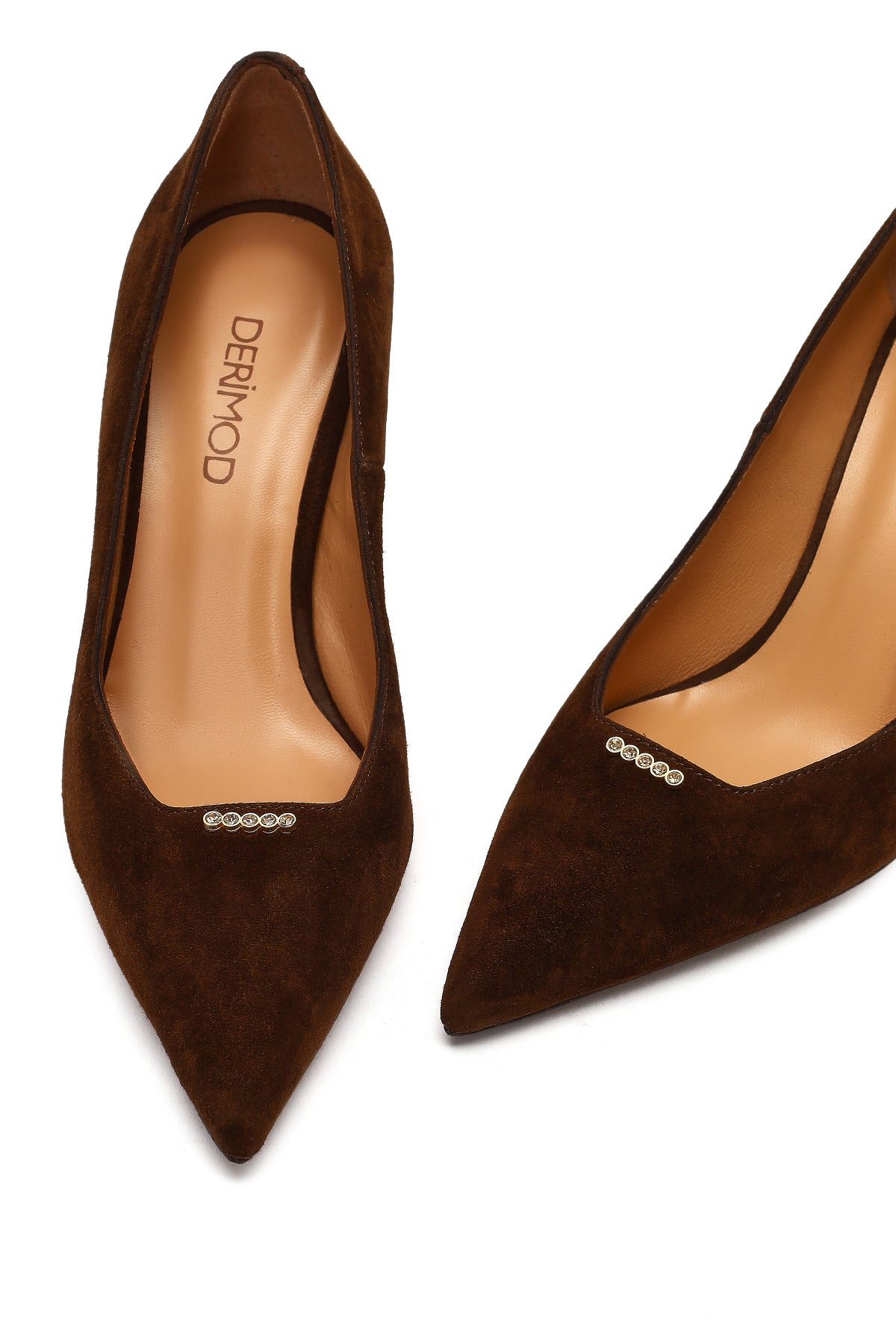 Kadın Kahverengi İnce Topuklu Süet Deri Stiletto