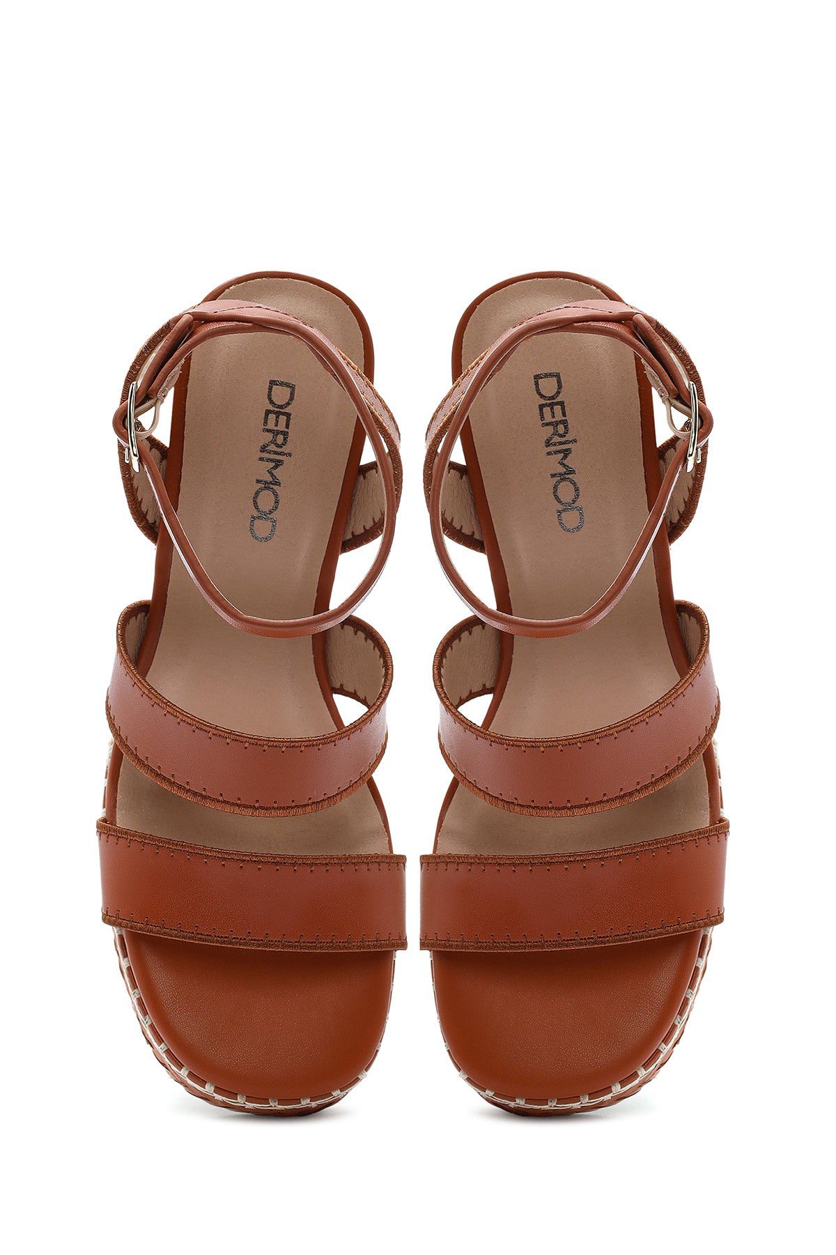 Kadın Taba Bilekten Tokalı Dolgu Topuklu Espadril Sandalet