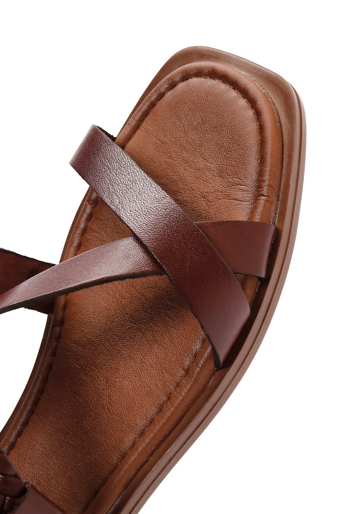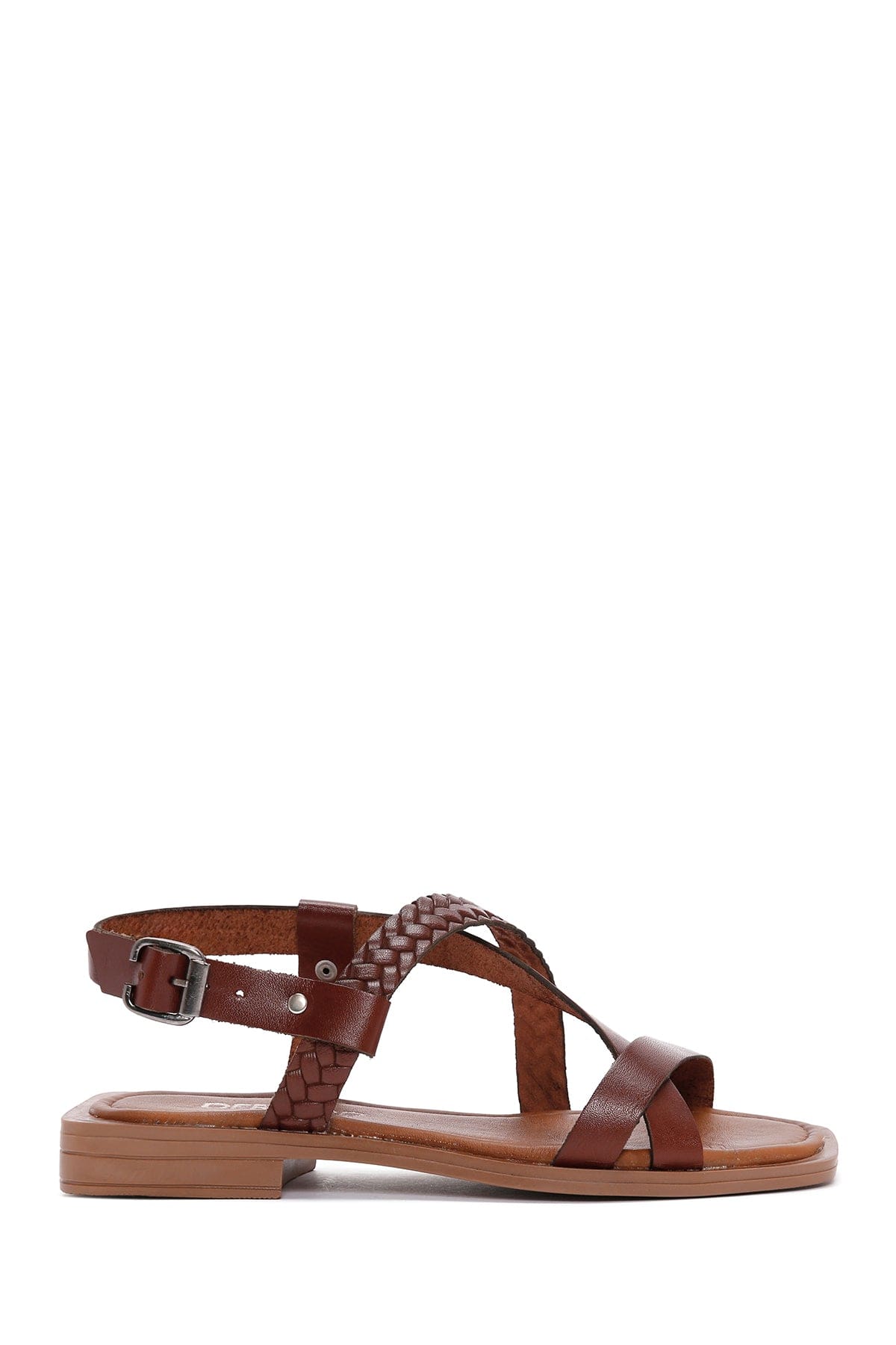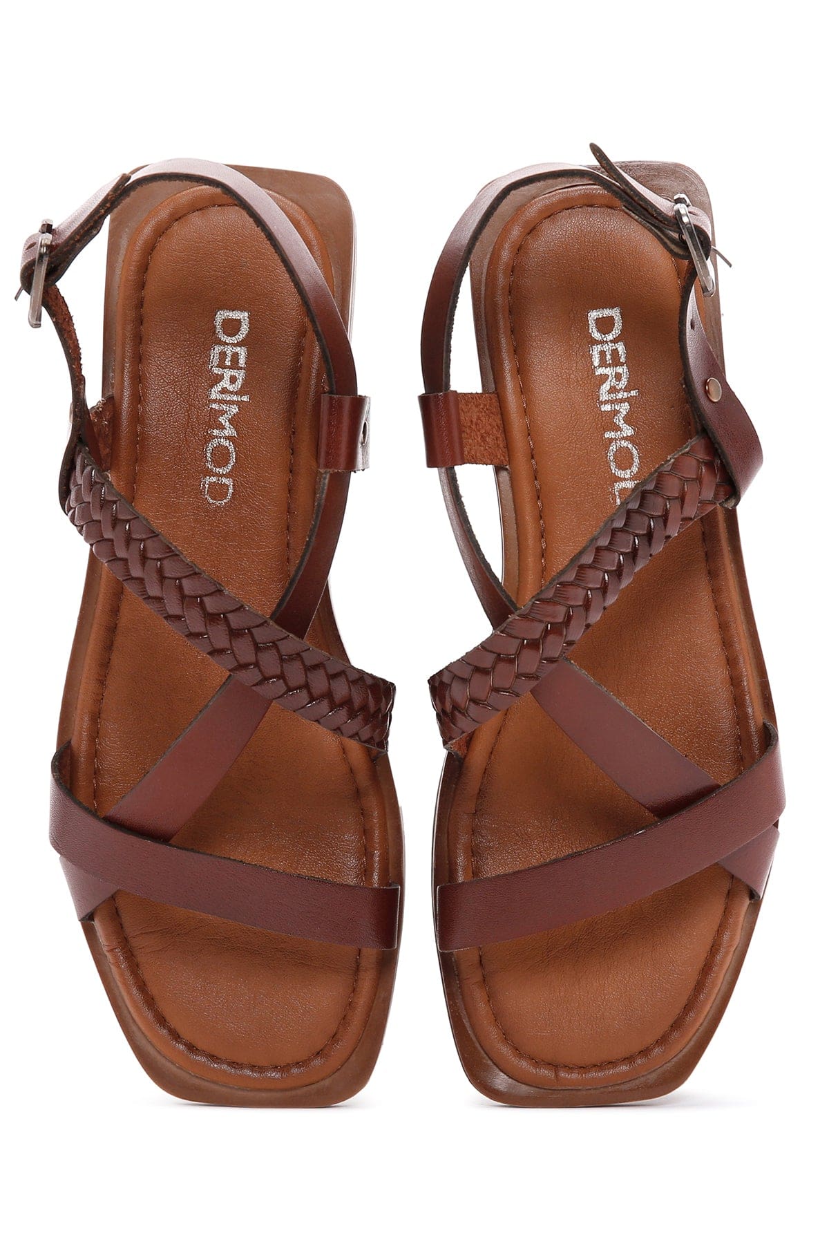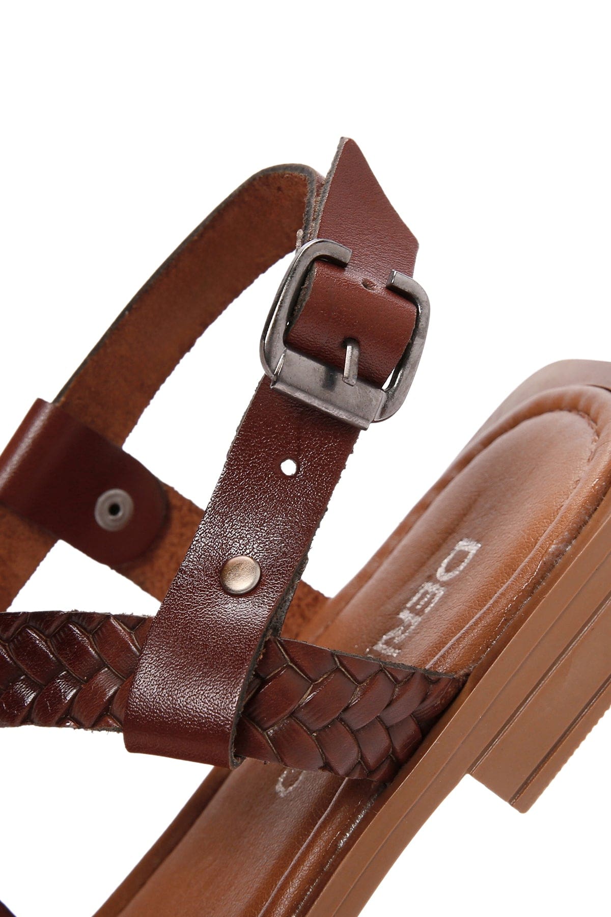 Kadın Kahverengi Örgü Detaylı Deri Bodrum Sandalet