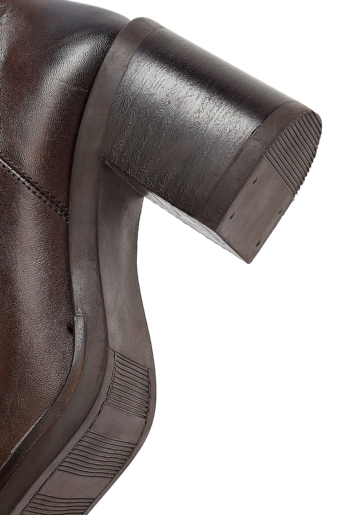 چکمه زنانه چرمی قهوهای زیپدار پاشنه پهن دری مد