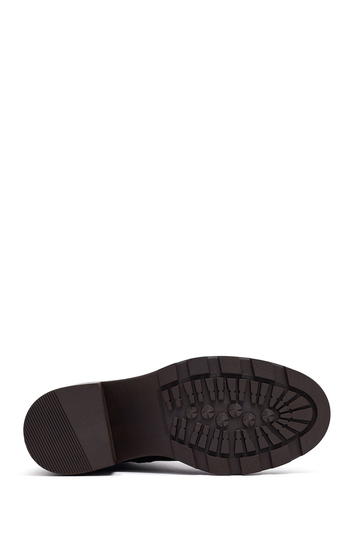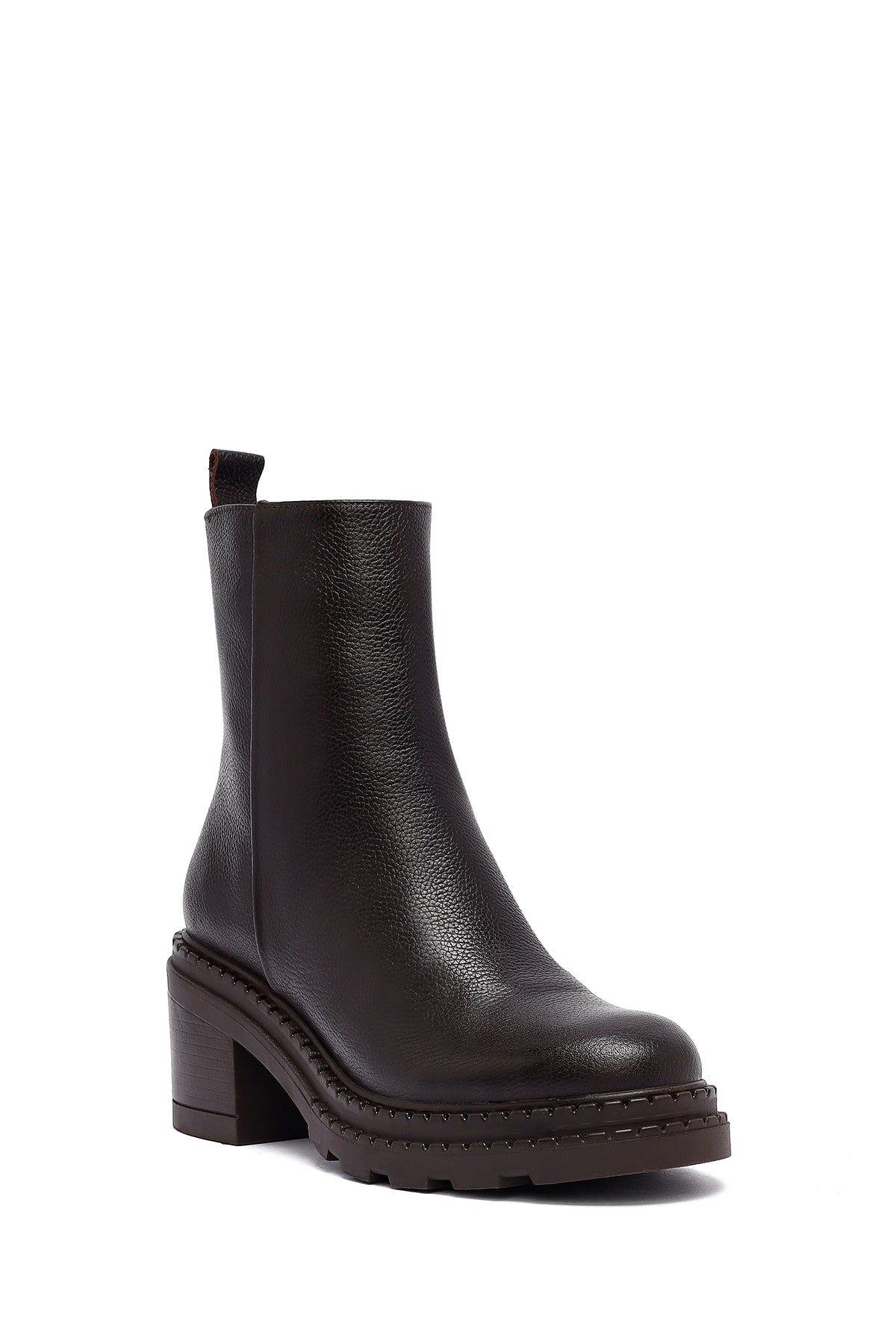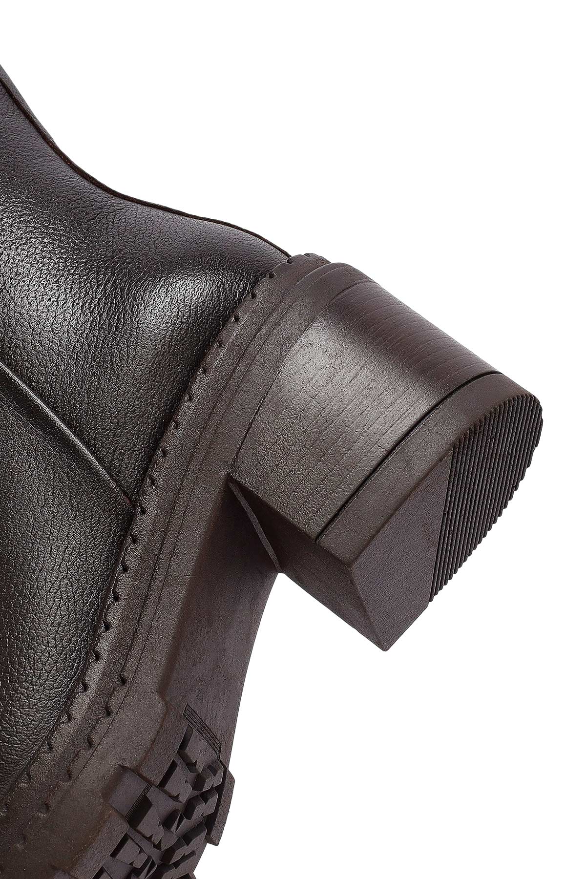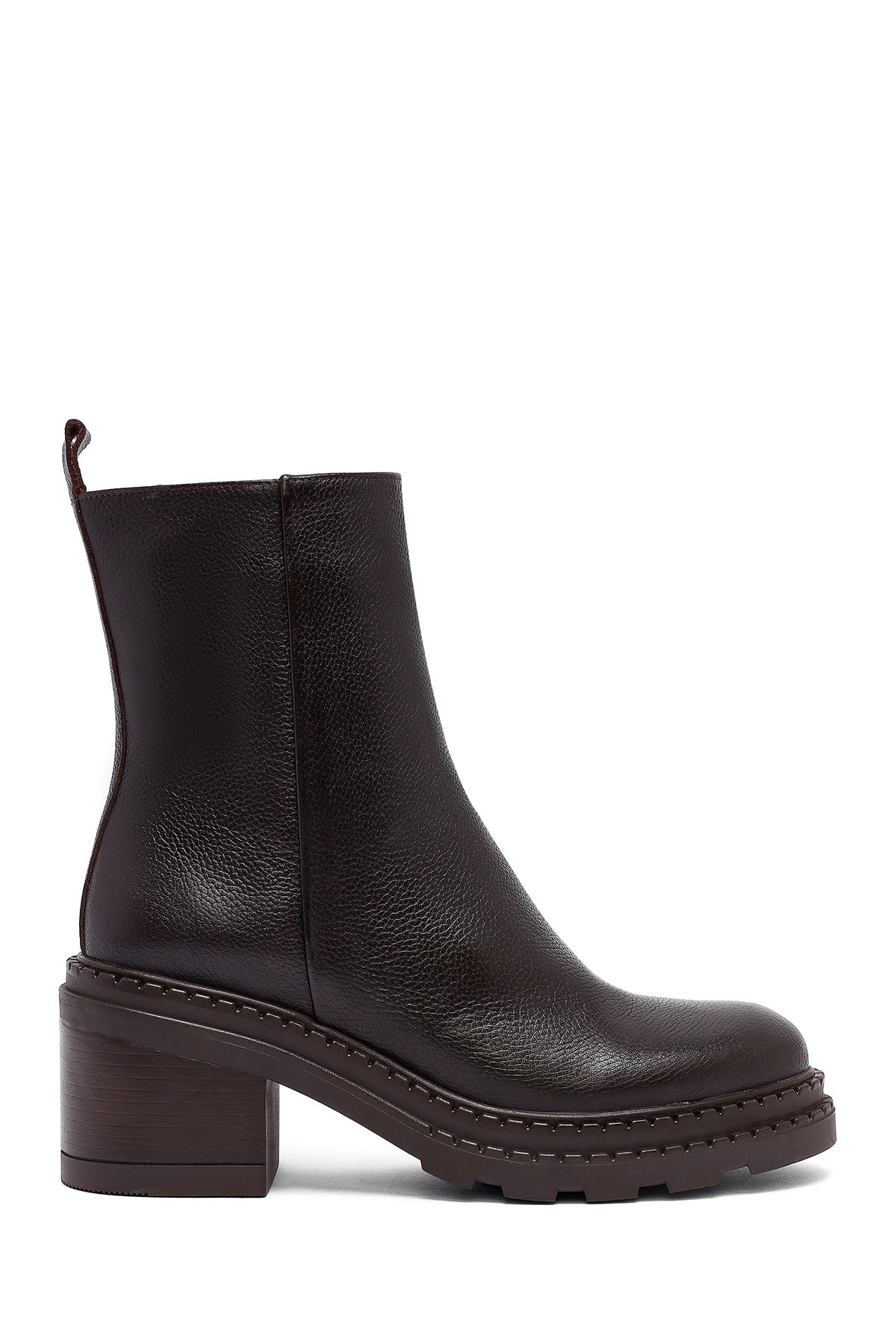 Kadın Kahverengi Fermuarlı Kalın Topuklu Deri Bot
