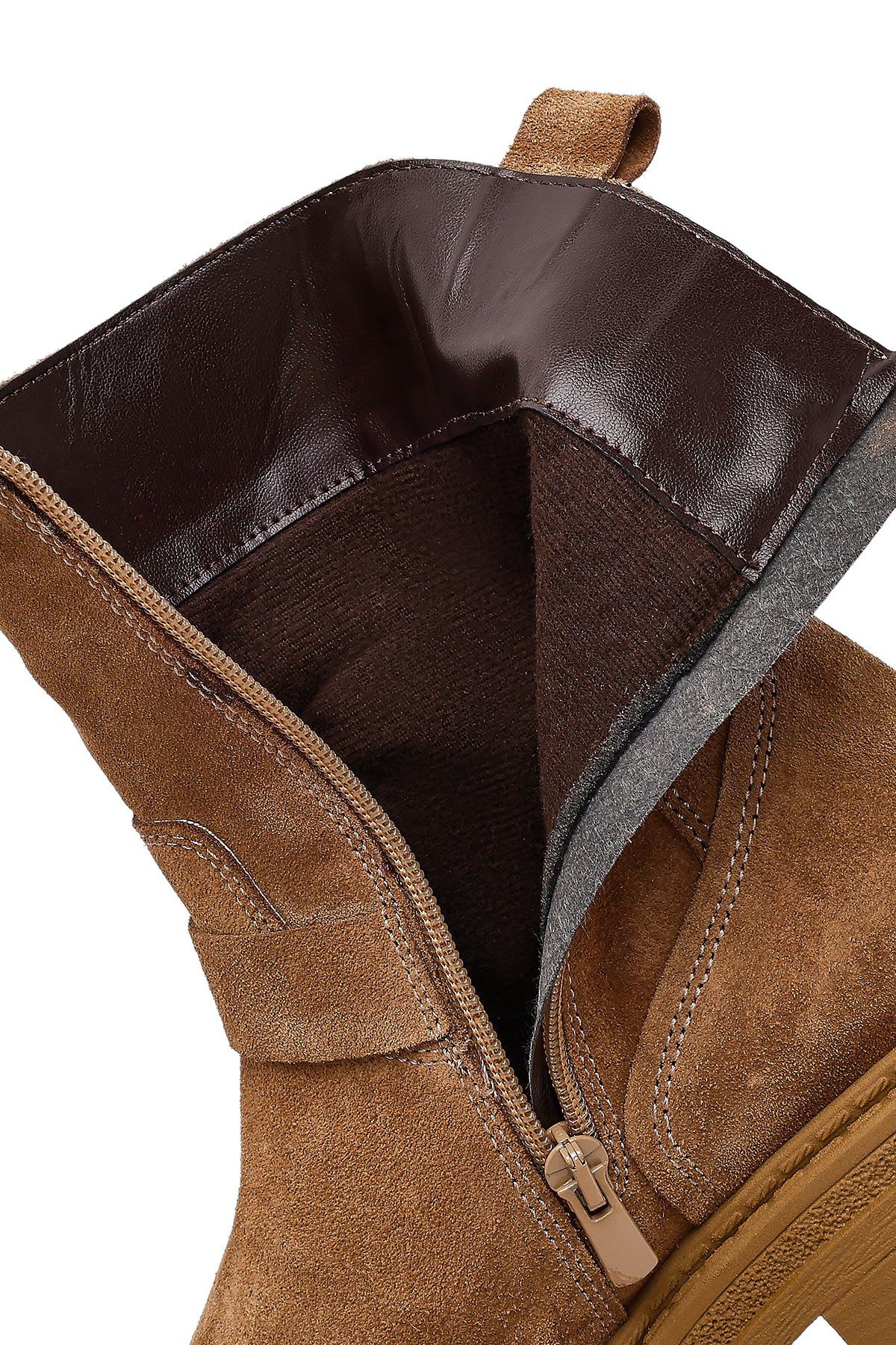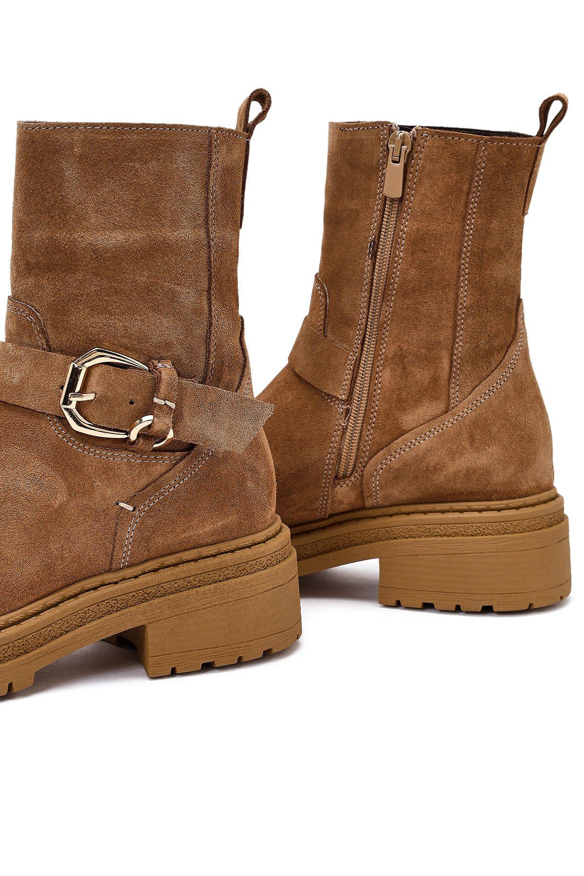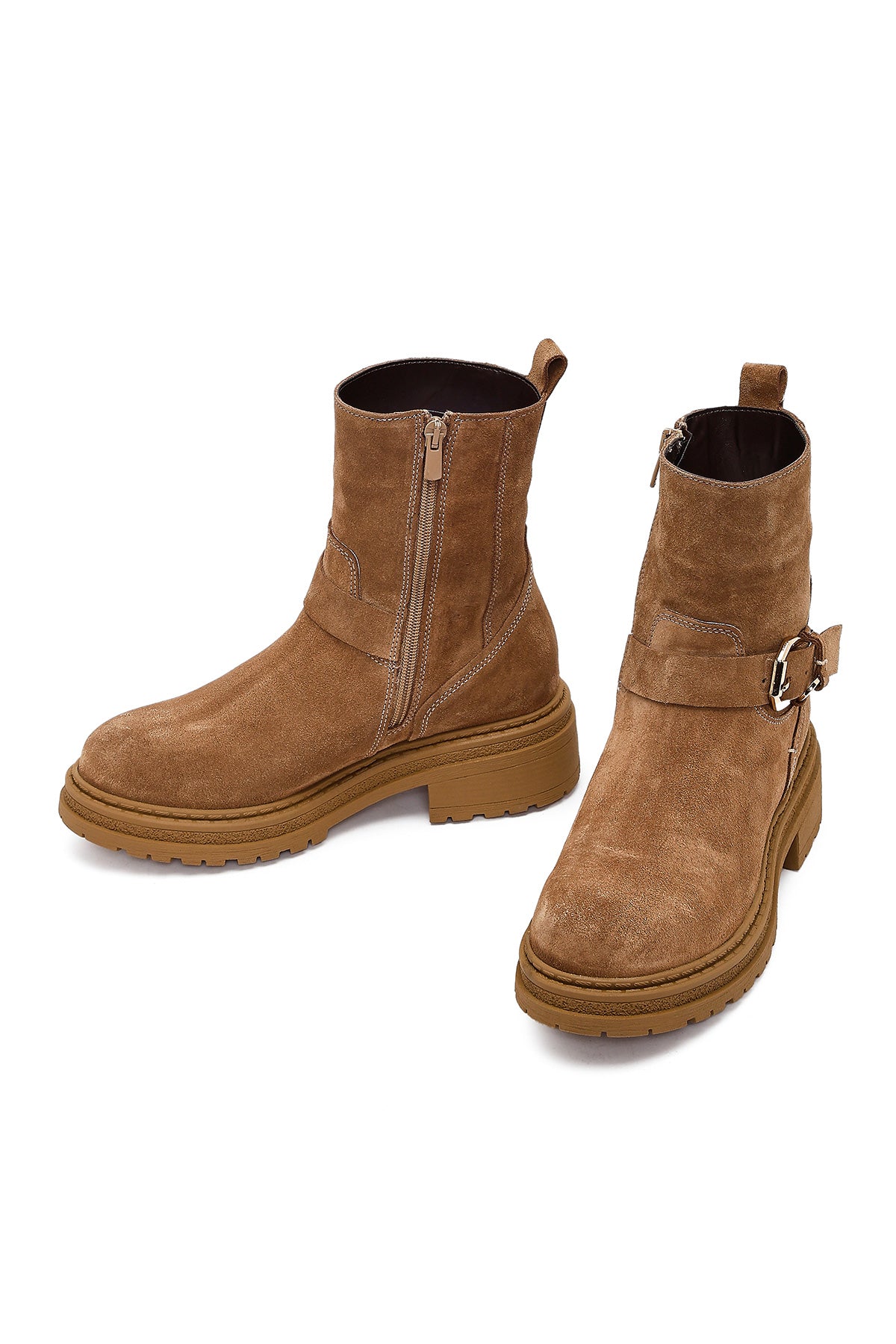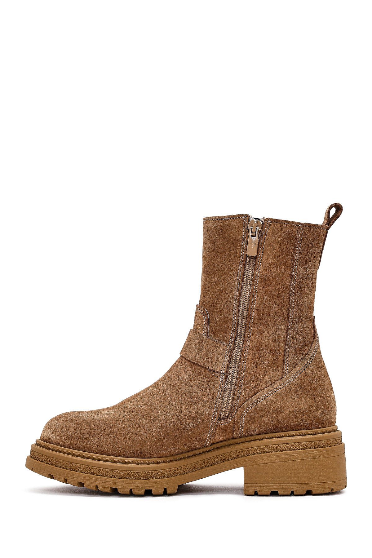 Kadın Taba Fermuarlı Kalın Tabanlı Süet Deri Bot