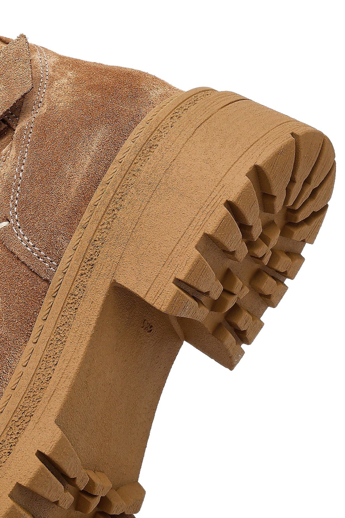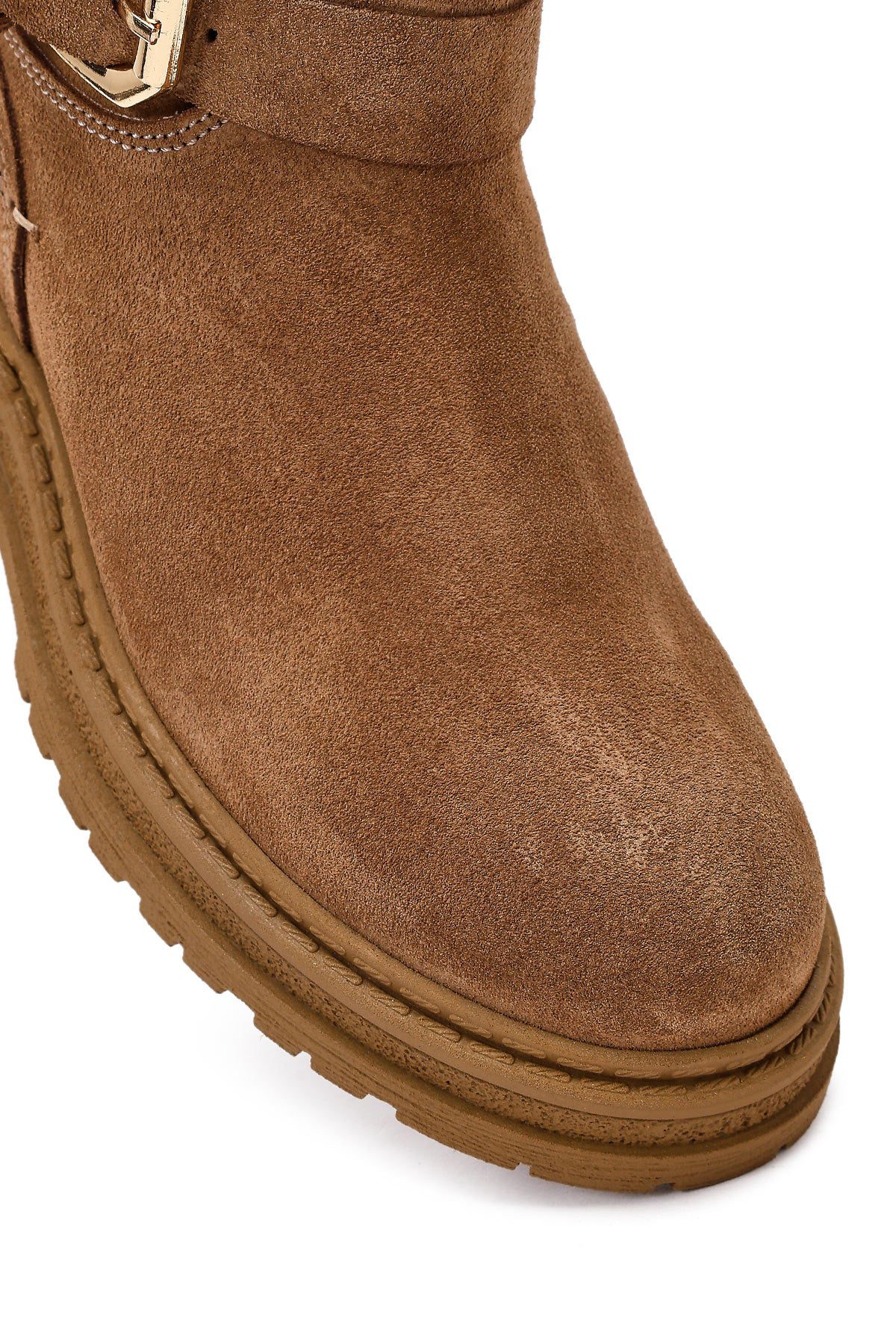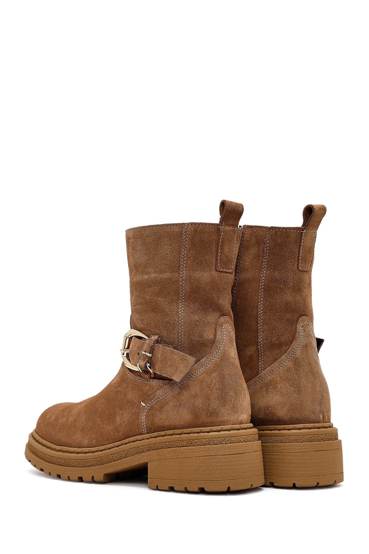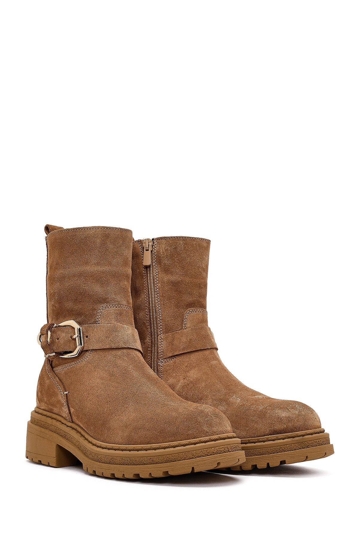 Kadın Taba Fermuarlı Kalın Tabanlı Süet Deri Bot