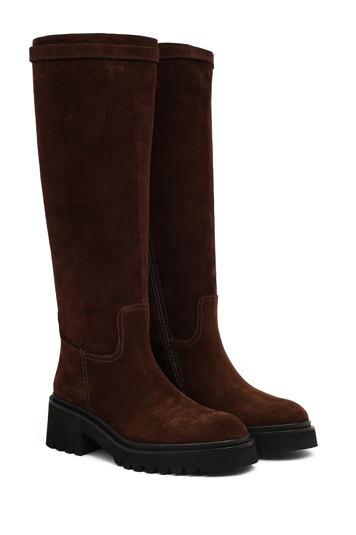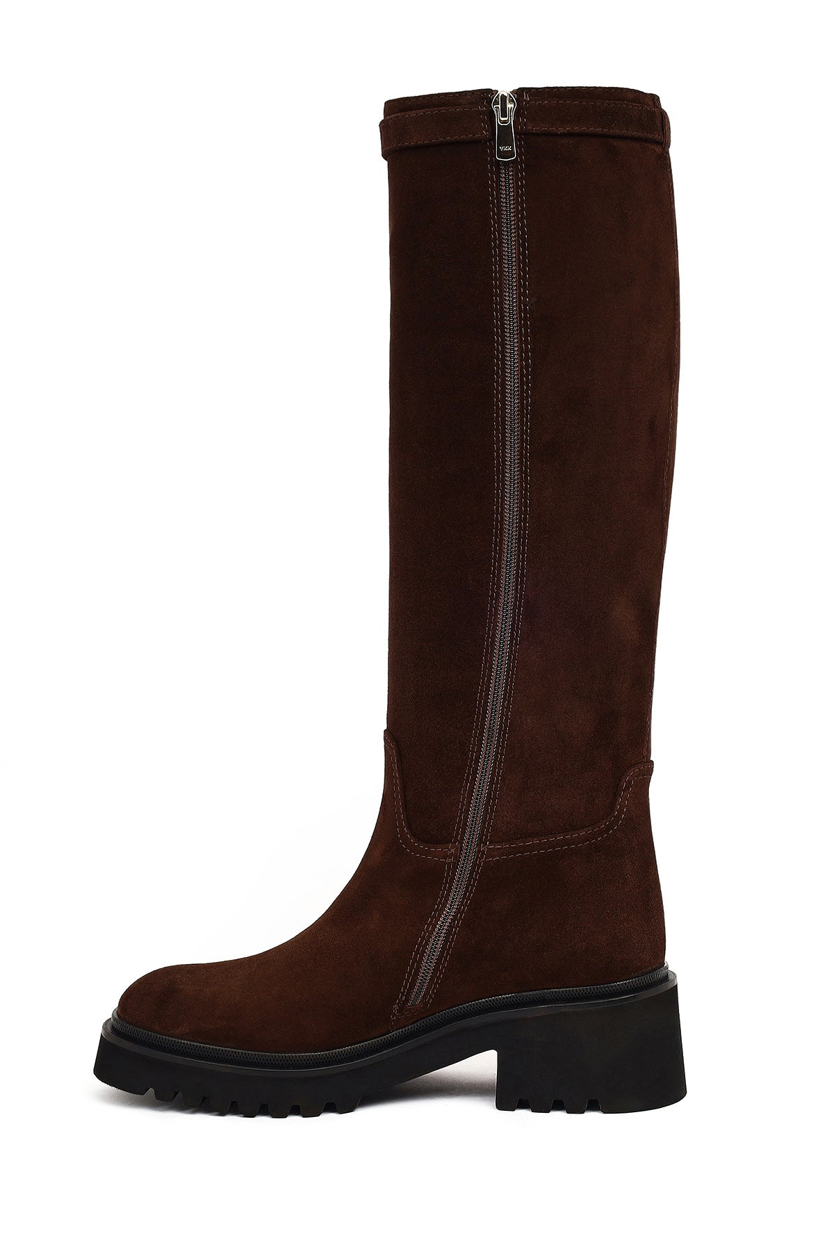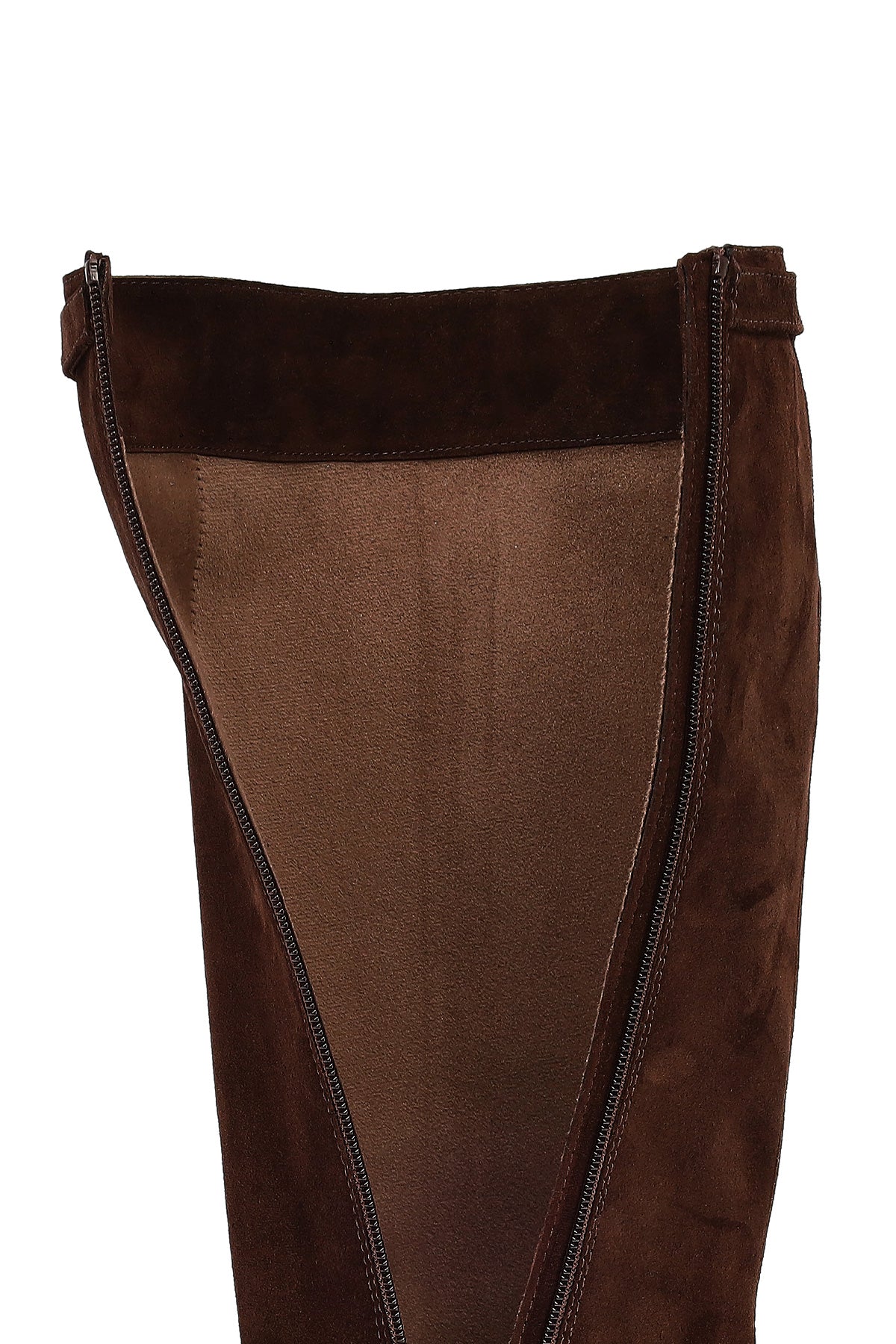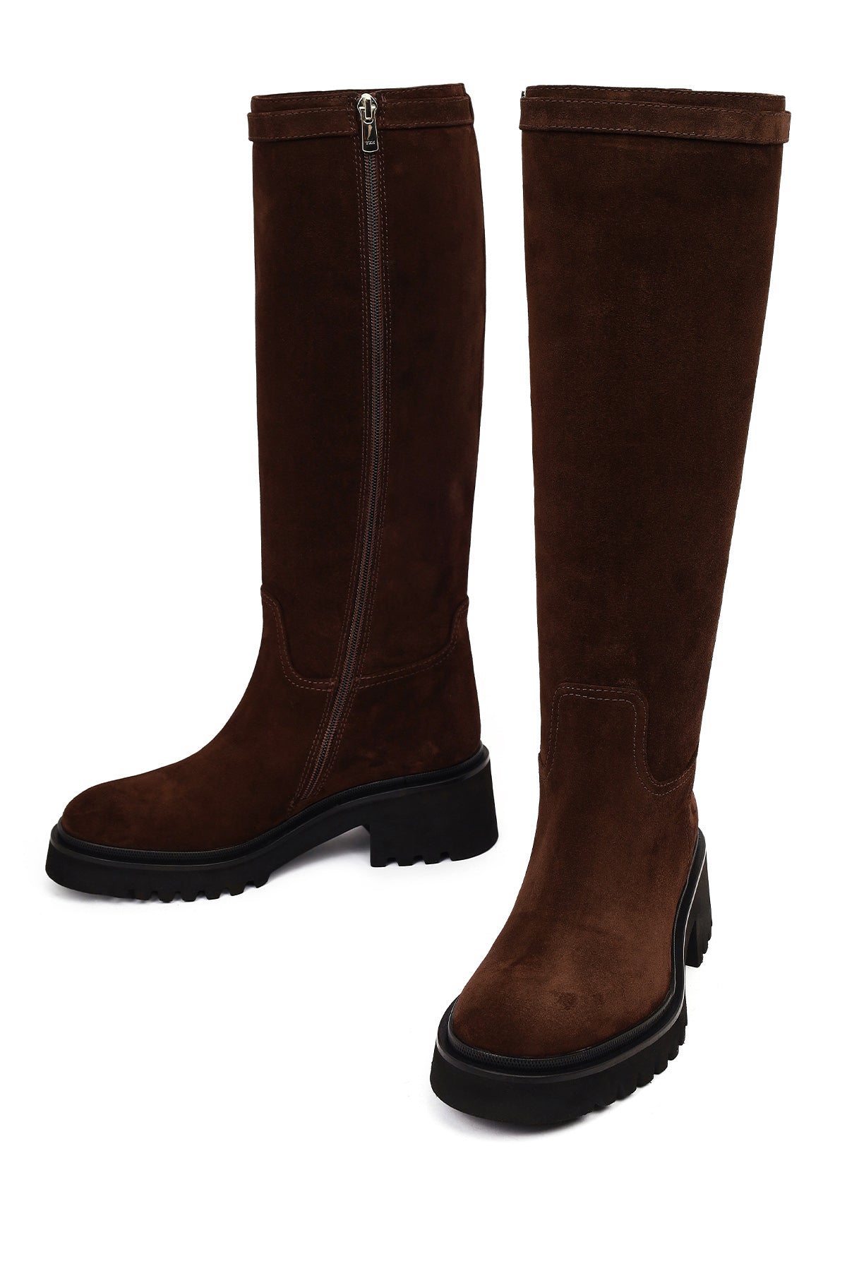 Kadın Kahverengi Fermuarlı Kalın Tabanlı Süet Deri Çizme