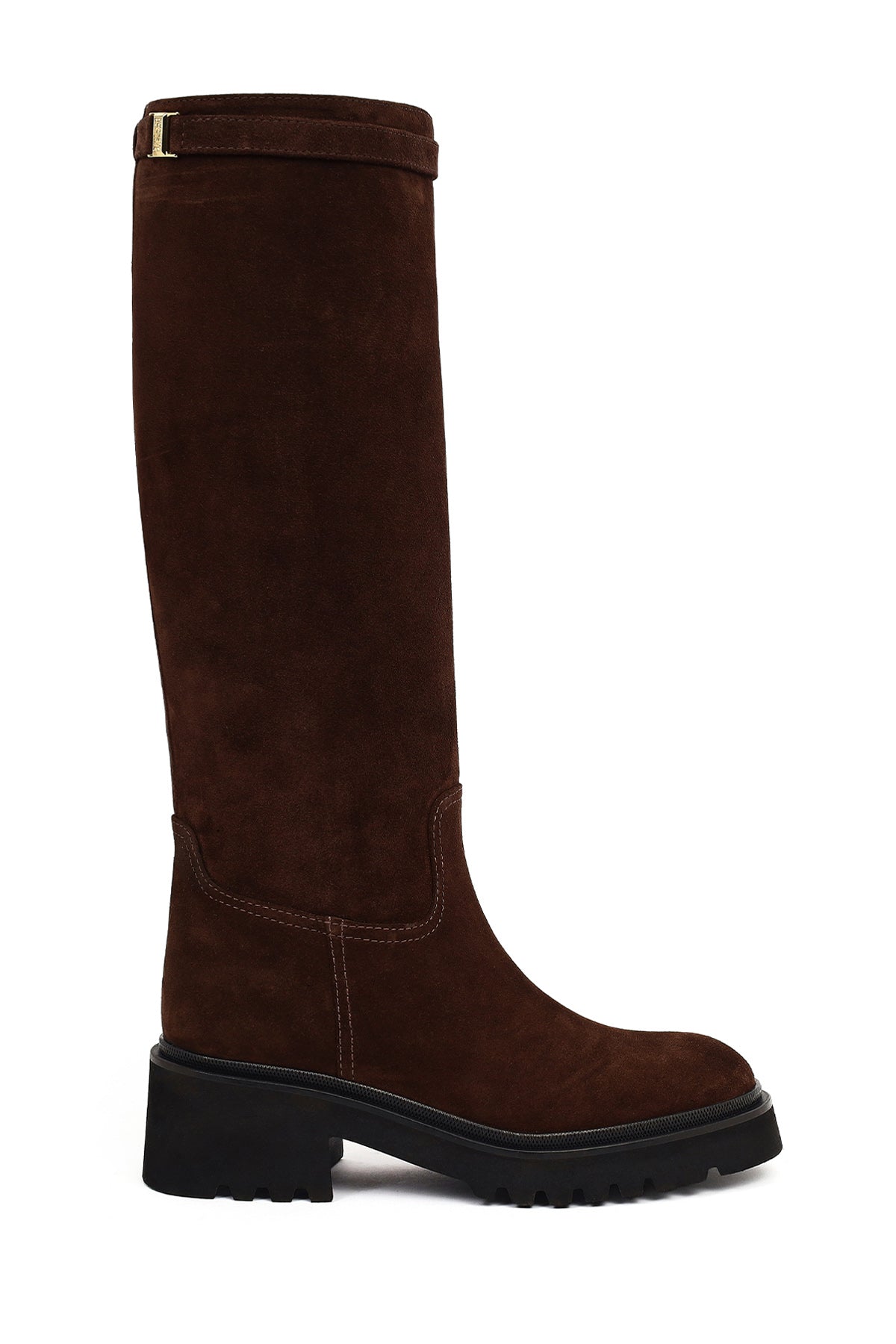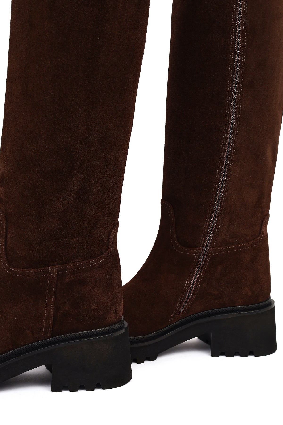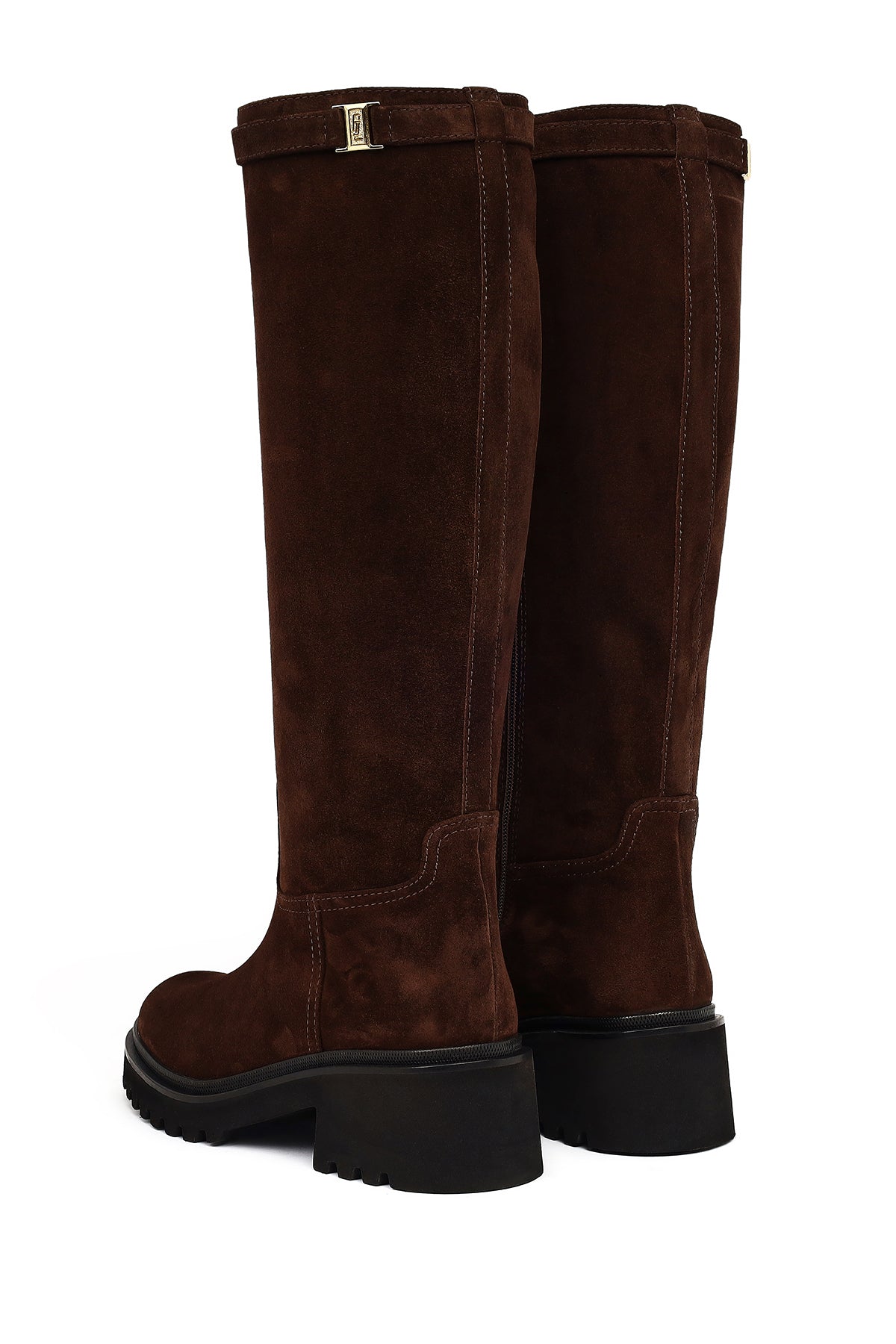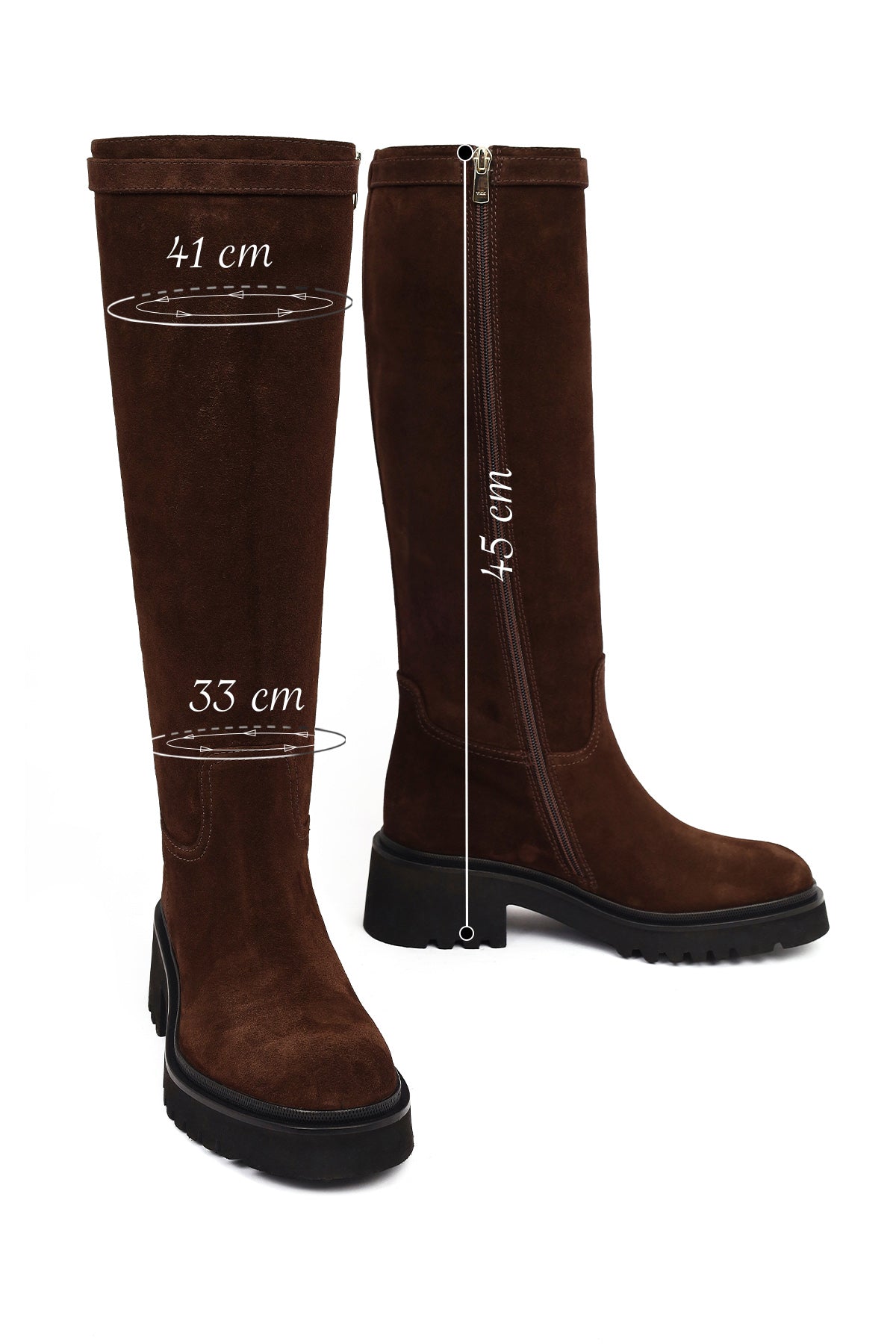 Kadın Kahverengi Fermuarlı Kalın Tabanlı Süet Deri Çizme