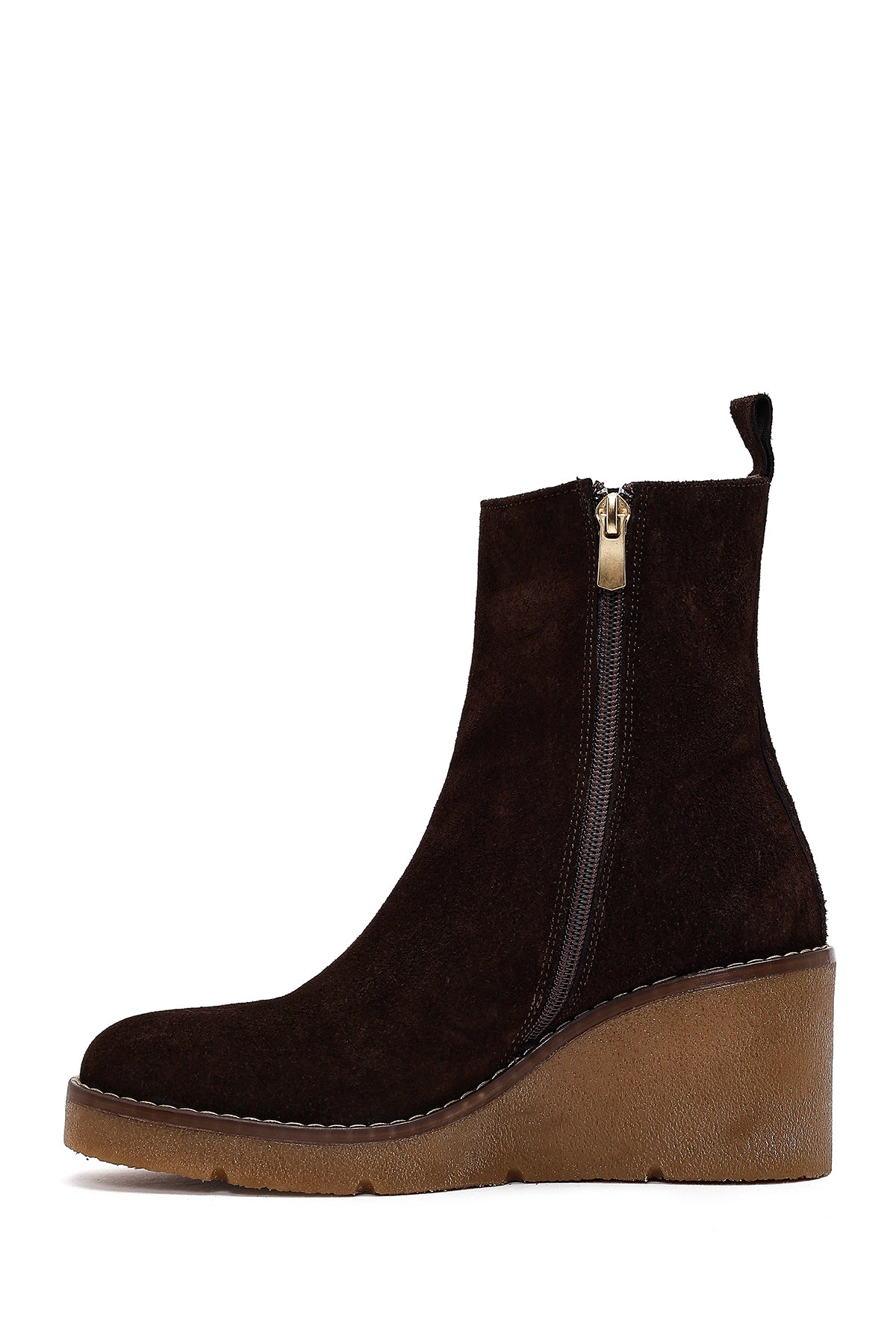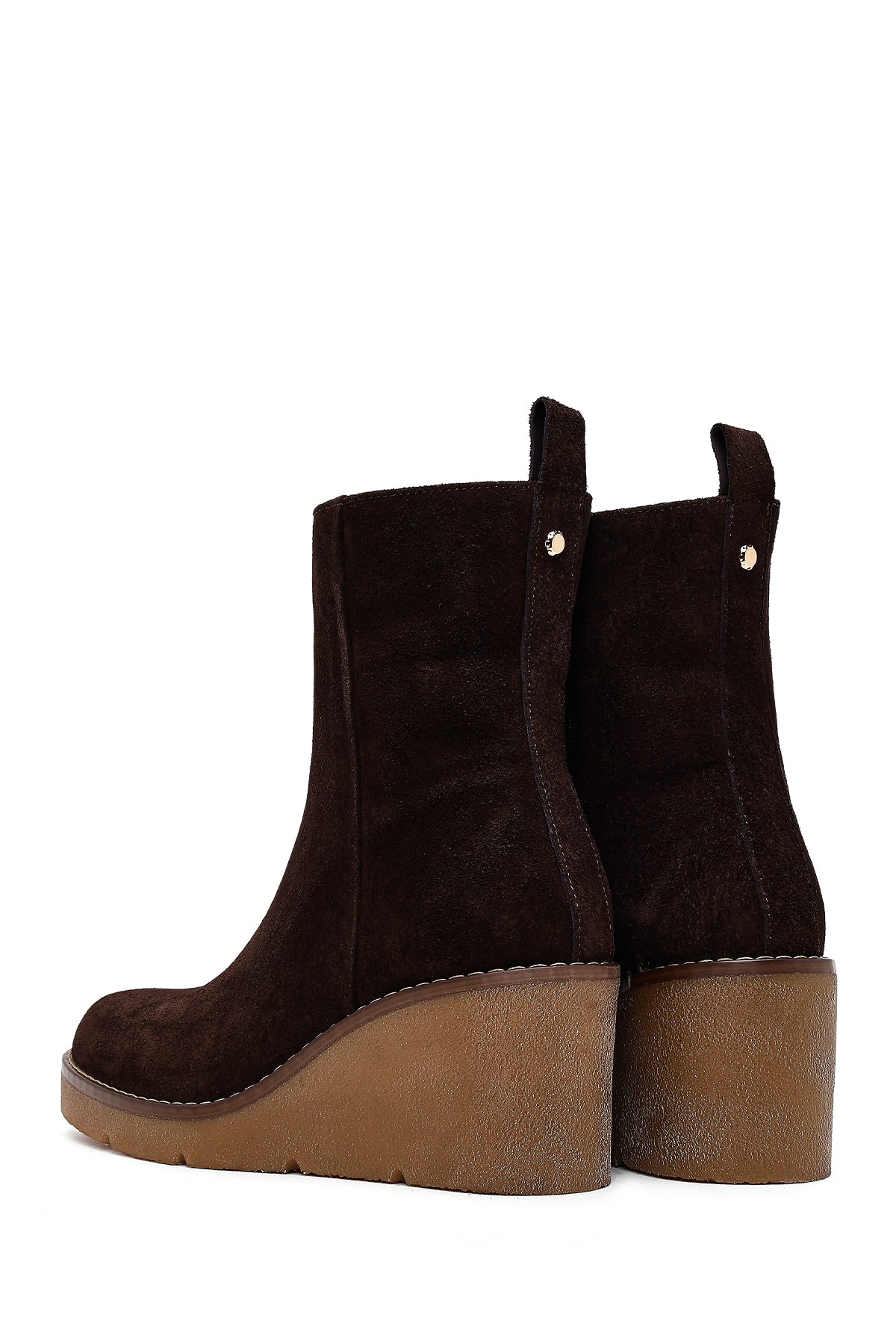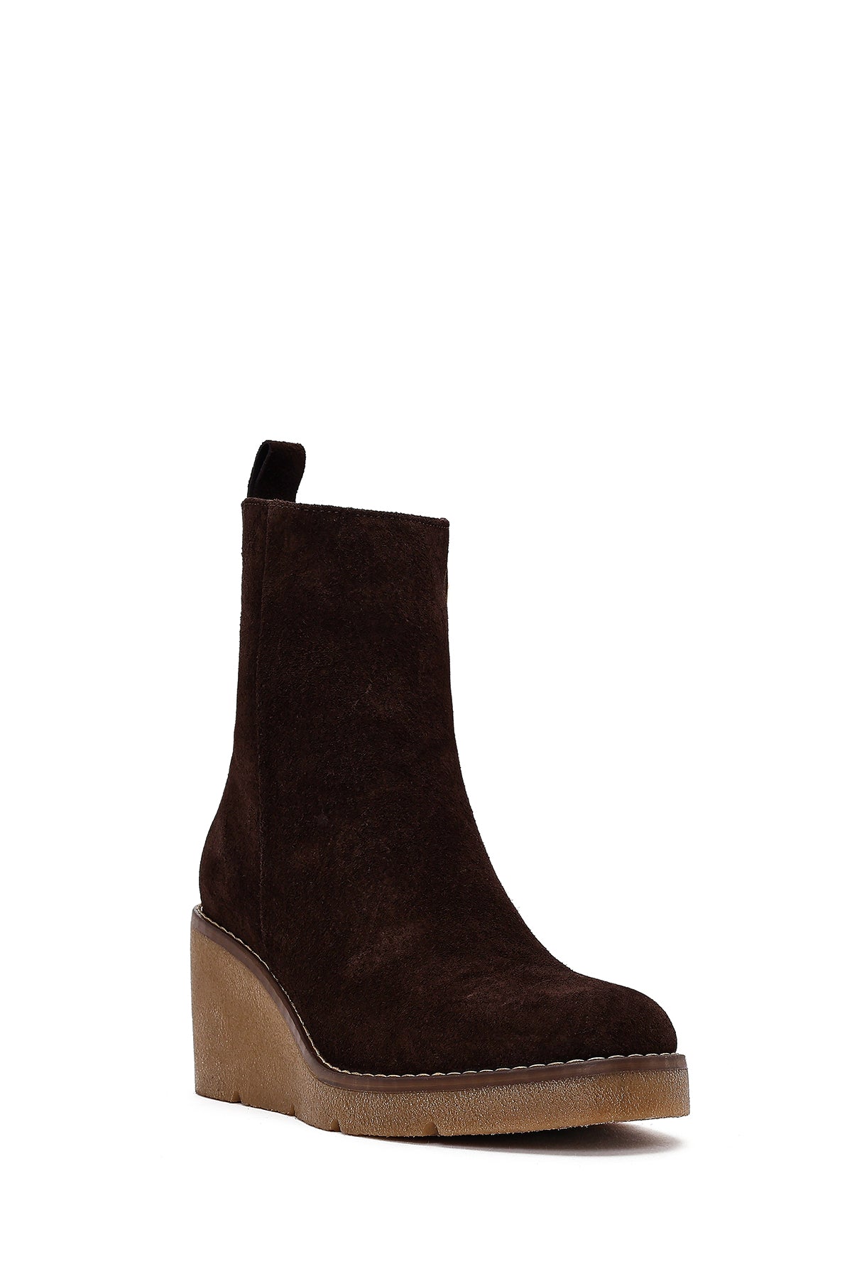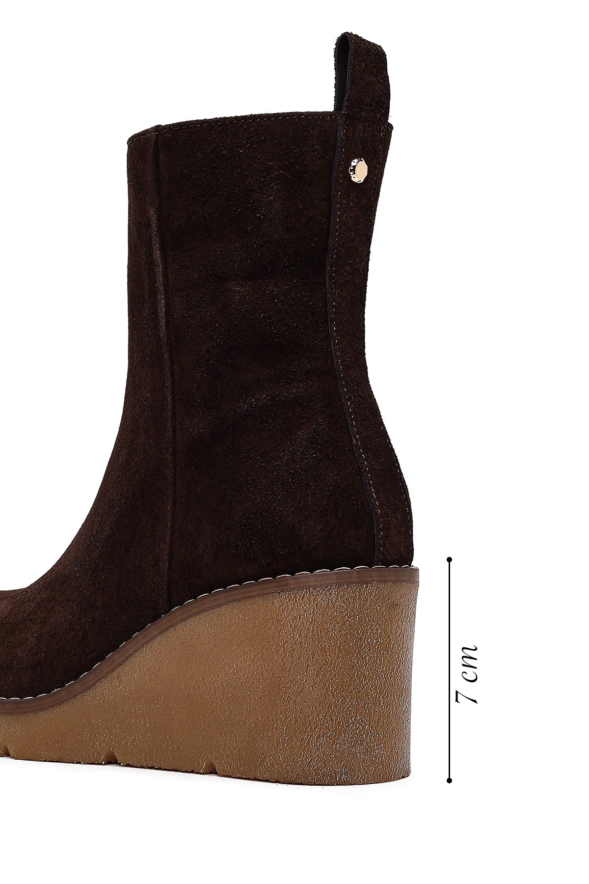 Kadın Kahverengi Fermuarlı Dolgu Topuklu Süet Deri Bot