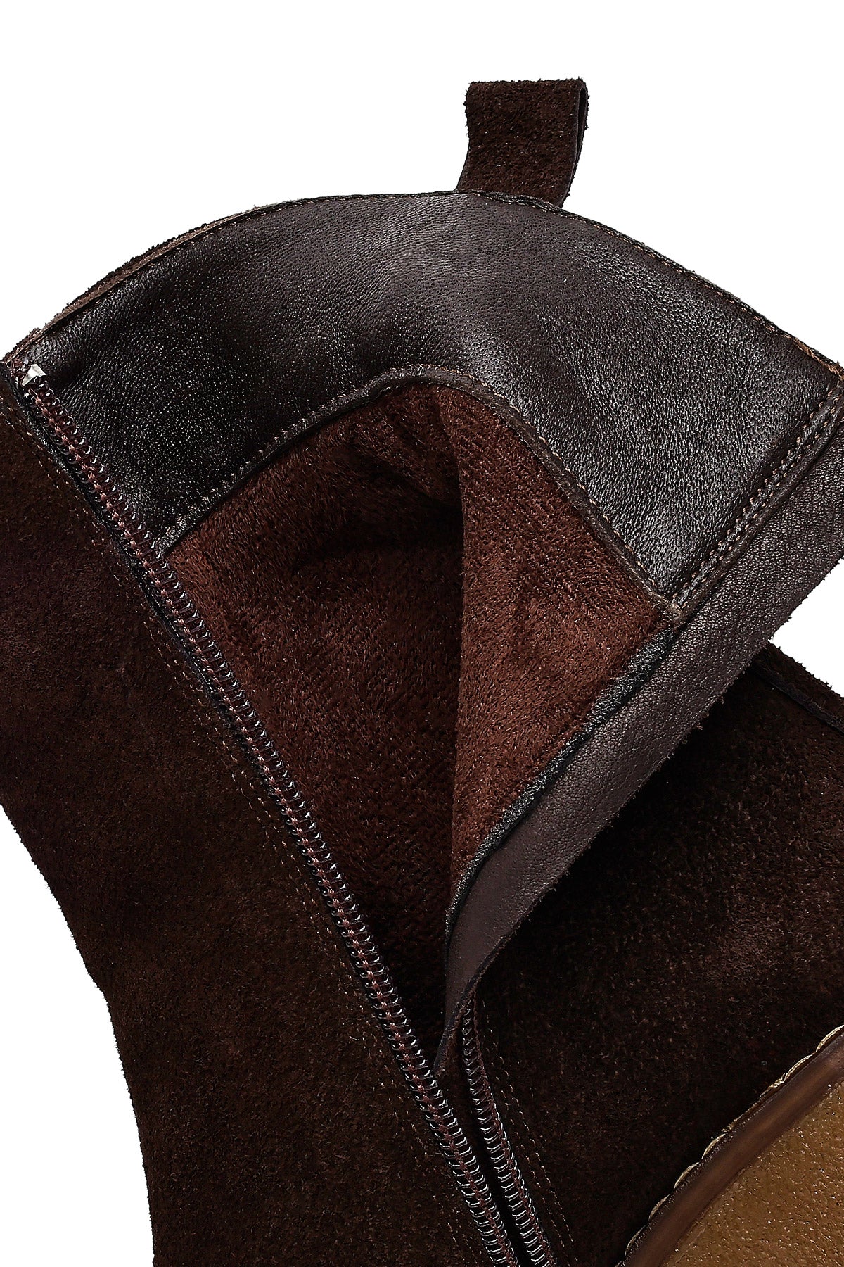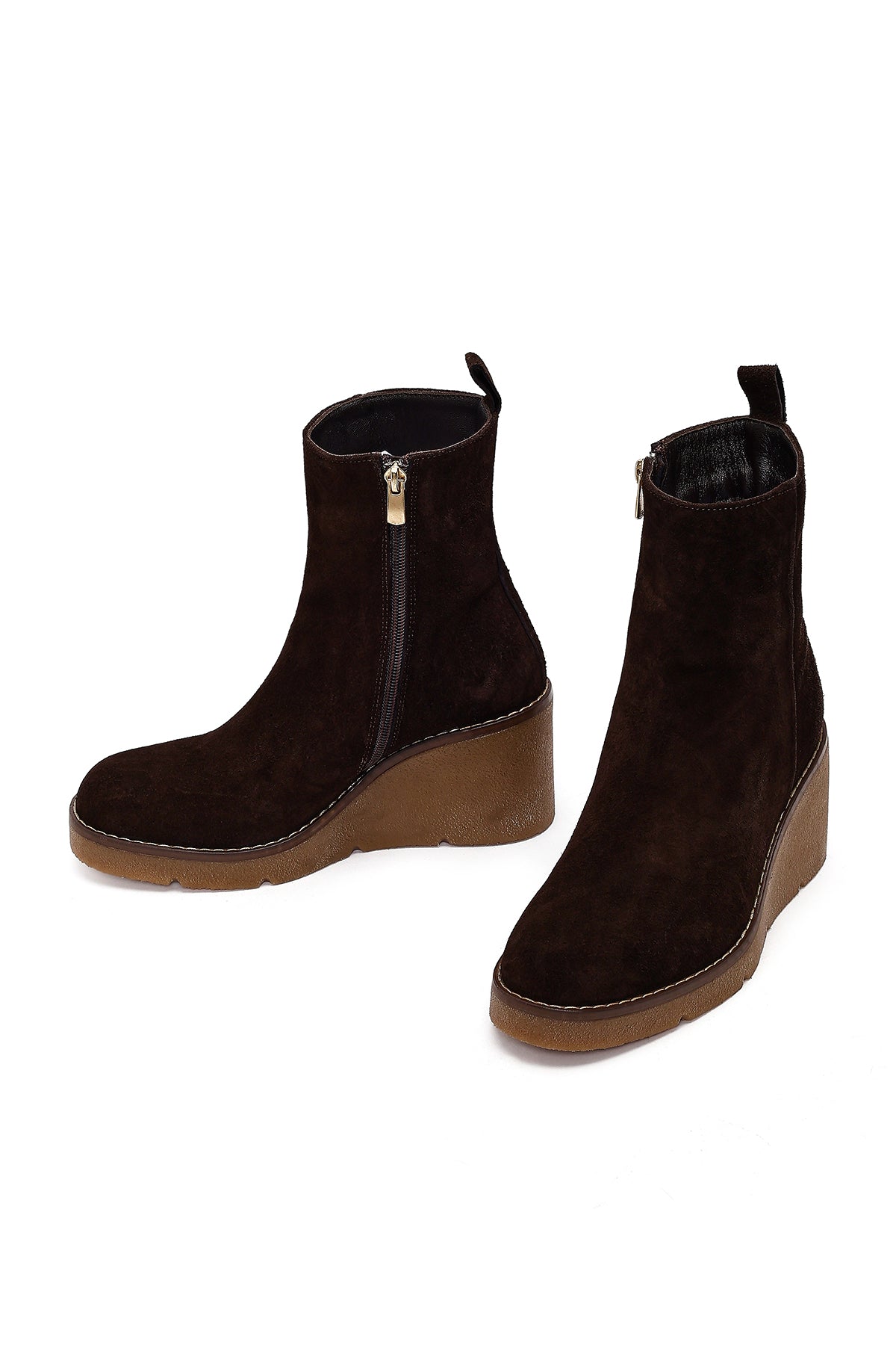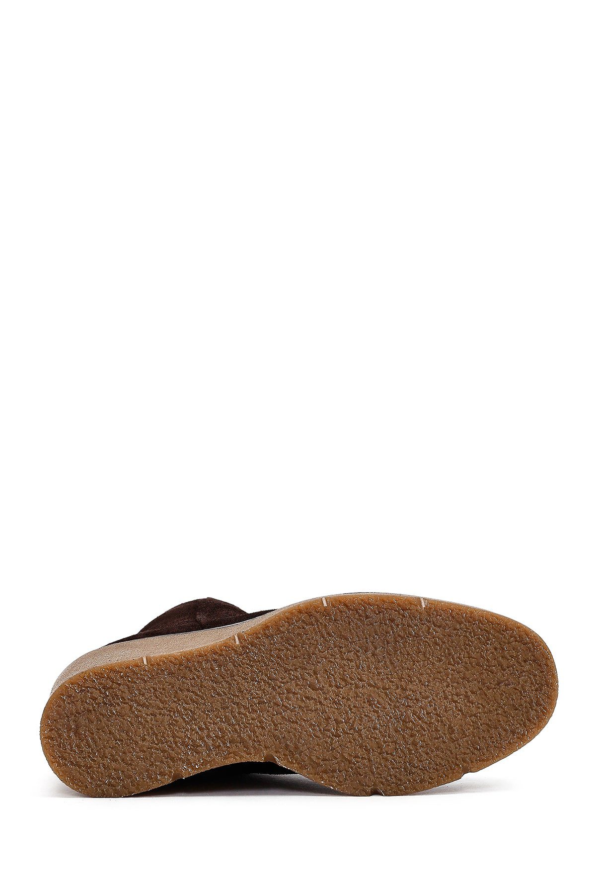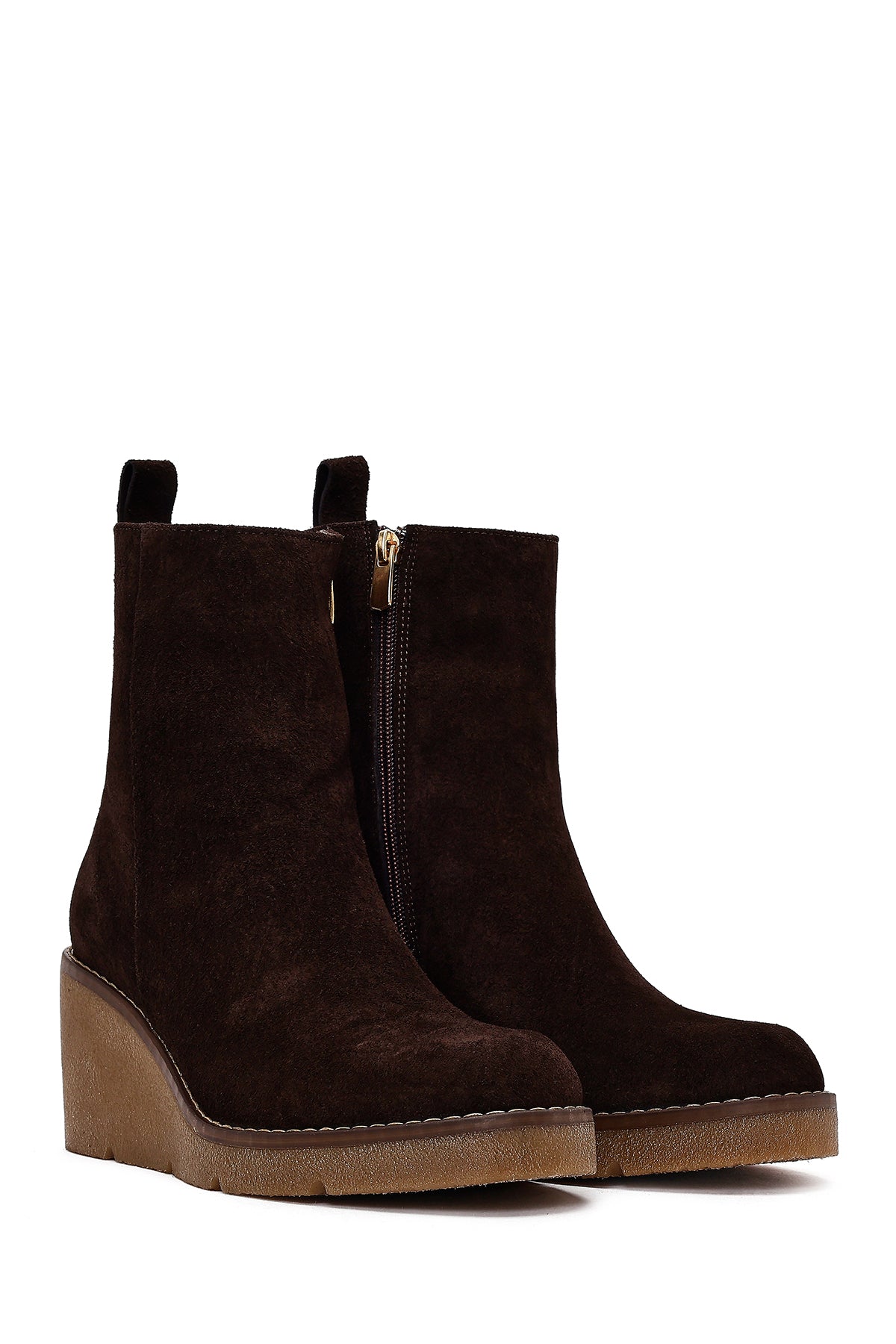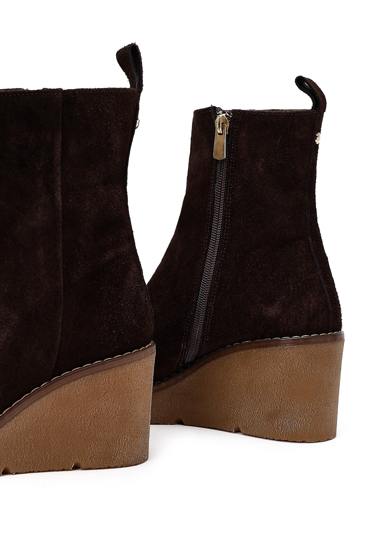 Kadın Kahverengi Fermuarlı Dolgu Topuklu Süet Deri Bot