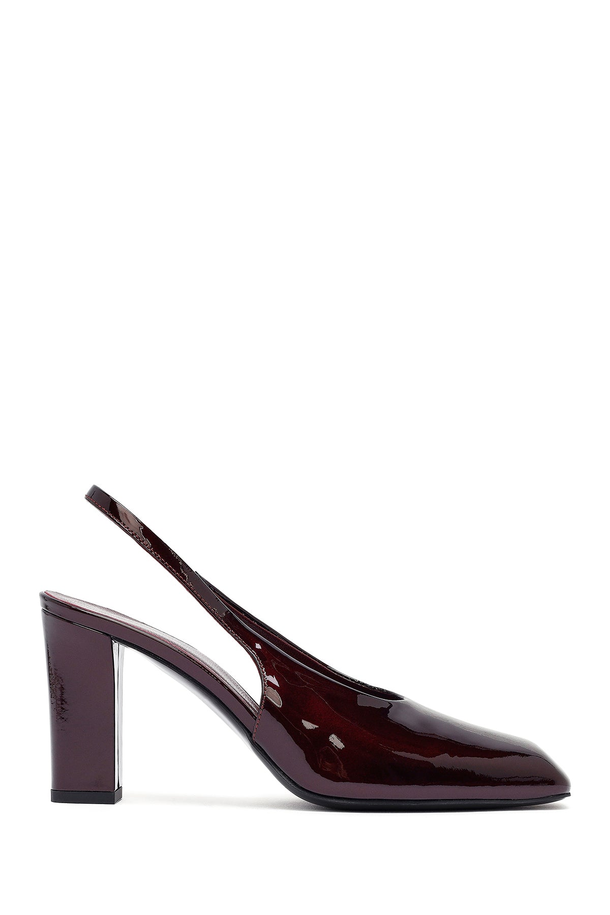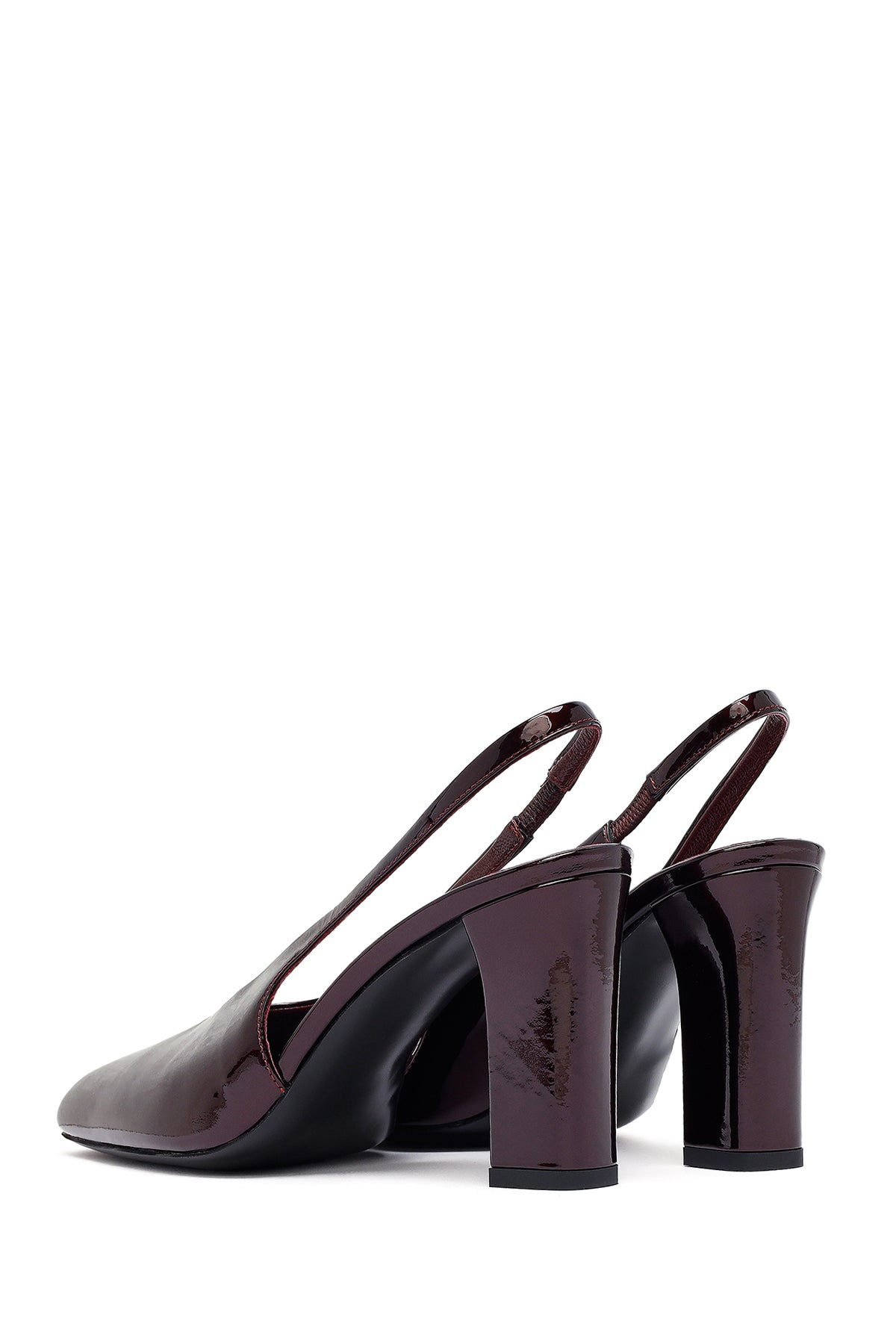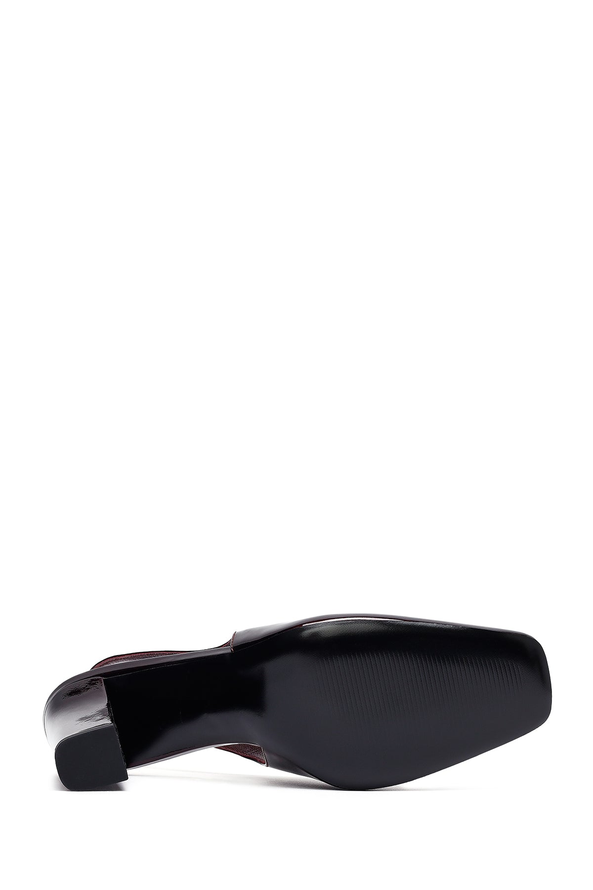 Kadın Bordo Arkası Açık Kalın Topuklu Rugan Deri Ayakkabı