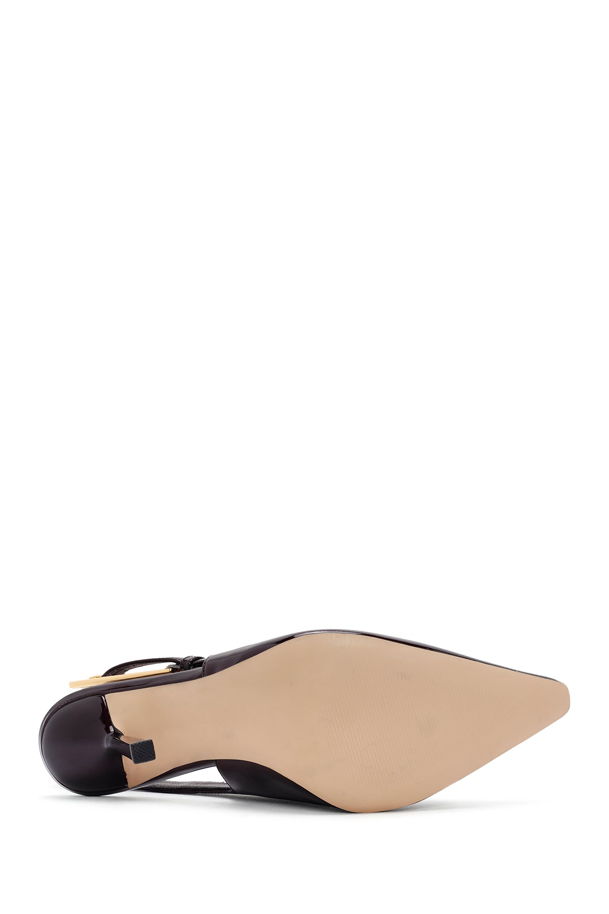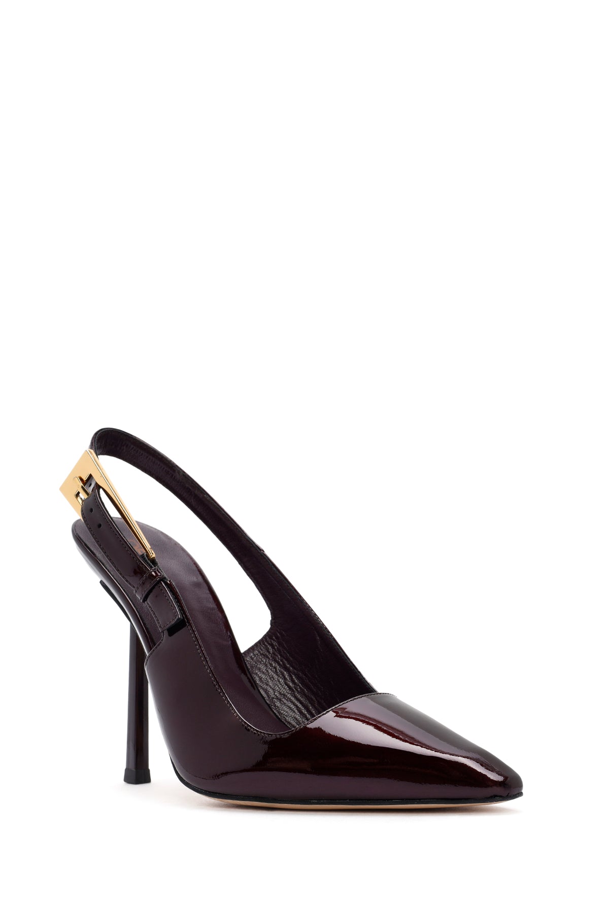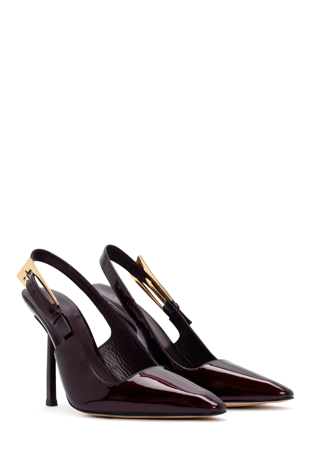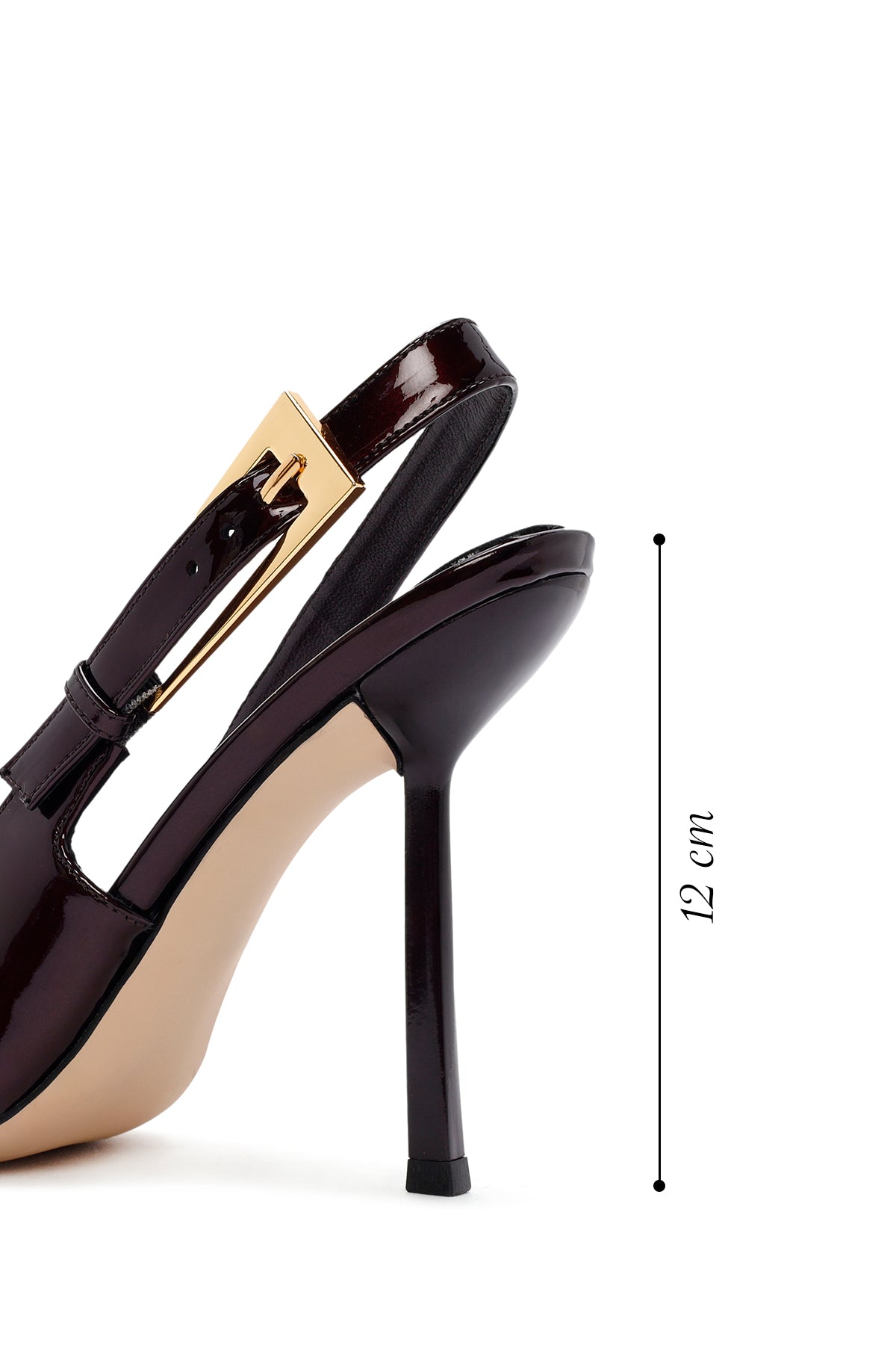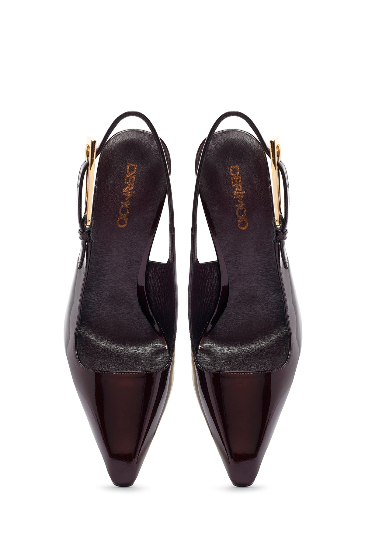 Kadın Bordo Arkası Açık Yüksek İnce Topuklu Rugan Deri Ayakkabı