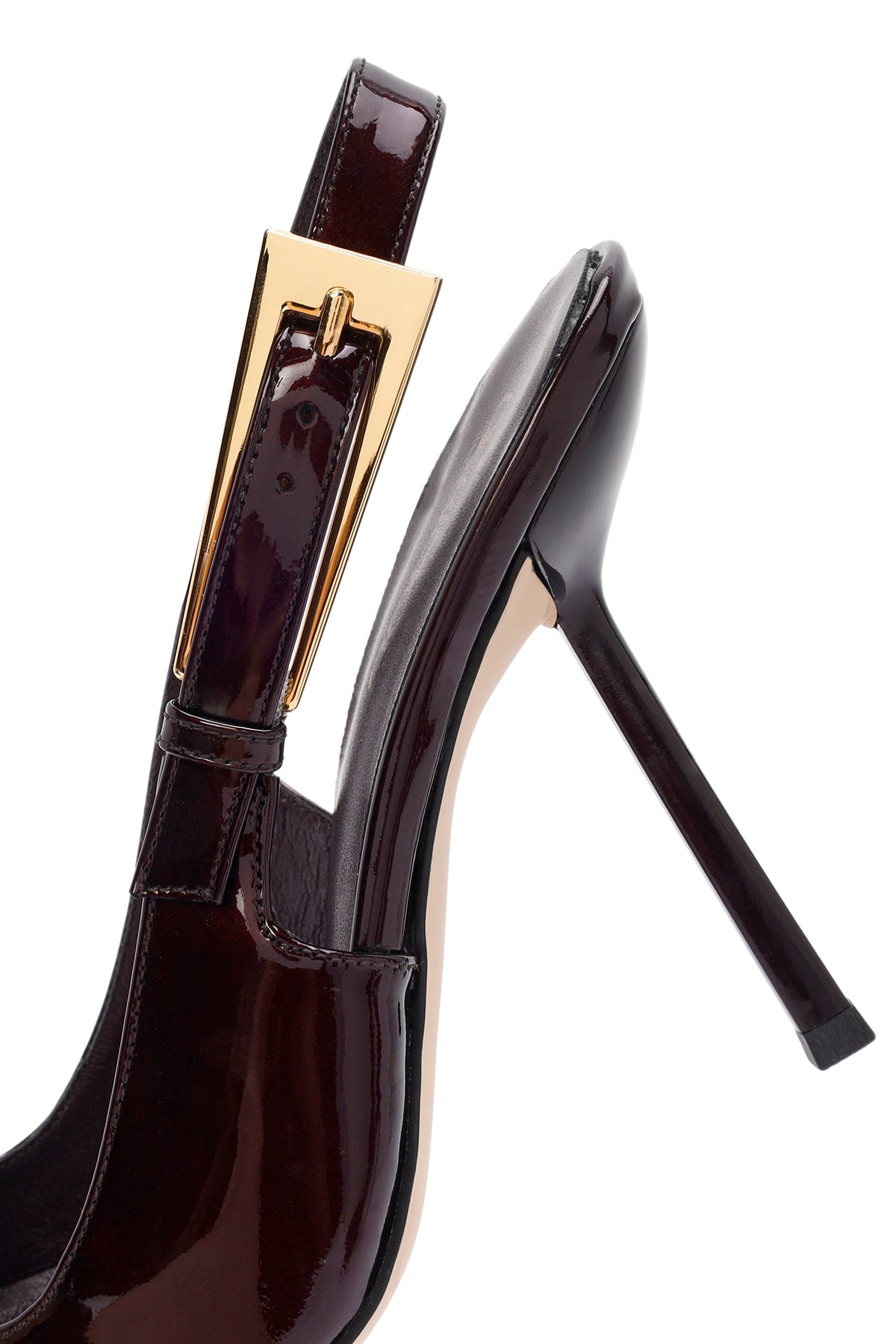 کفش زنانه ورنی زرشکی پشتباز پاشنهبلند نازک دری مد