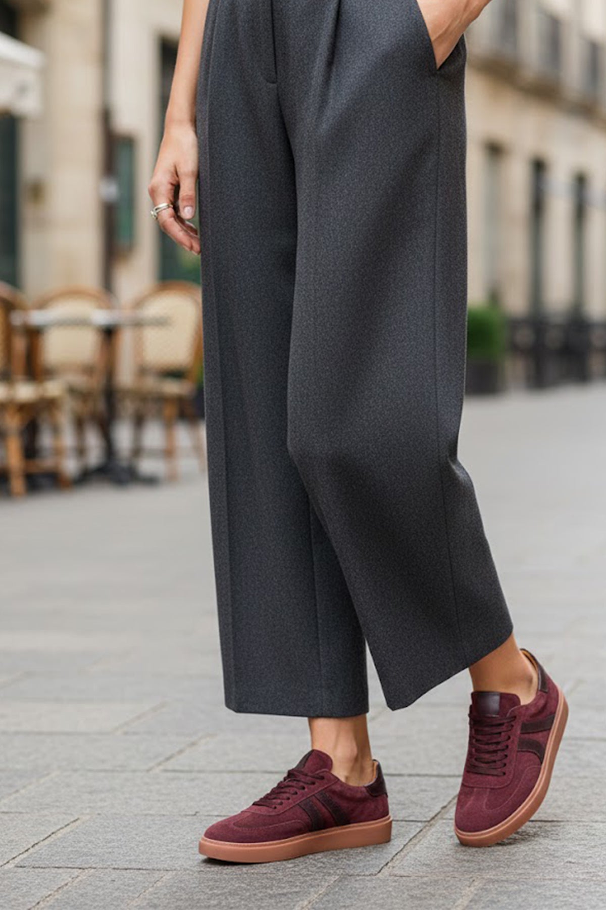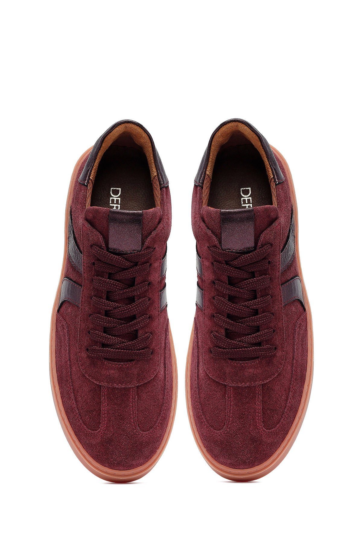 Kadın Bordo Bağcıklı Süet Deri Sneaker